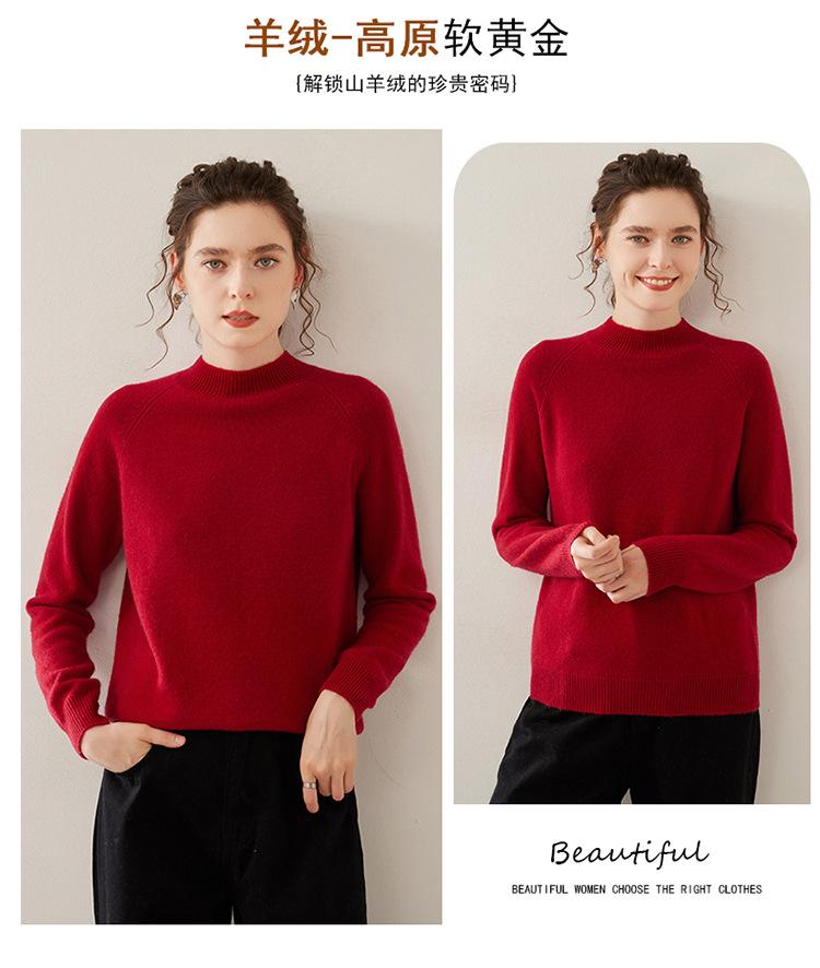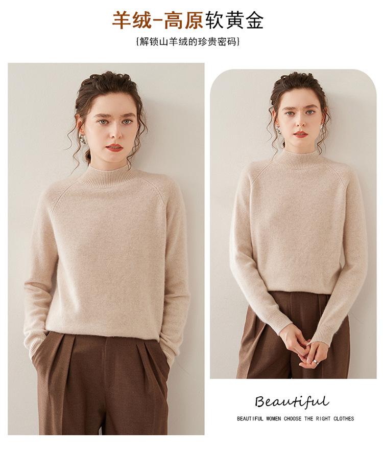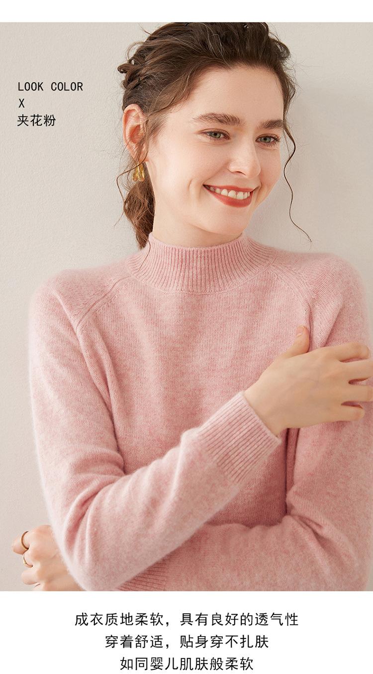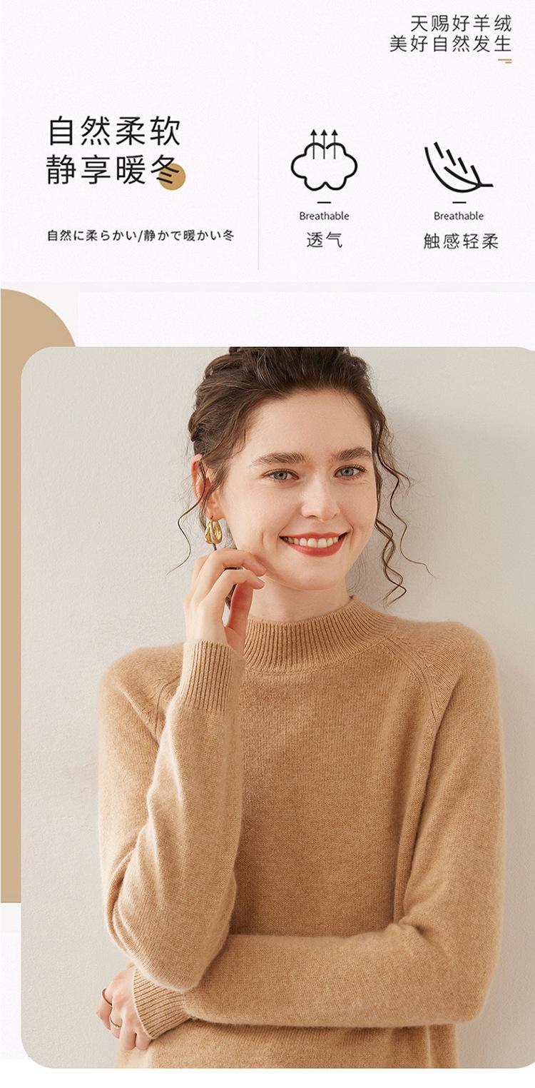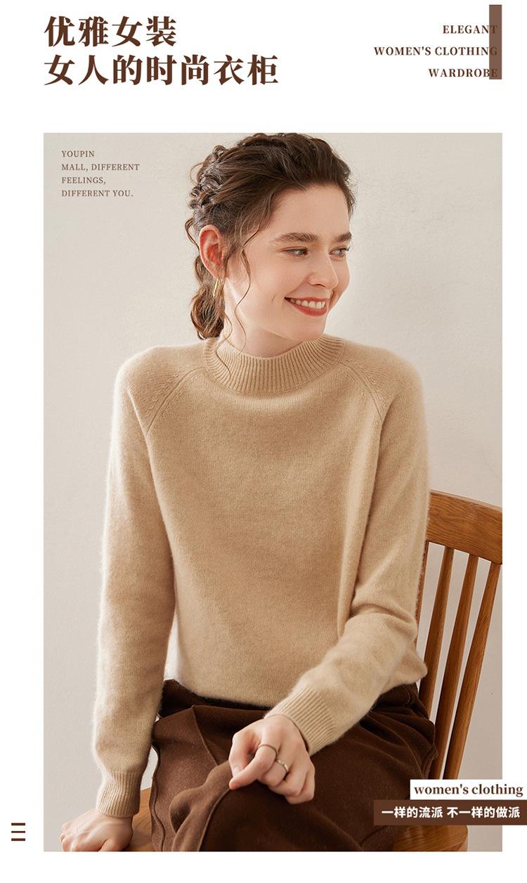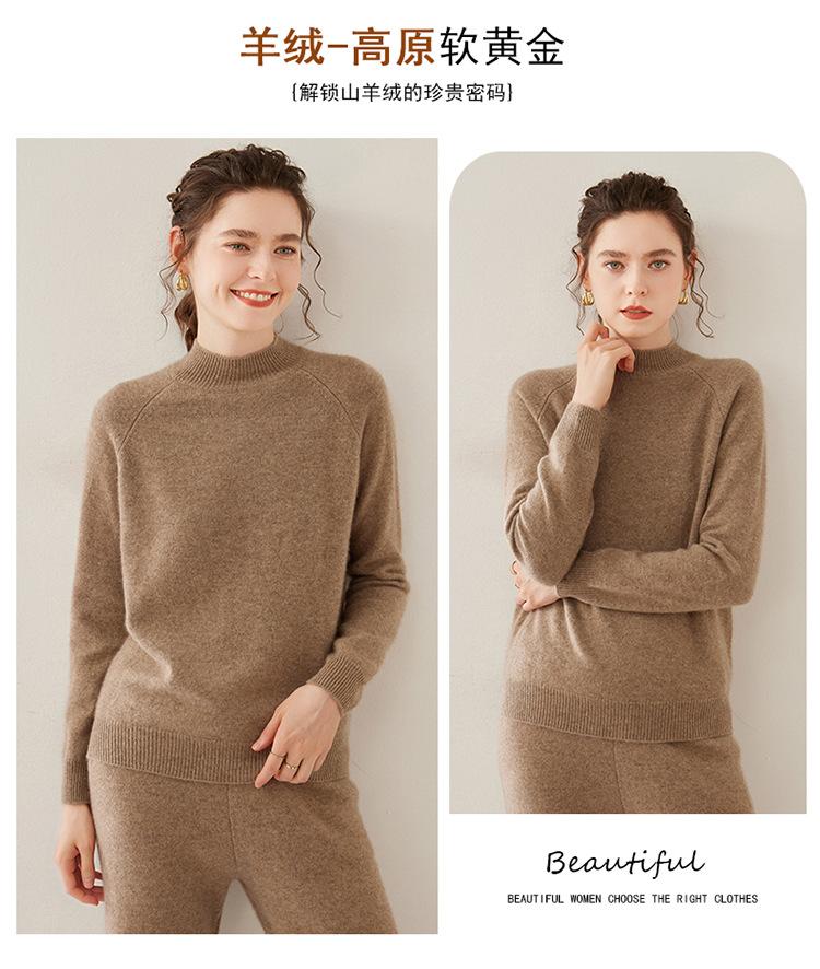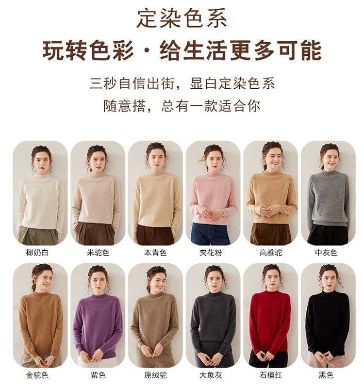 Suéter holgado de cachemira para mujer, sencillo y combinable, con cuello medio alto, manga larga y raglán liso en el interior.