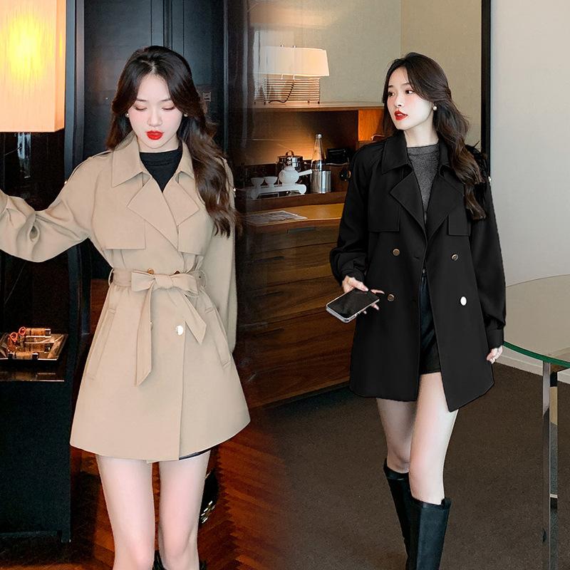 Abrigo informal cruzado de moda de estilo británico para otoño e invierno de 2024, nuevo abrigo elegante de longitud media para hombre pequeño.