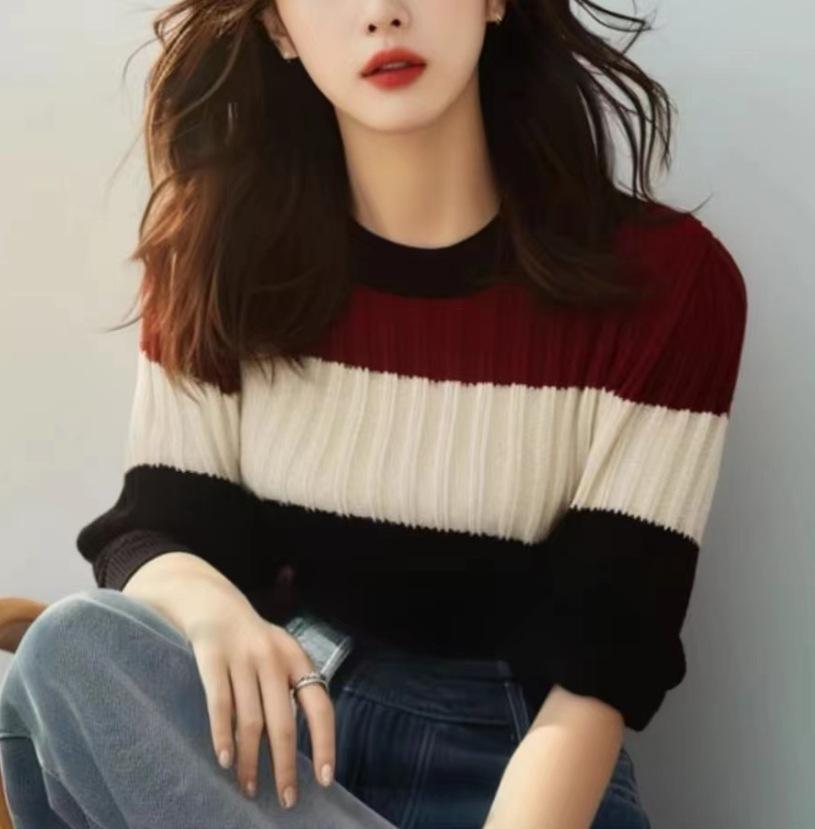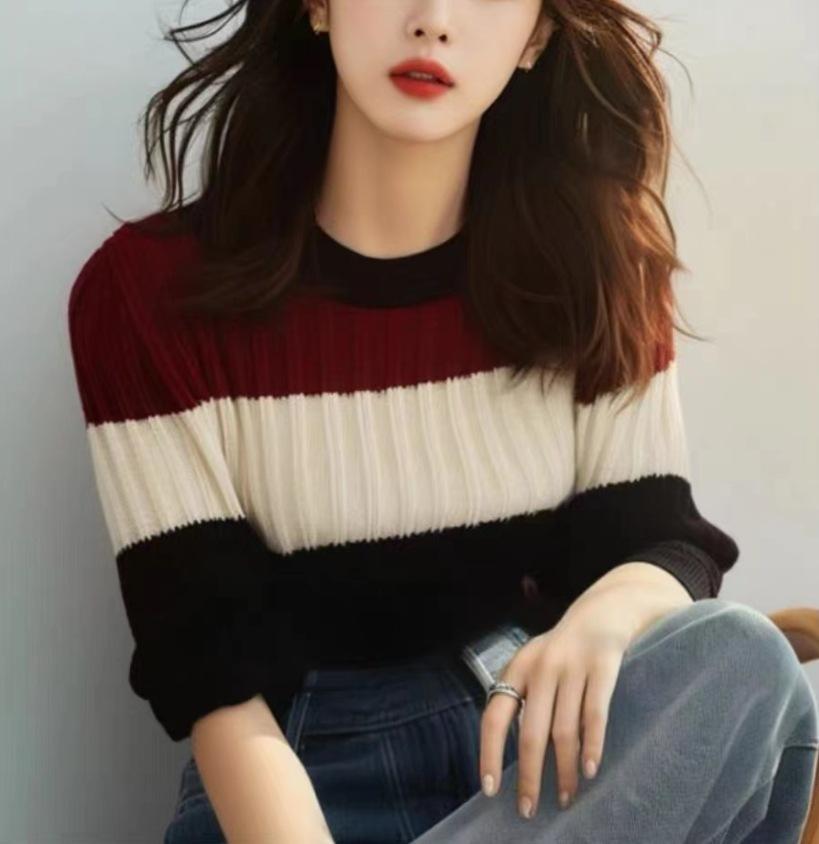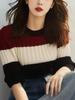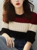 Suéter de Punto en Contraste Rojo y Negro para Mujer 2024 Nuevo Otoño Estilo Francés Estilo Chanel Suave Ceroso Industria Pesada Top