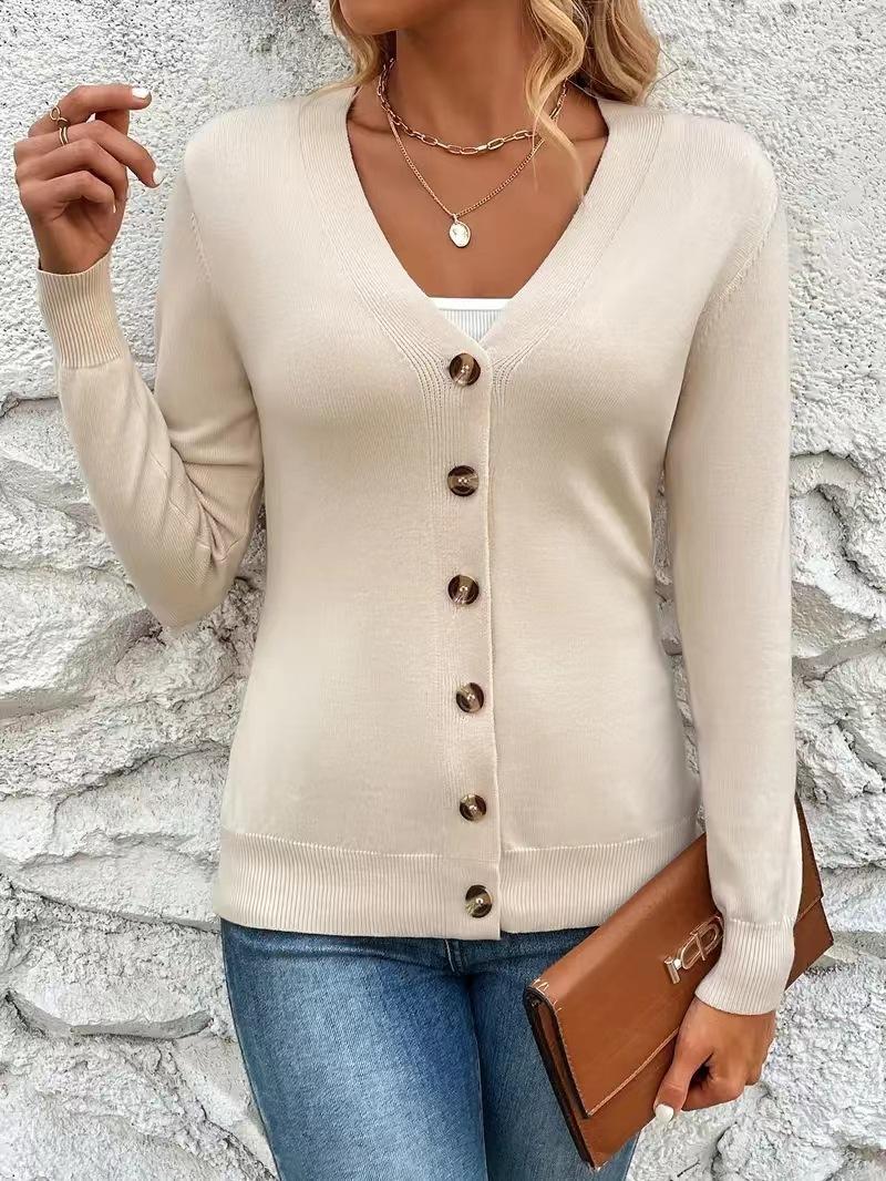 Suéter tipo cárdigan de manga larga de color liso, sencillo y ajustado, de talla grande, para mujer, de comercio exterior de Amazon AliExpress, Europa y América, 2024