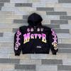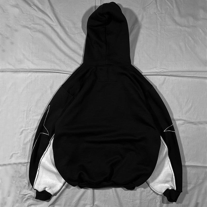 Suéter con capucha y estampado de mariposas estilo hip-hop callejero con costuras de colores contrastantes de otoño e invierno de estilo europeo y americano de moda transfronteriza