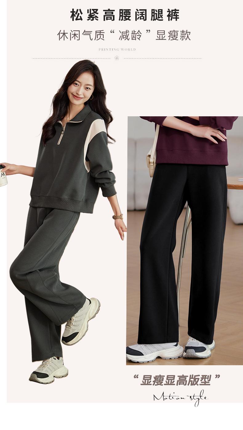 Pantalones de pierna ancha de cintura alta sueltos casuales de estilo holgado para mujer Primavera y Otoño 2024