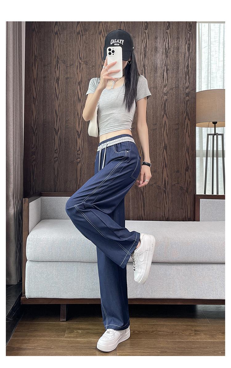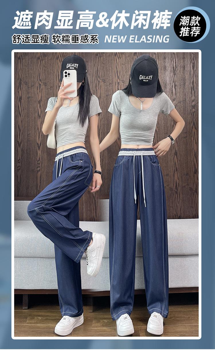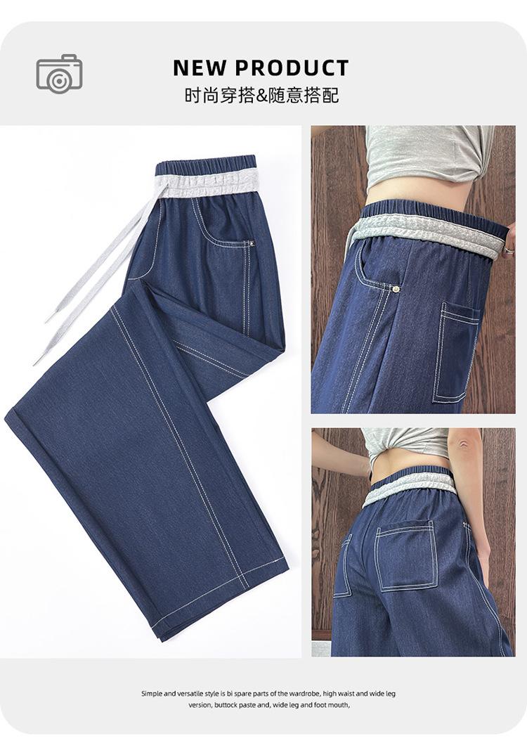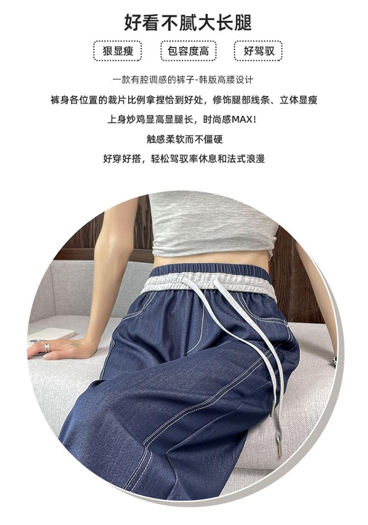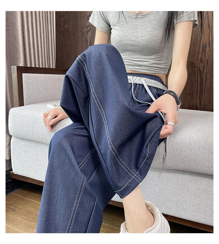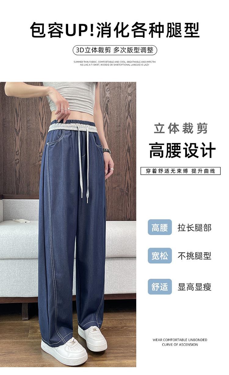 Jeans Ligeramente Femeninos Pequeños Otoño 2024 Cintura Alta Adelgazantes Sueltos Casuales Rectos Denim Pierna Ancha A1718