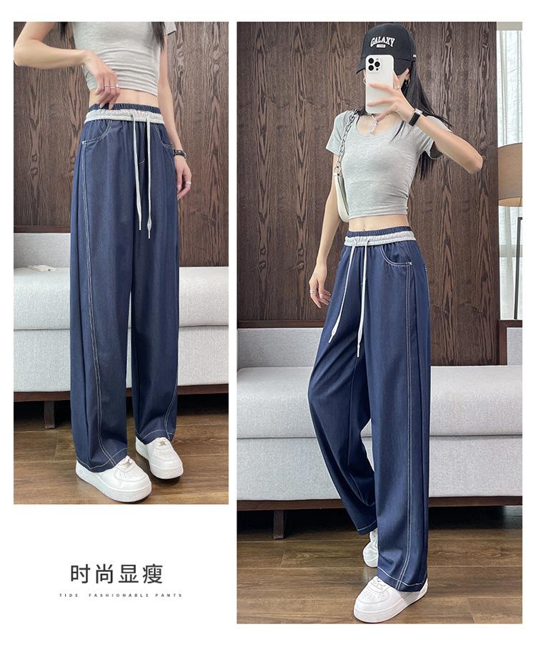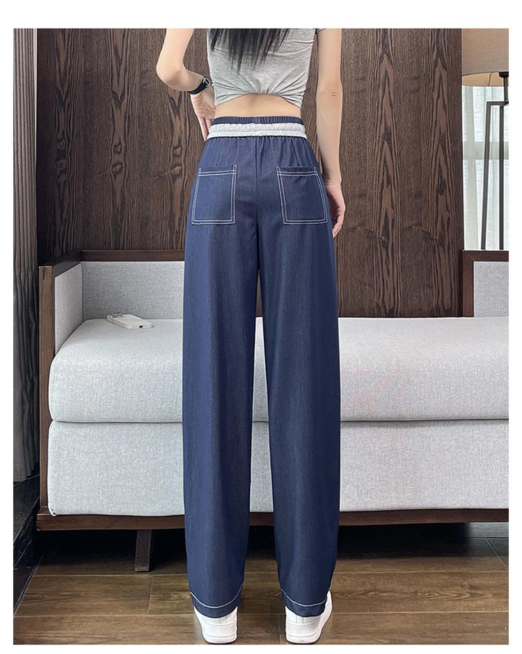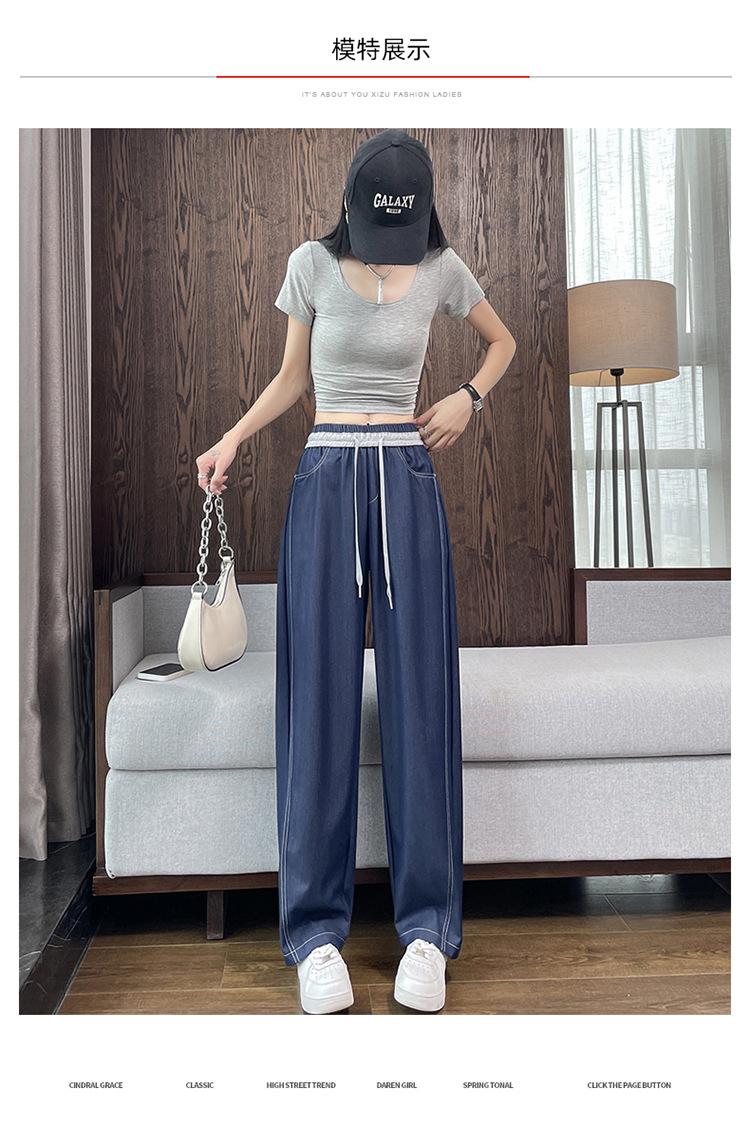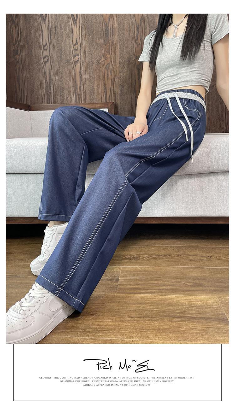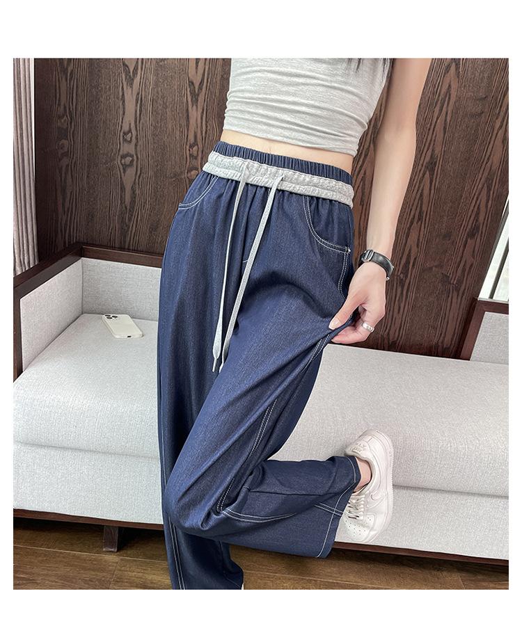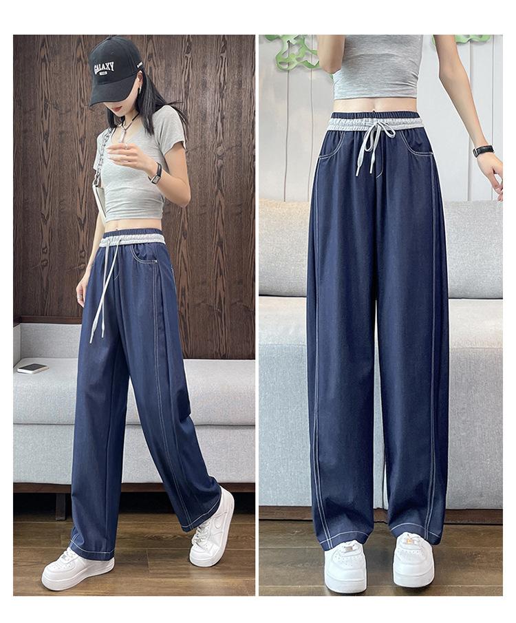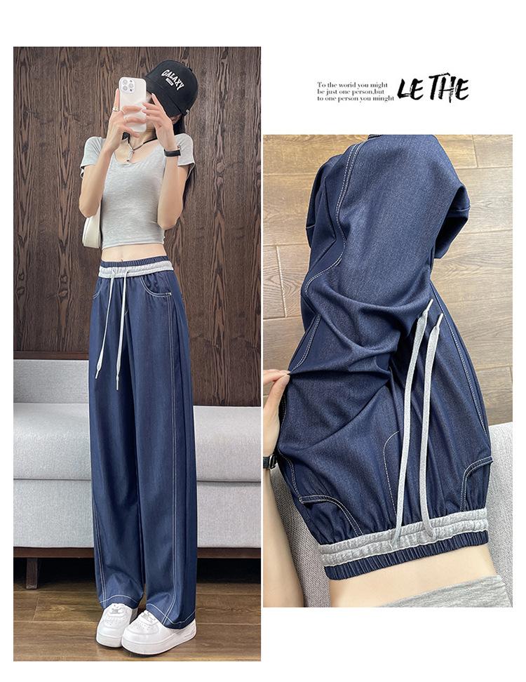 Jeans Ligeramente Femeninos Pequeños Otoño 2024 Cintura Alta Adelgazantes Sueltos Casuales Rectos Denim Pierna Ancha A1718
