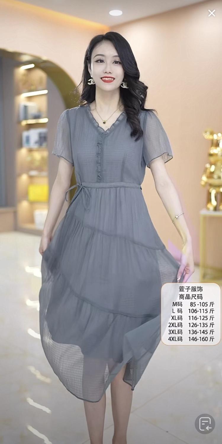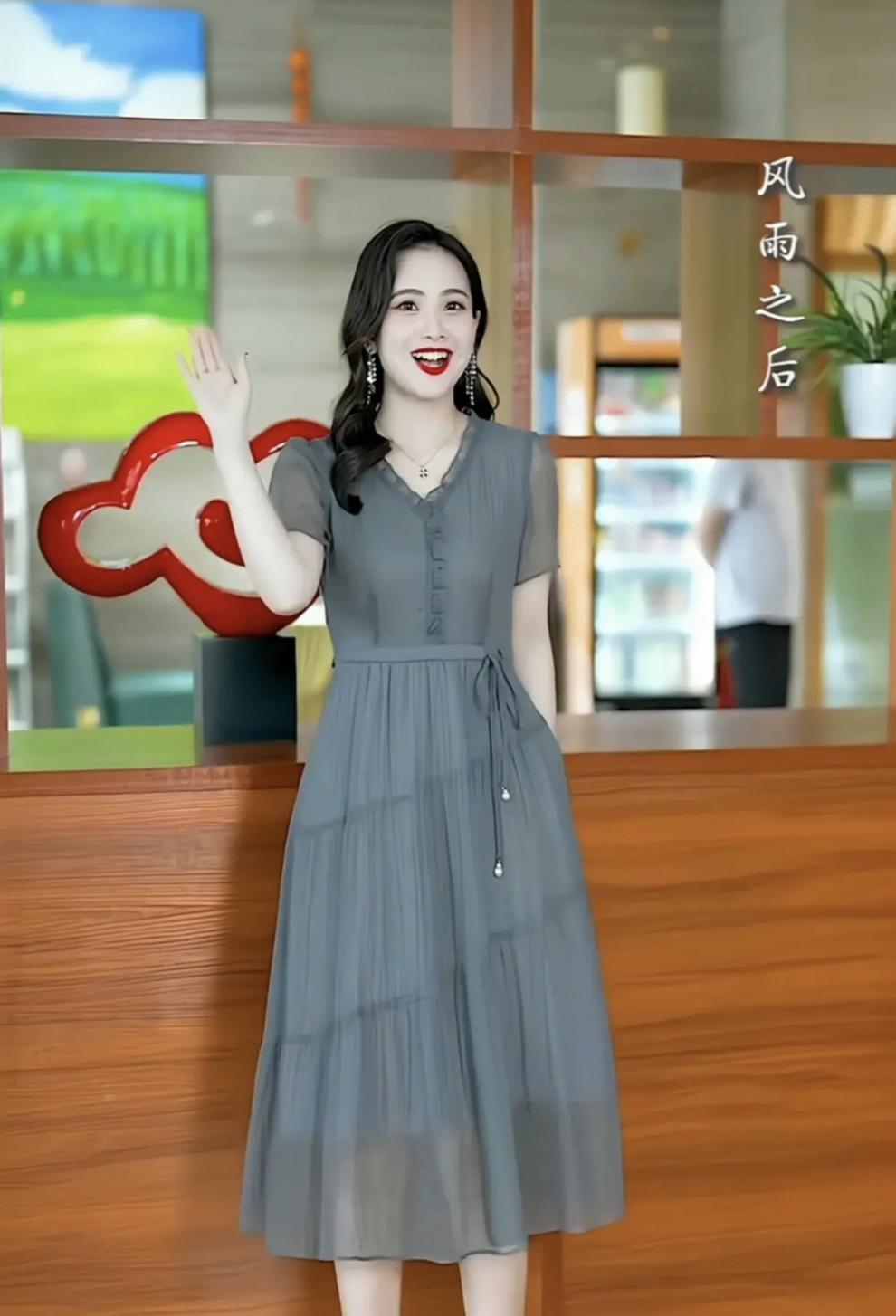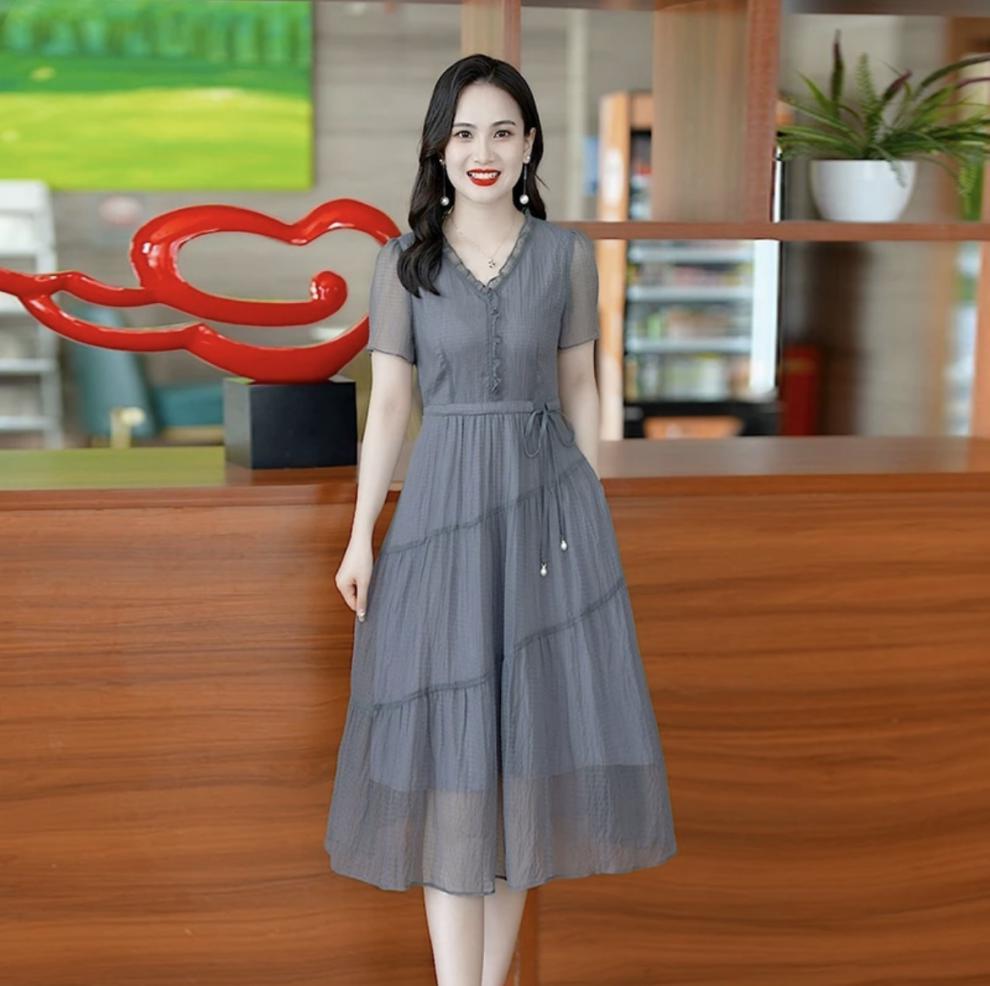 Vestido de Clase Jinbukang de Manga Corta para Mujer Verano Nuevo Moderno y Elegante Cubre Carne Falda Midi