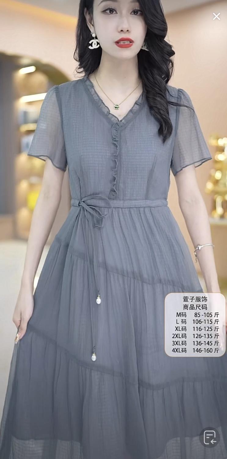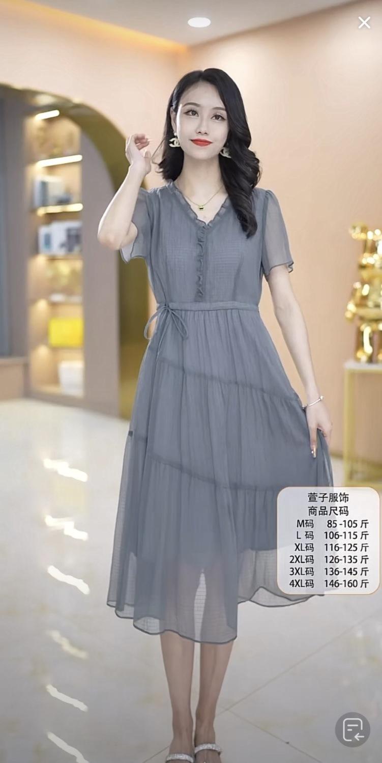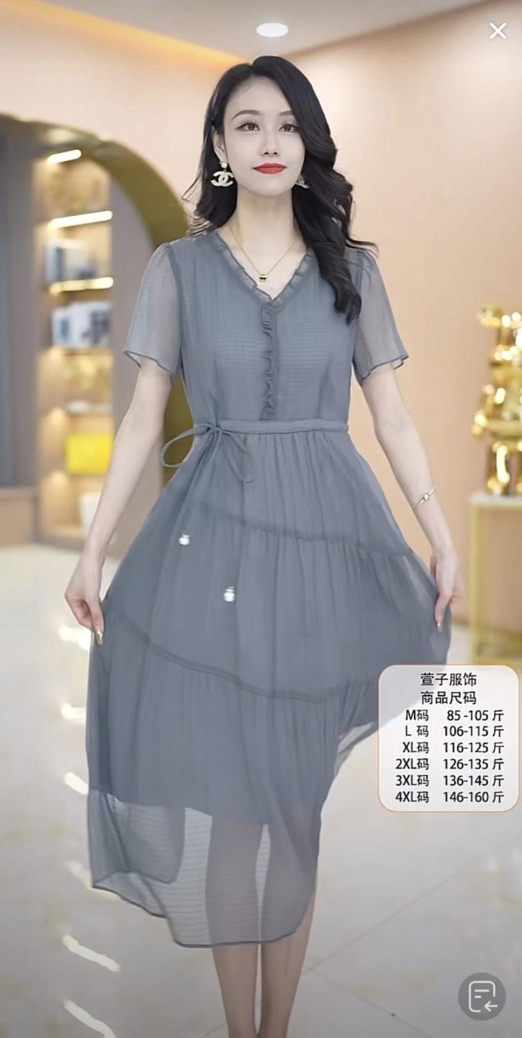 Vestido de Clase Jinbukang de Manga Corta para Mujer Verano Nuevo Moderno y Elegante Cubre Carne Falda Midi