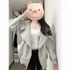Chamarra con Capucha Deportiva Casual Versátil Holgada de Peso Pesado Gris con Cremallera Cuello Redondo Sudadera para Mujer Estilo Lazy Principios de Otoño