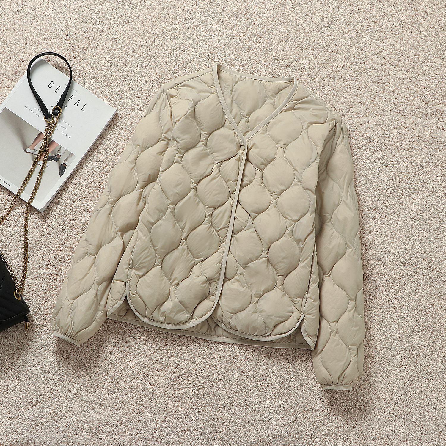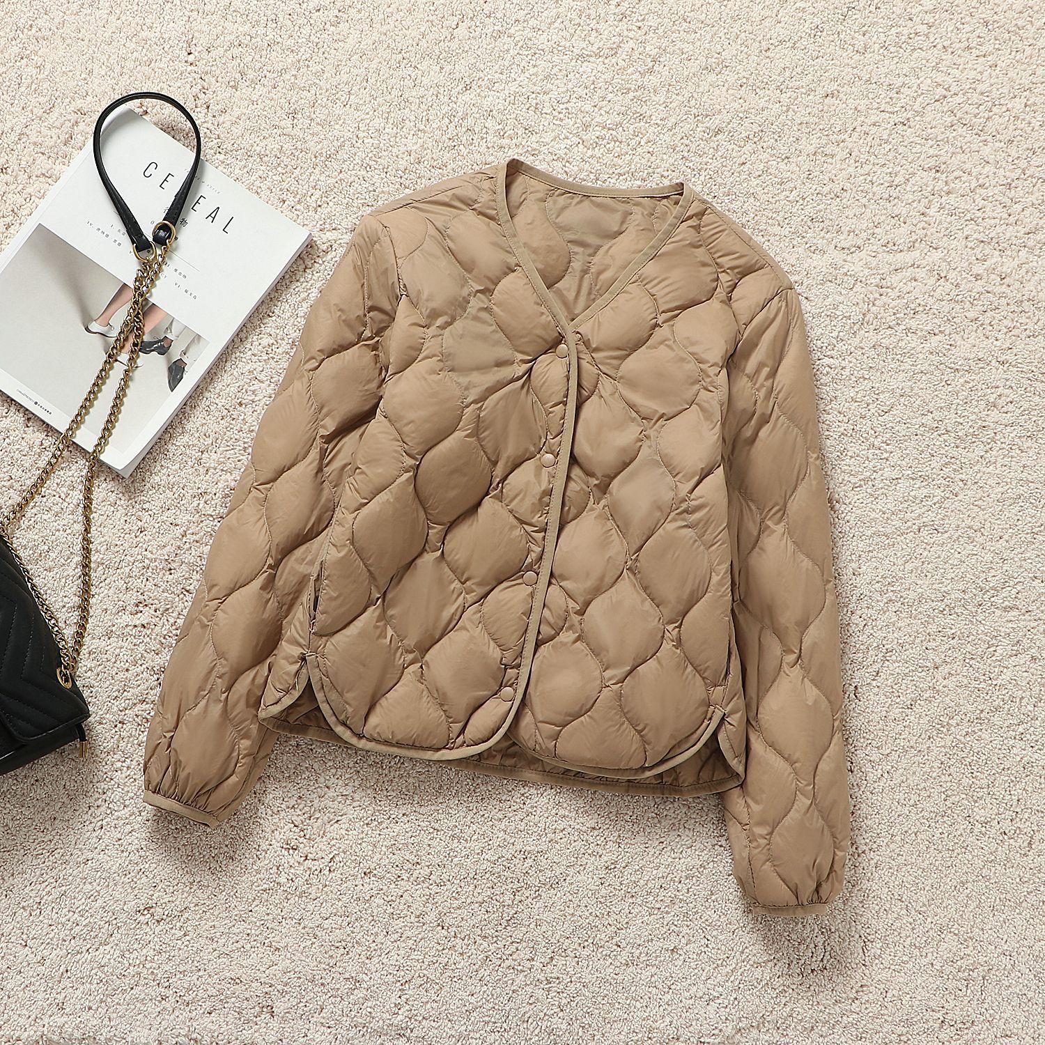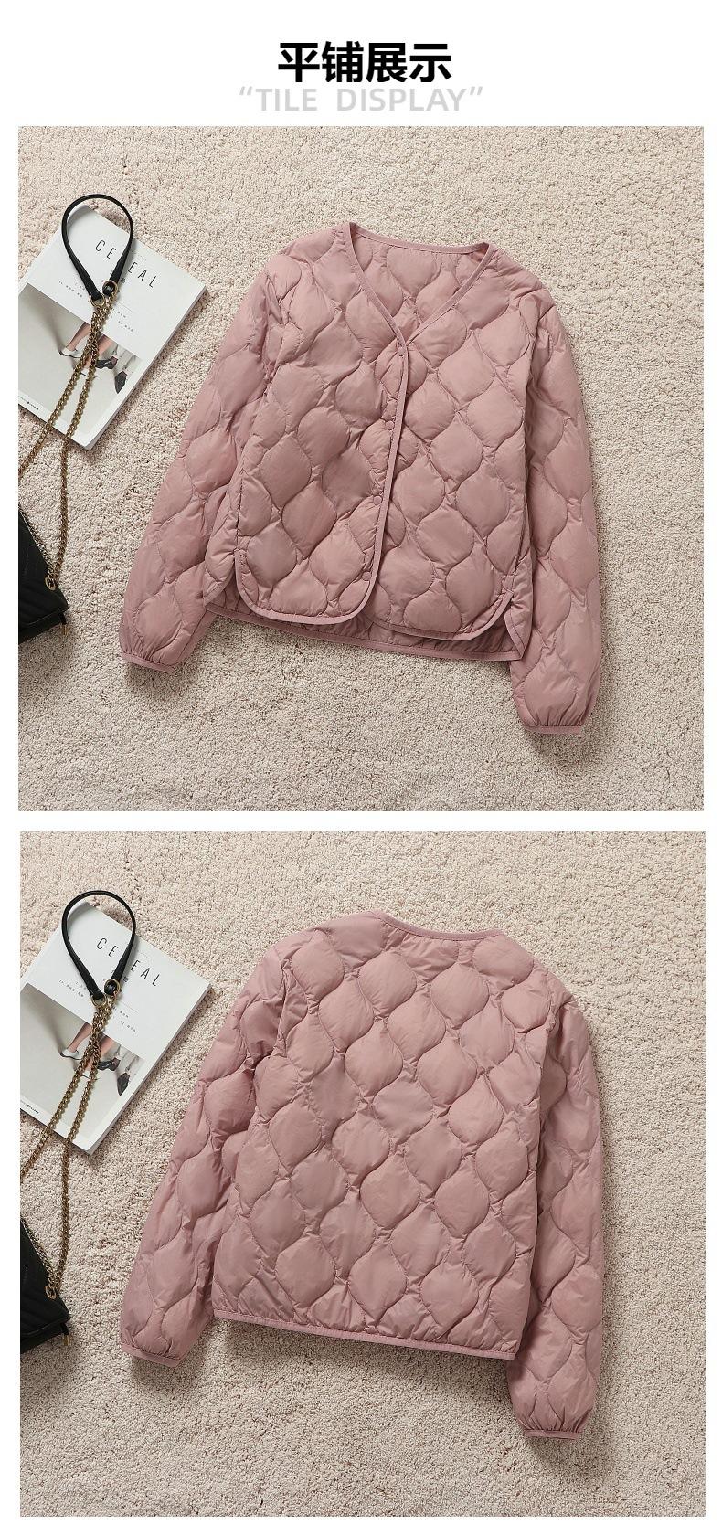 Chamarra de Plumas Nueva Otoño e Invierno 2025 para Mujer, Cuello en V Simple, Ligera, Corta, Versátil, Casual, Ajustada y Cálida Chamarra Interior