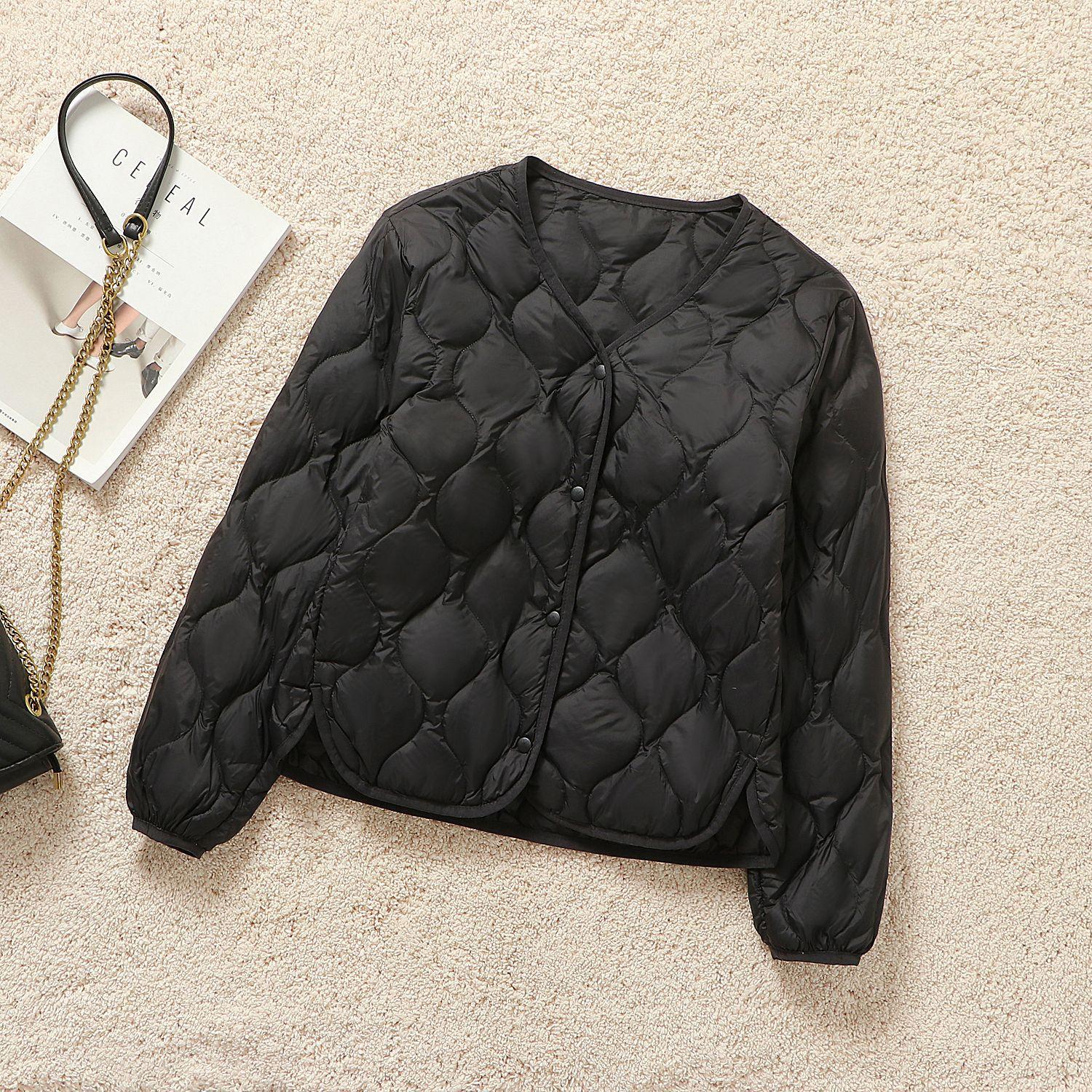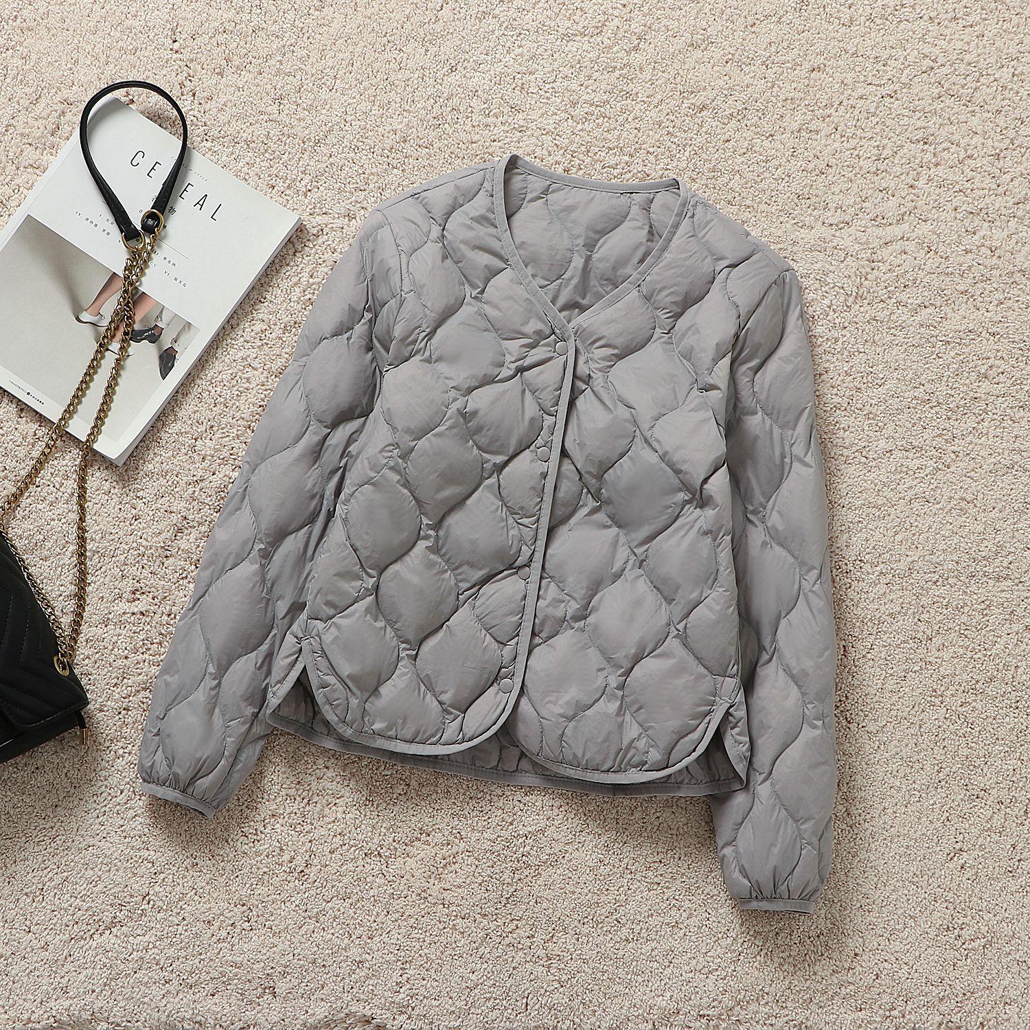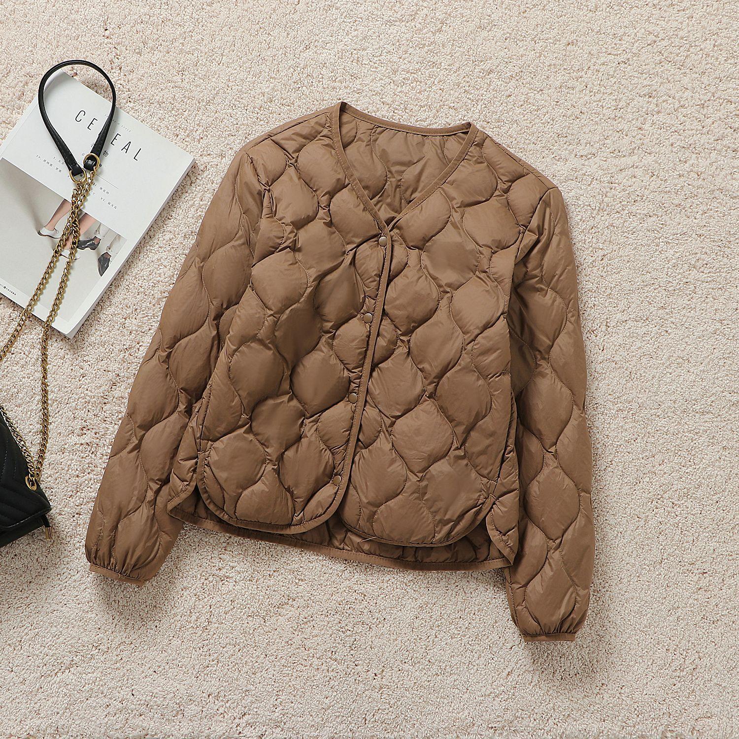 Chamarra de Plumas Nueva Otoño e Invierno 2025 para Mujer, Cuello en V Simple, Ligera, Corta, Versátil, Casual, Ajustada y Cálida Chamarra Interior