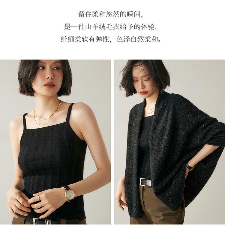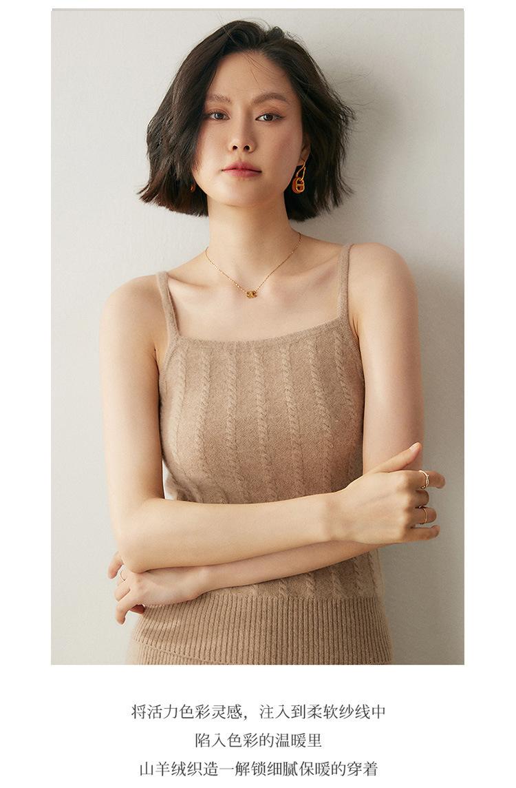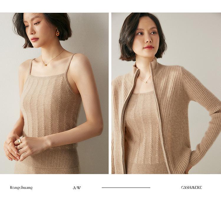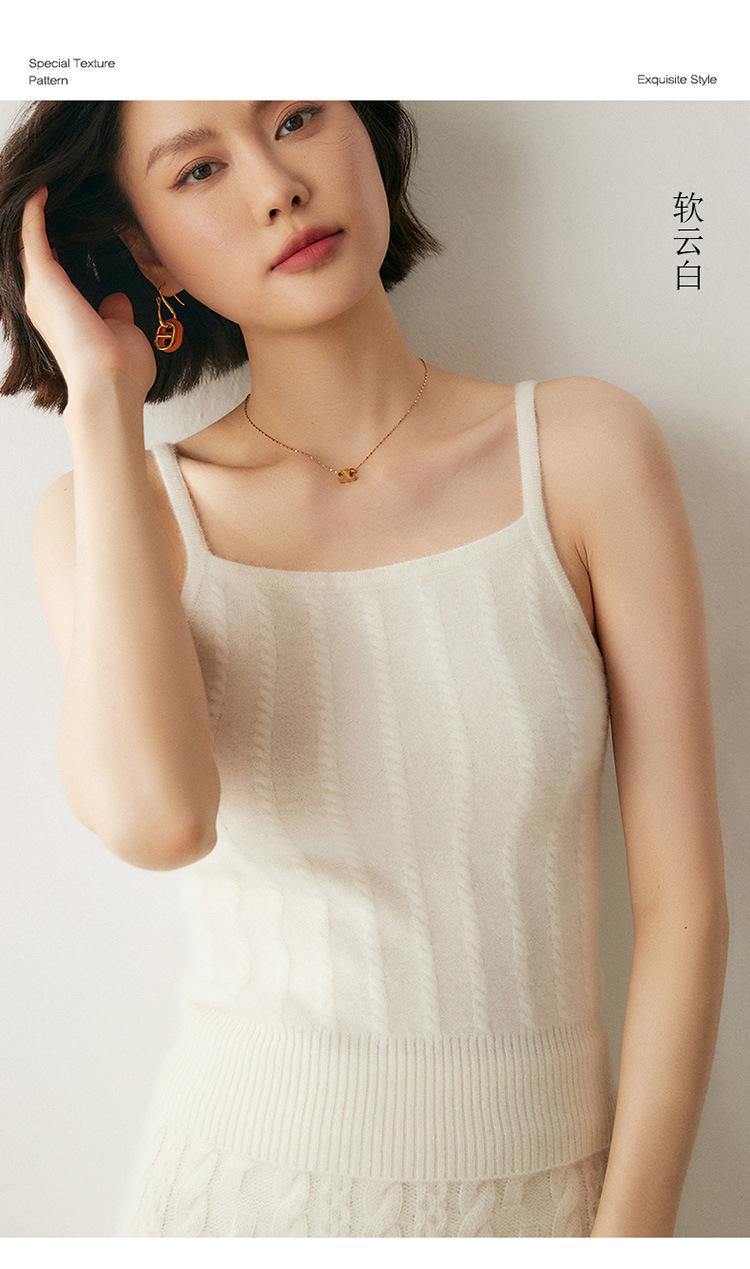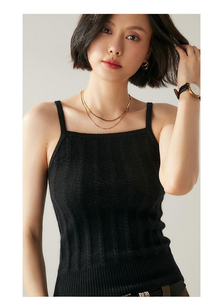 Camisola de cachemir con cuello corto para mujer, otoño e invierno, nueva, ajustada, adelgazante, sin mangas, elegante, de punto interior.