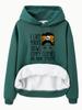 Sudadera con capucha, manga larga, forrada de vellón, con bolsillo tipo canguro y cordón ajustable para mujer europea y americana, talla europea transfronteriza, otoño e invierno
