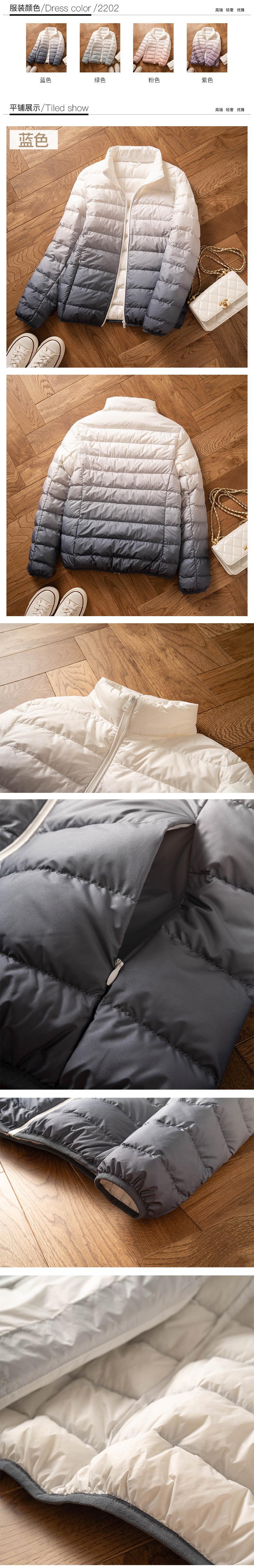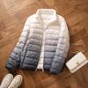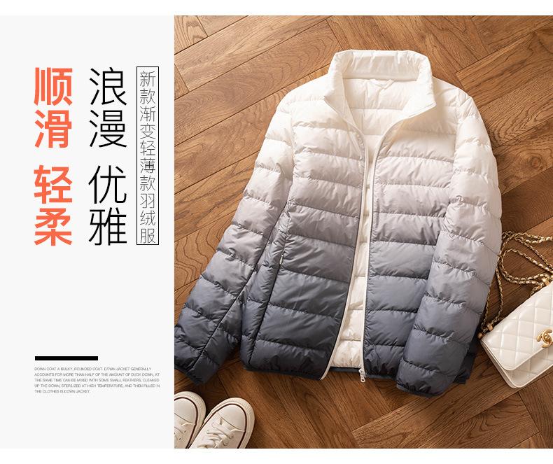 Chaqueta de plumón cruzada para mujer, otoño e invierno de 2022, nueva chaqueta de plumón de pato blanco 90 para mujer, con cuello vertical degradado, ligera, para mujer