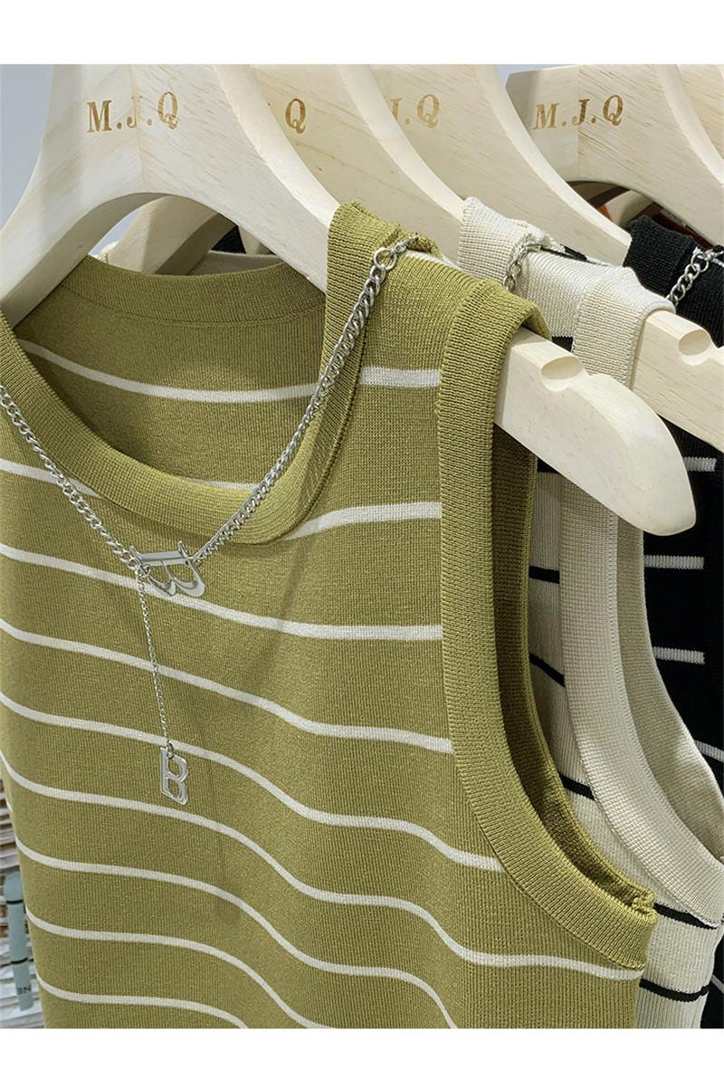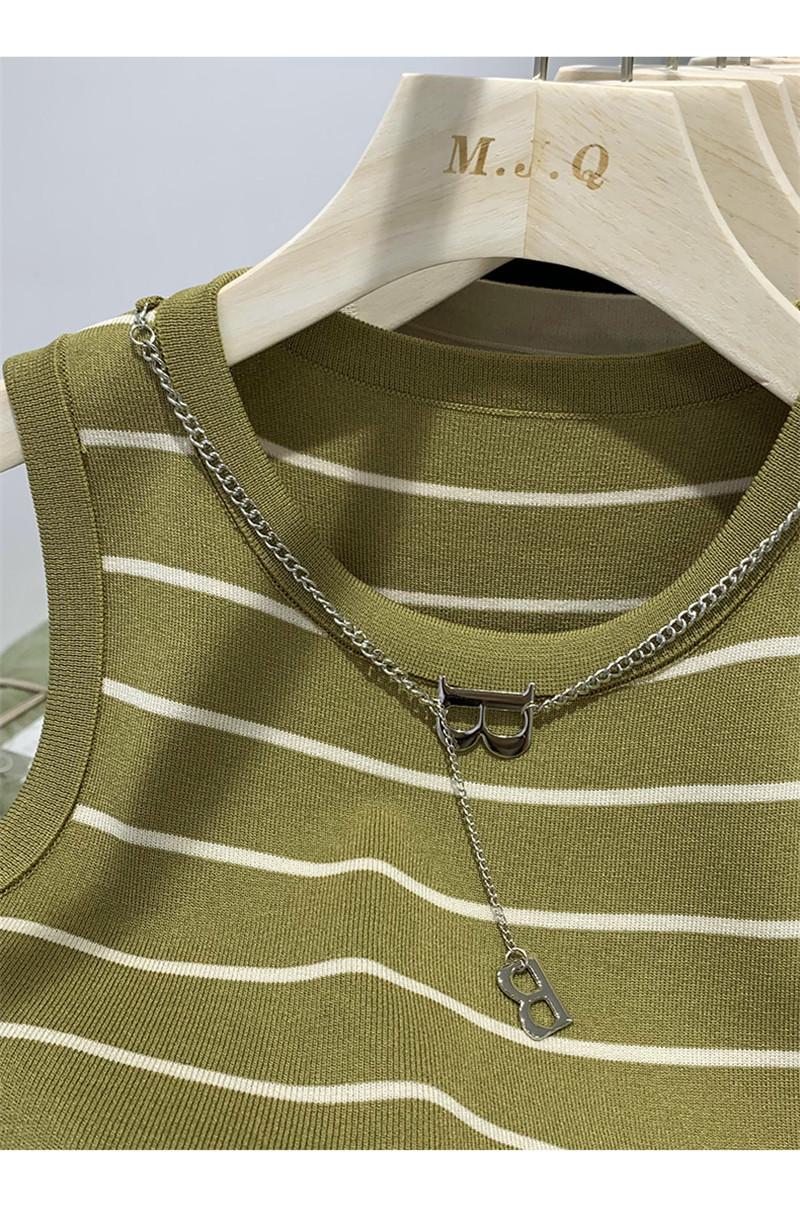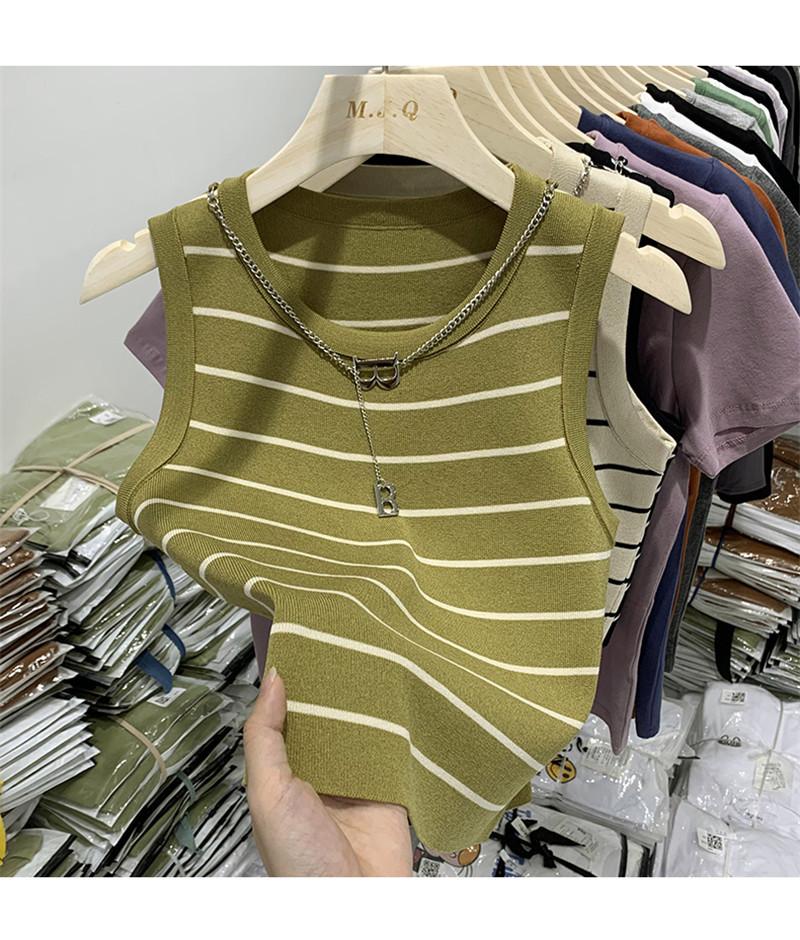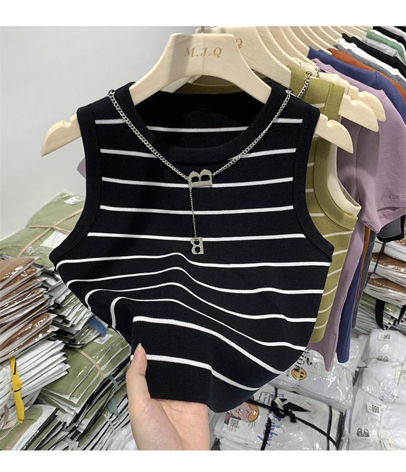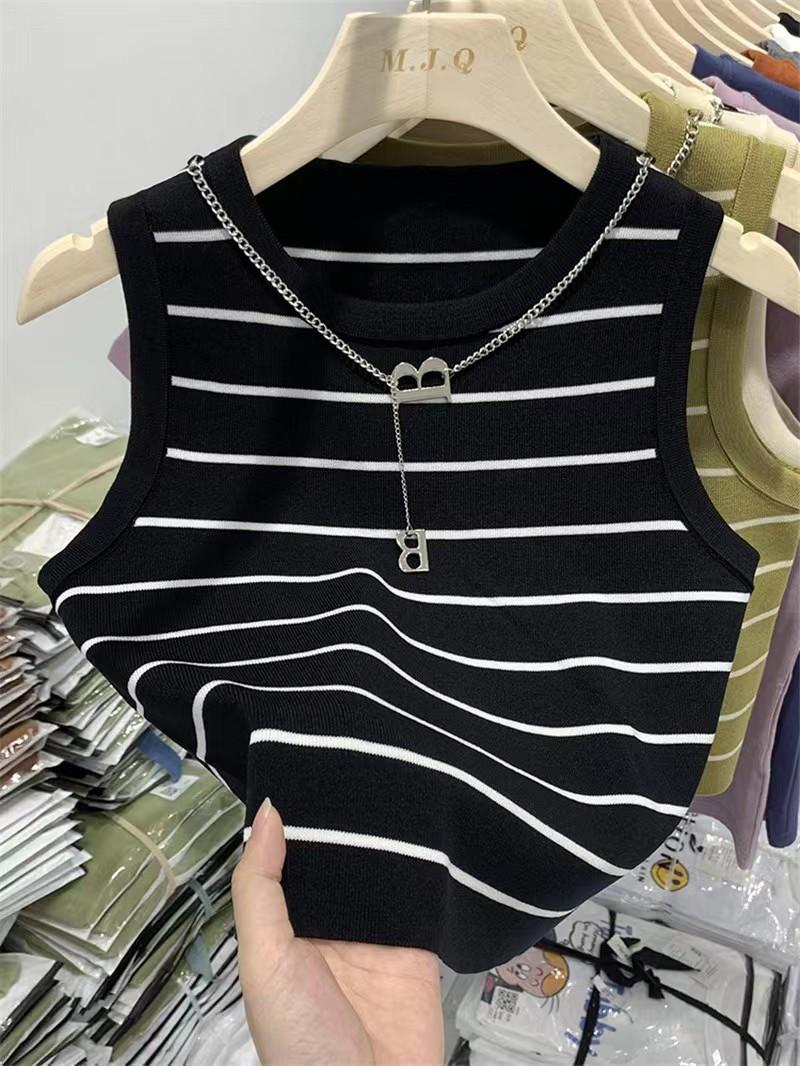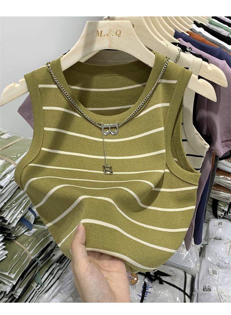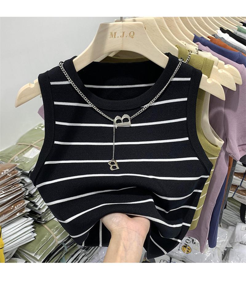 Suéter de cadena de cuello redondo corto de verano 2023, camiseta sin mangas con base interior de color sólido y corte entallado