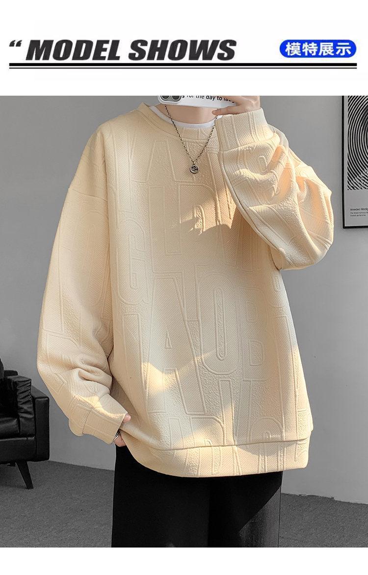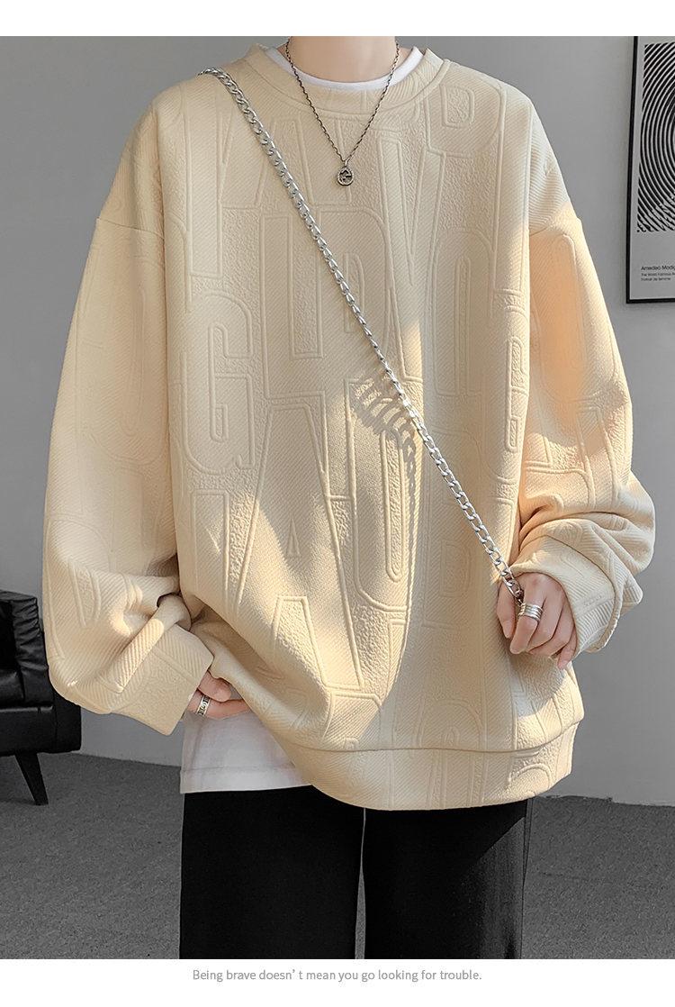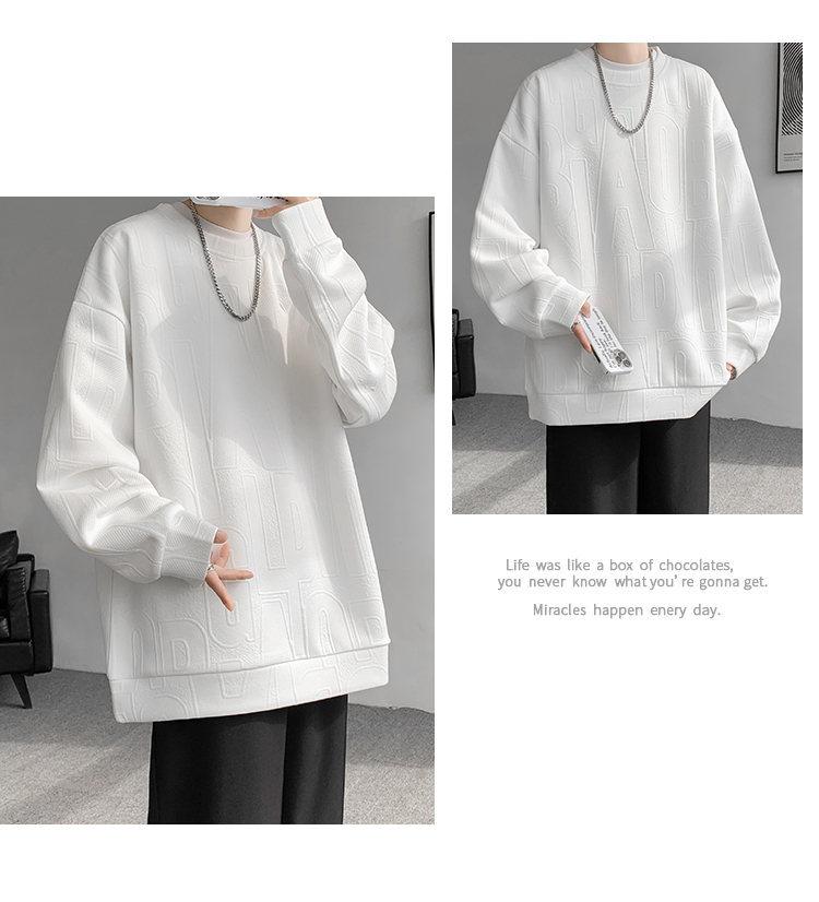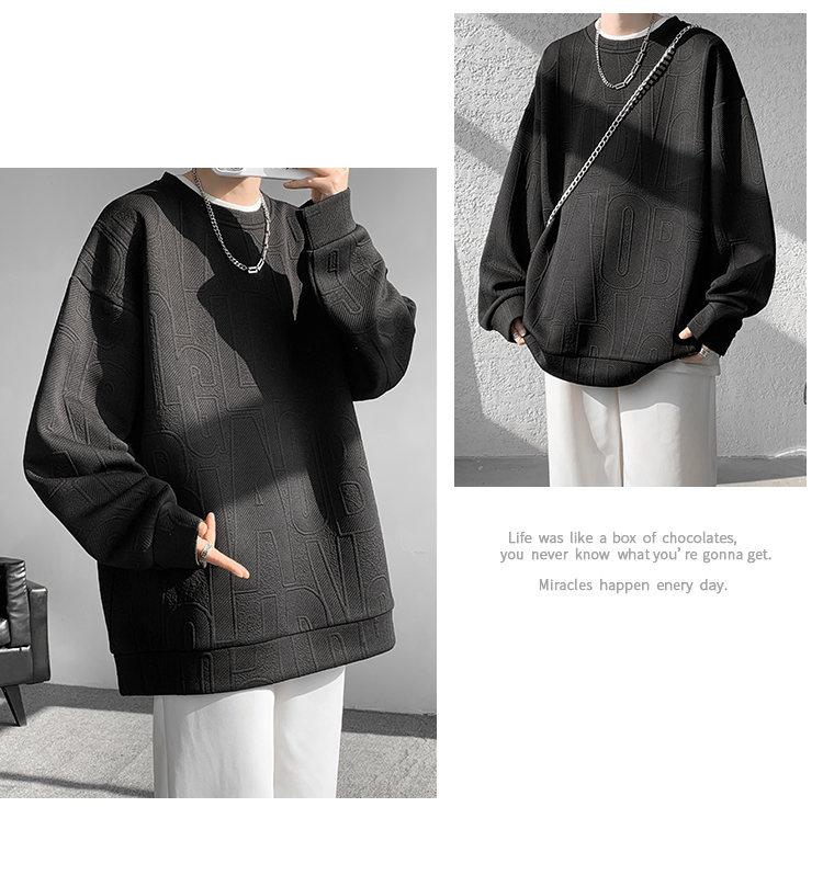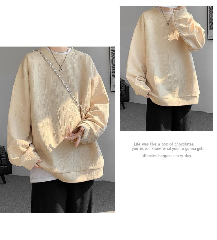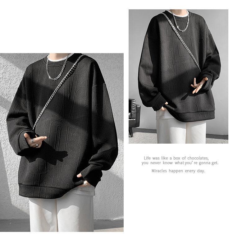 Suéter de cuello redondo jacquard con letras para hombre, novedad de otoño de 2024, abrigo de talla grande para estudiantes, venta al por mayor, manga larga fina
