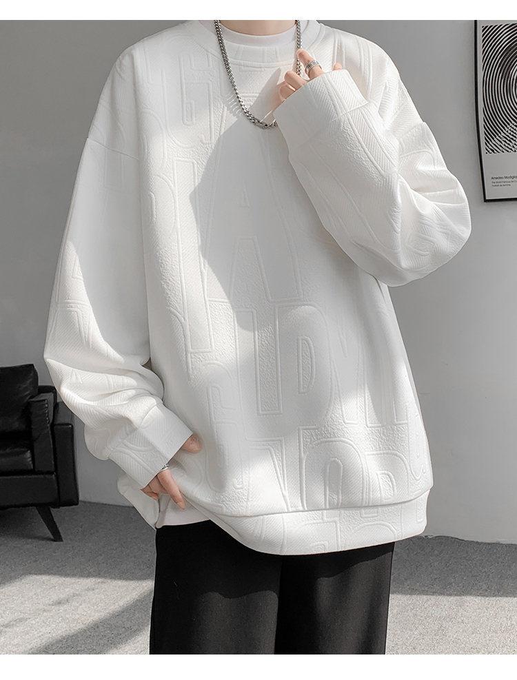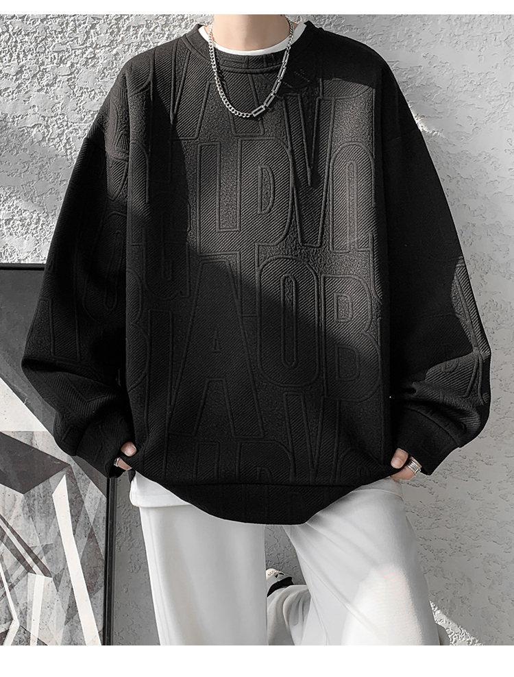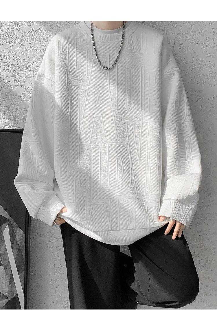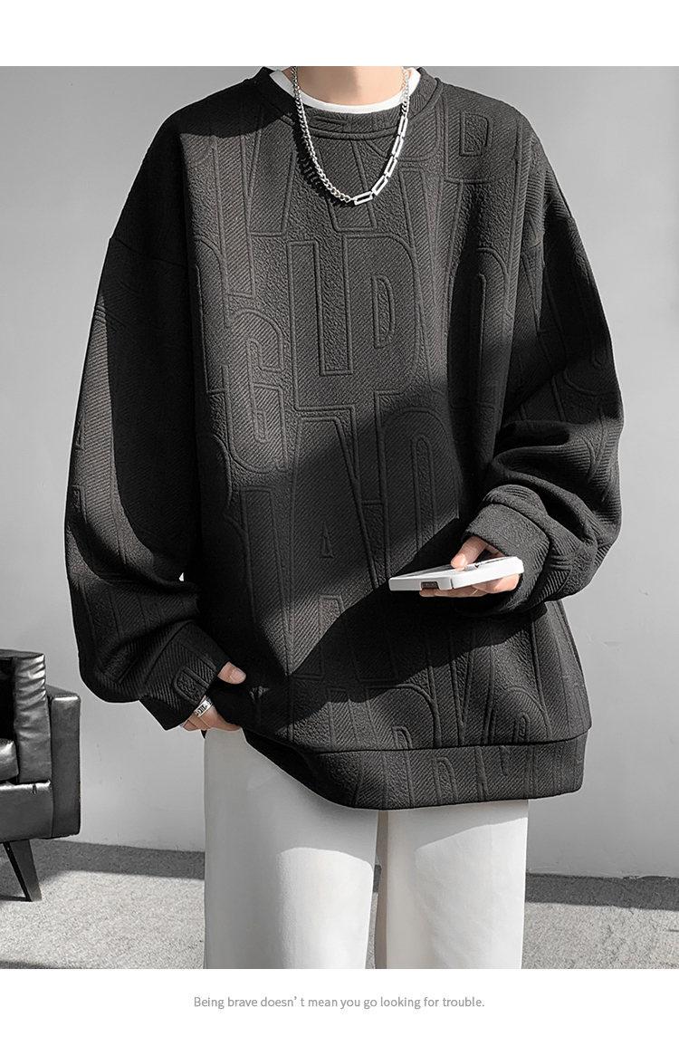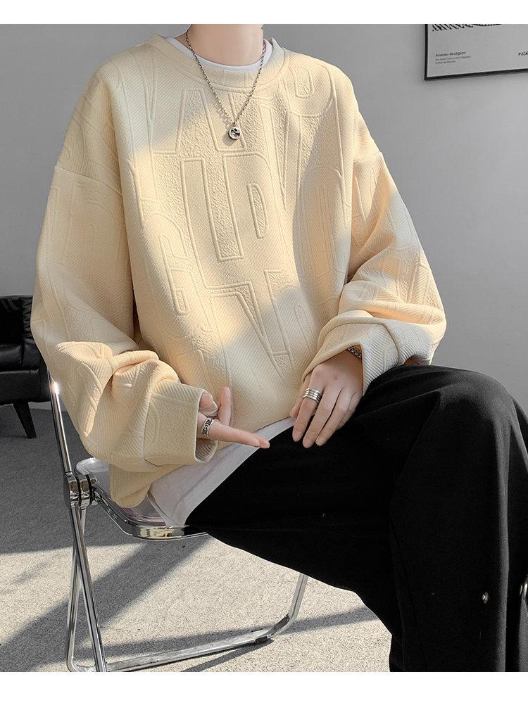 Suéter de cuello redondo jacquard con letras para hombre, novedad de otoño de 2024, abrigo de talla grande para estudiantes, venta al por mayor, manga larga fina