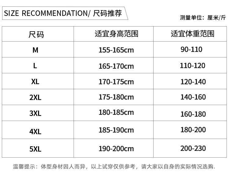 M, L, XL, 2XL, 3XL, 4XL, 5XL