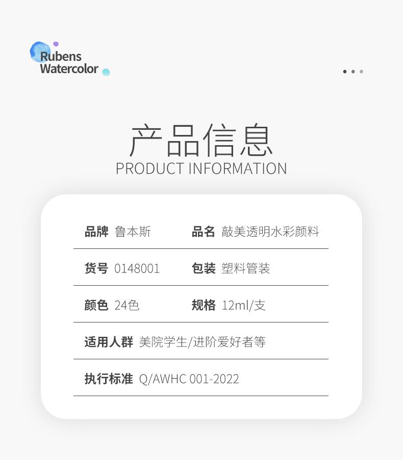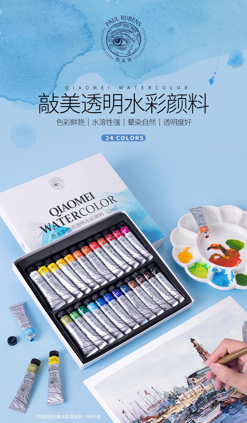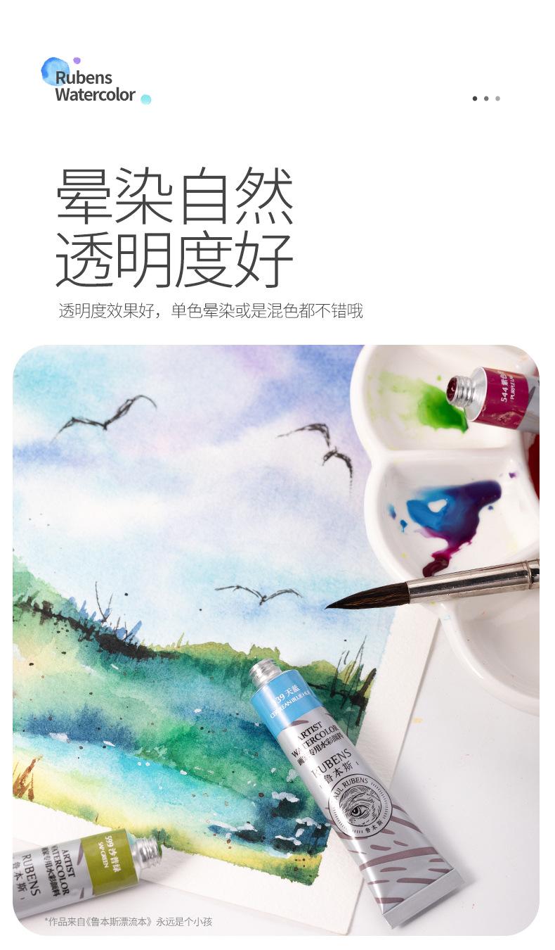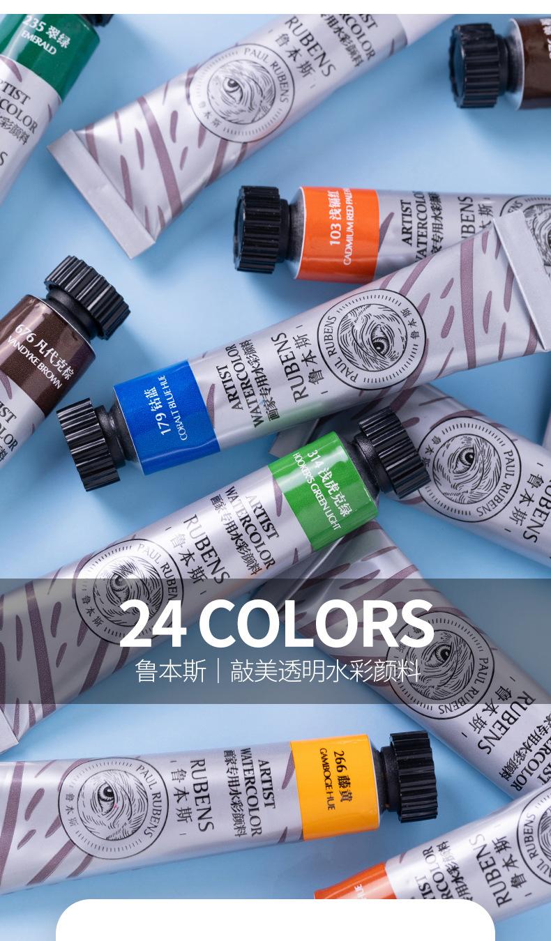 Tubo de Acuarela Rubens Pintura Transparente 12ml Set de 24 Colores para Pintura Artística, Examen de Arte y Mezcla de Colores Específica para Estudiantes