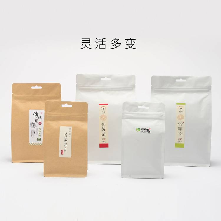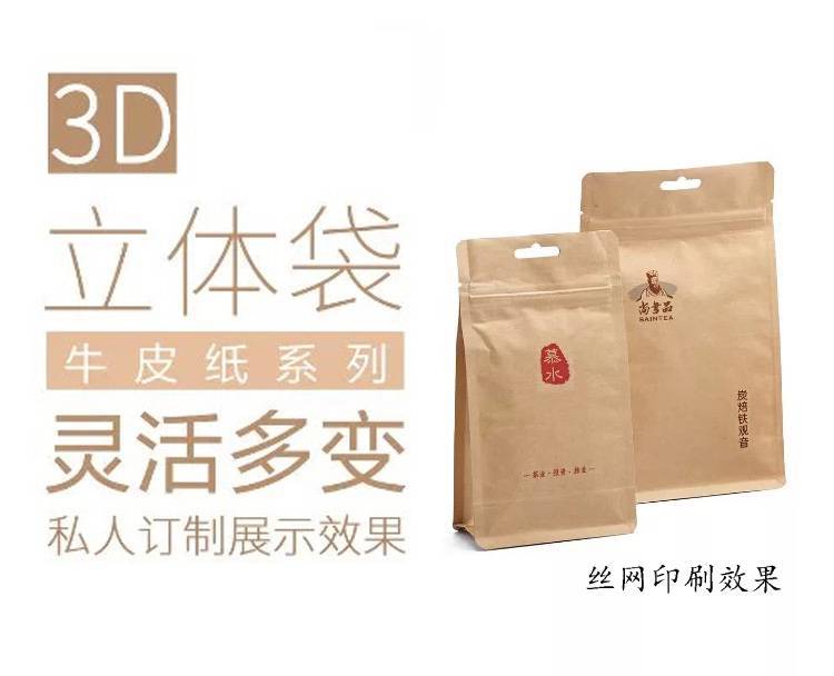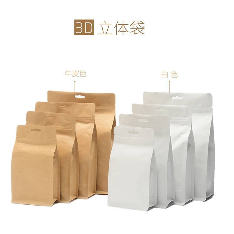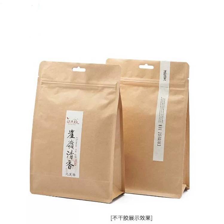 Bolsa de papel kraft sellada por ocho lados al por mayor, bolsa de papel de estaño, bolsa de papel de aluminio, bolsa de embalaje grande engrosada, bolsa 3D para té autosellable con cremallera