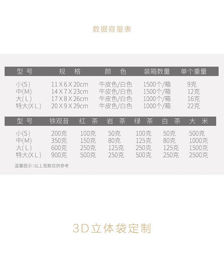 Small size 3D zipper bag Kraft, Medium 3D zipper bag cowhide, Large 3D zipper bag cowhide, Extra large 3D zipp...
