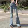 Pantalones vaqueros acampanados de temperamento moderno con colores cosidos para mujer, pantalones largos de corte tipo bota de cintura alta, ajustados y de alta elasticidad.