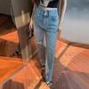Falda larga de cintura alta con borde sin rematar, estilo retro, versátil y ajustada, de mezclilla versátil, primavera y verano 2024
