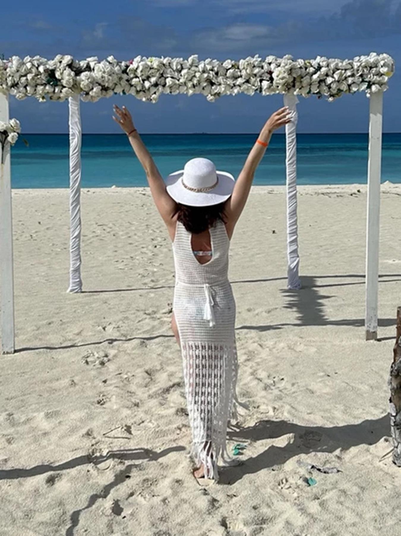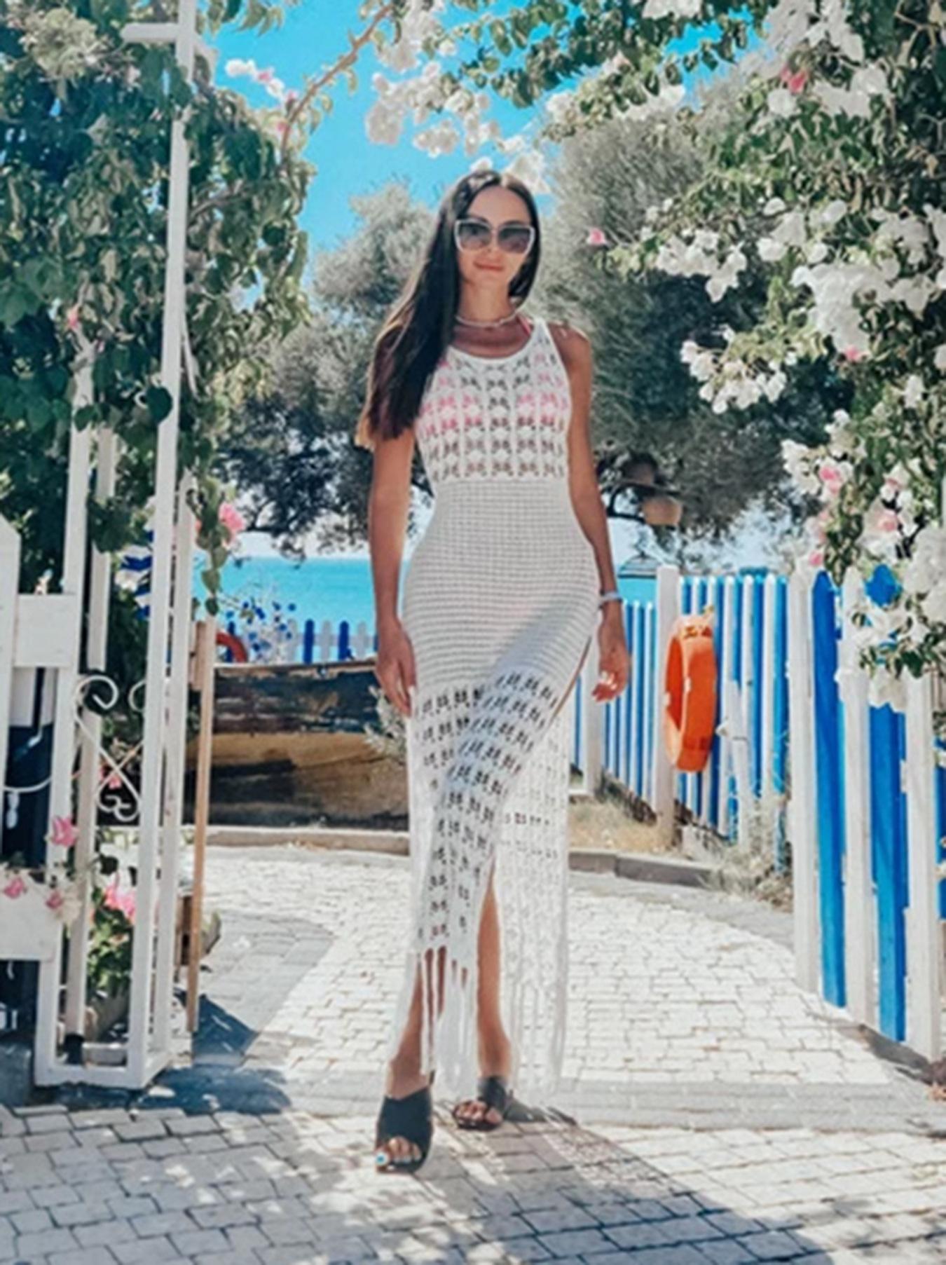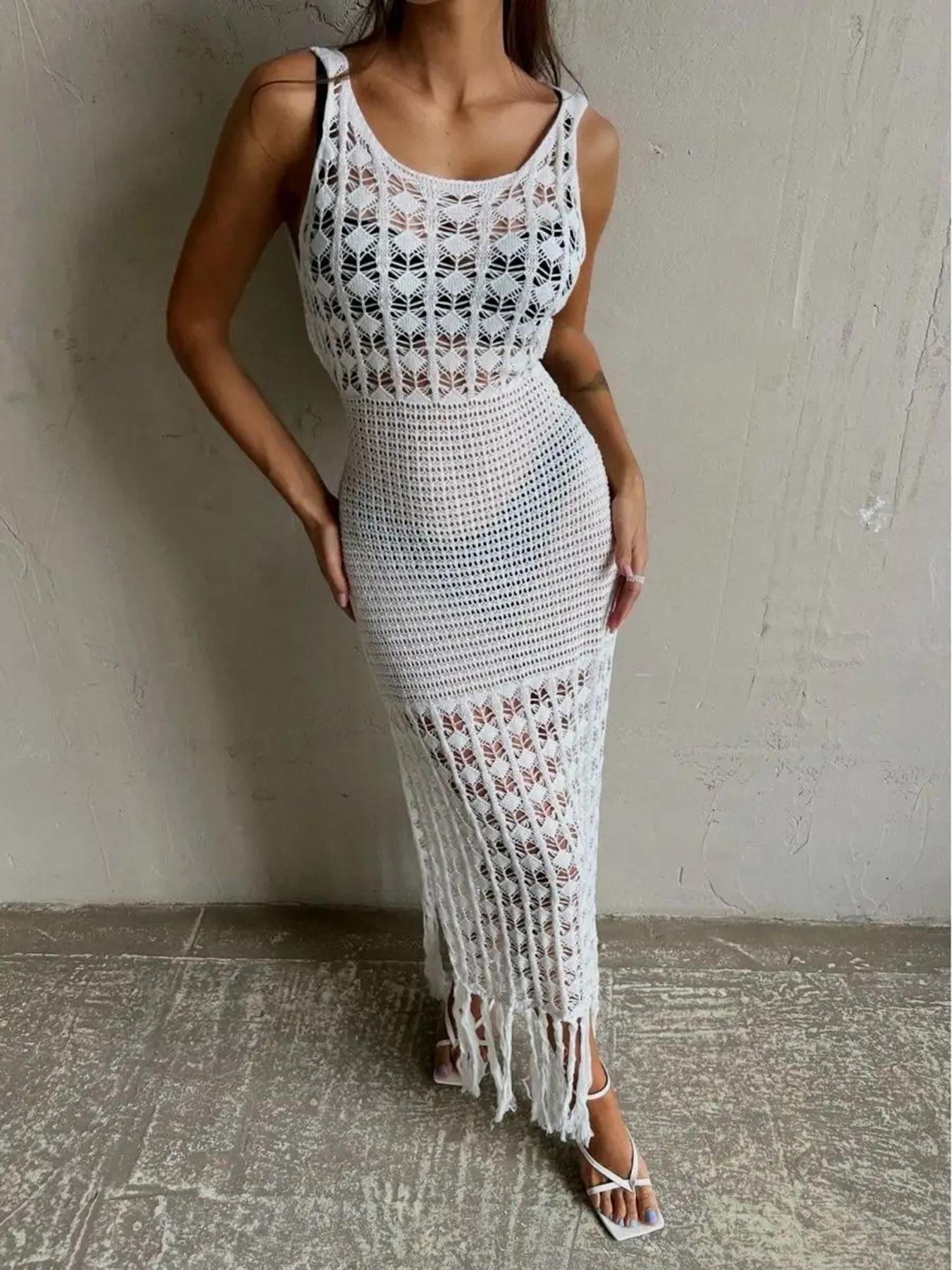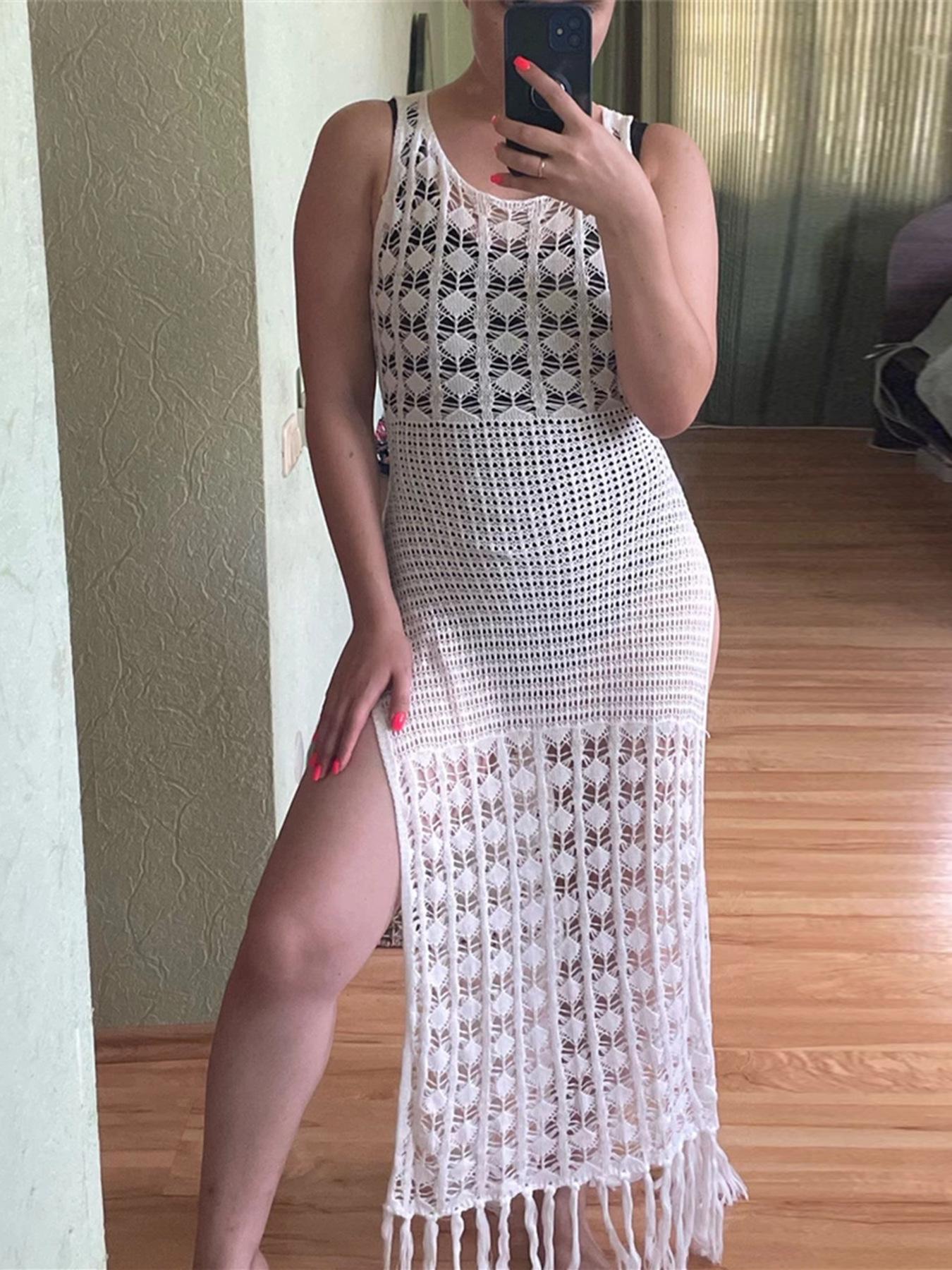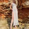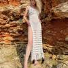 Vestido de playa de verano transfronterizo europeo y americano, sexy, sin espalda, con borlas, abertura, falda de bikini, vestido largo