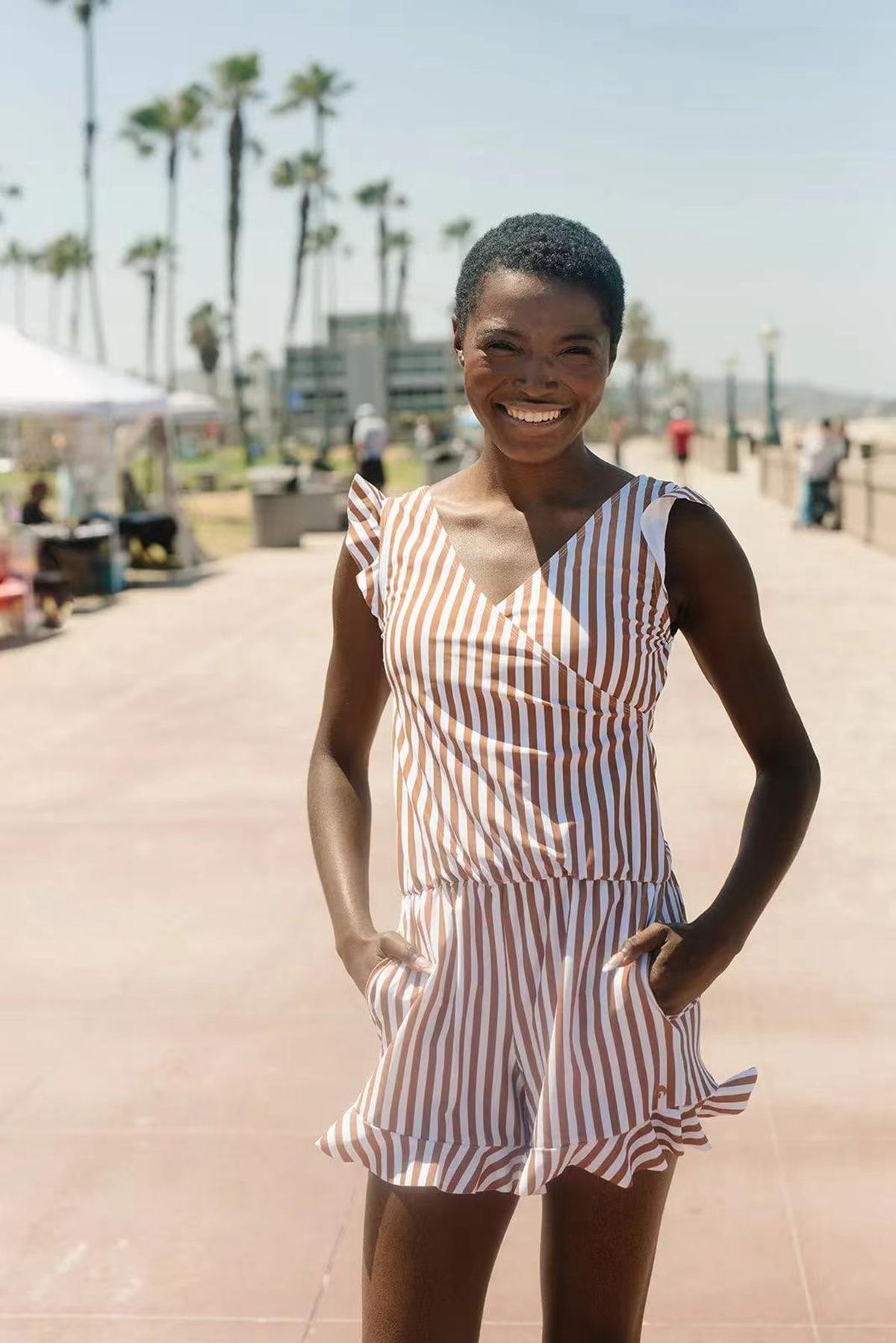 Verano 2024 Nuevo mono versátil de surf a rayas con tirantes ajustados sin mangas para mujer