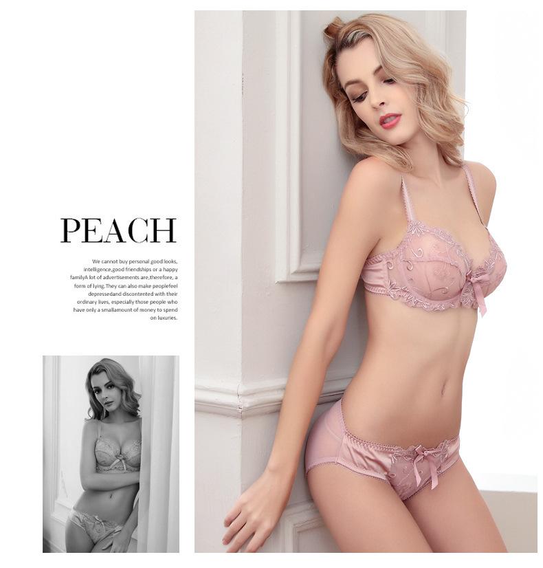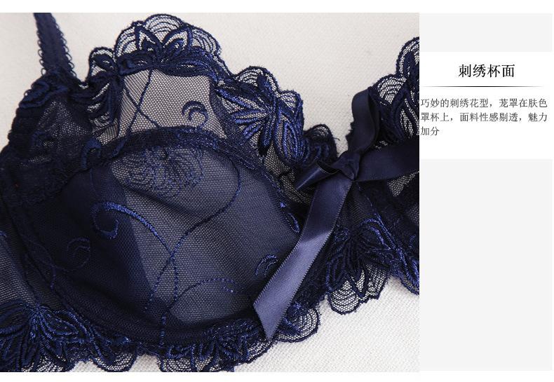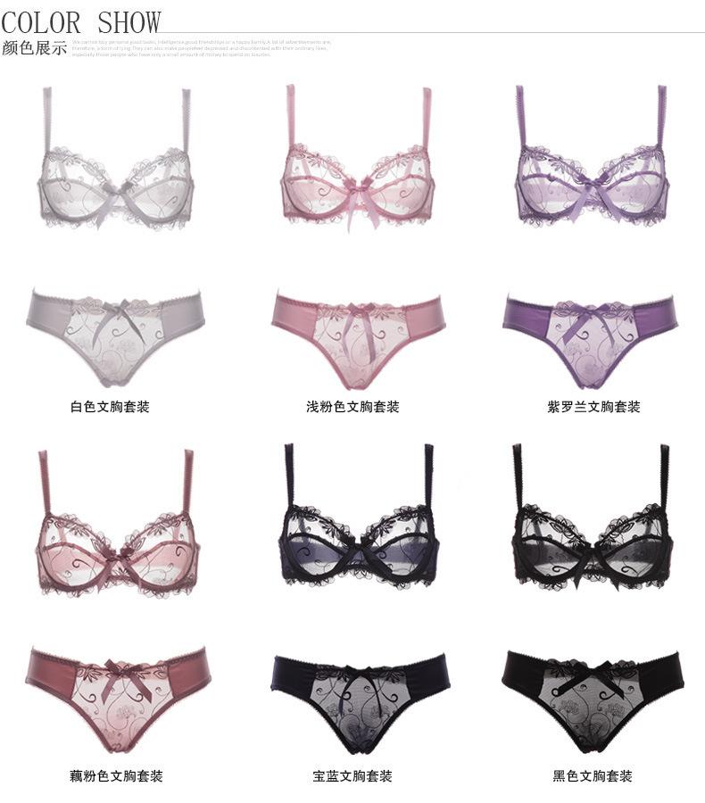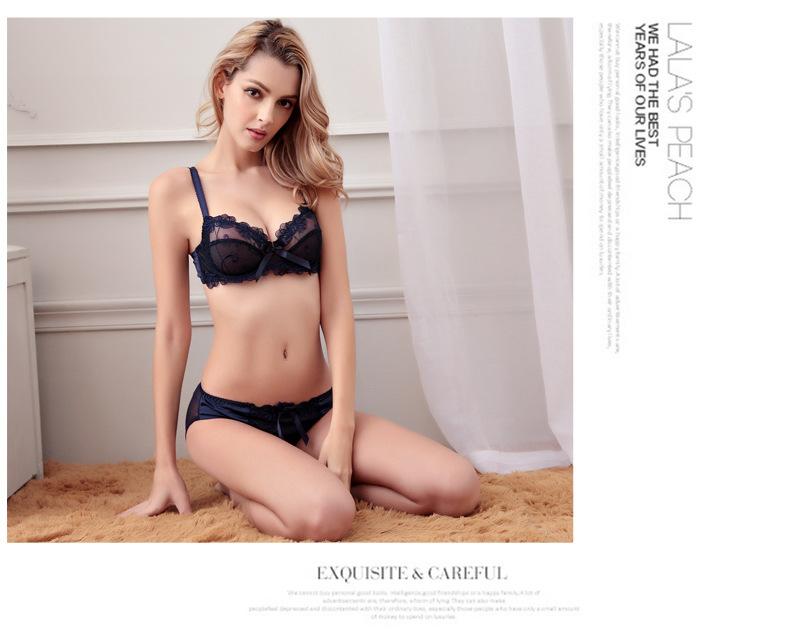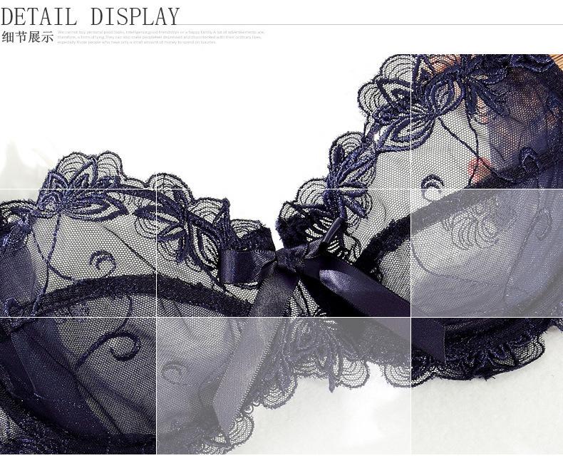 Conjunto de Brasier Sexy de Encaje Transparente Popular Europeo y Americano Puro Deseo Ultradelgado Transpirable Venta al por Mayor Talla Grande Ropa Interior para Mujer