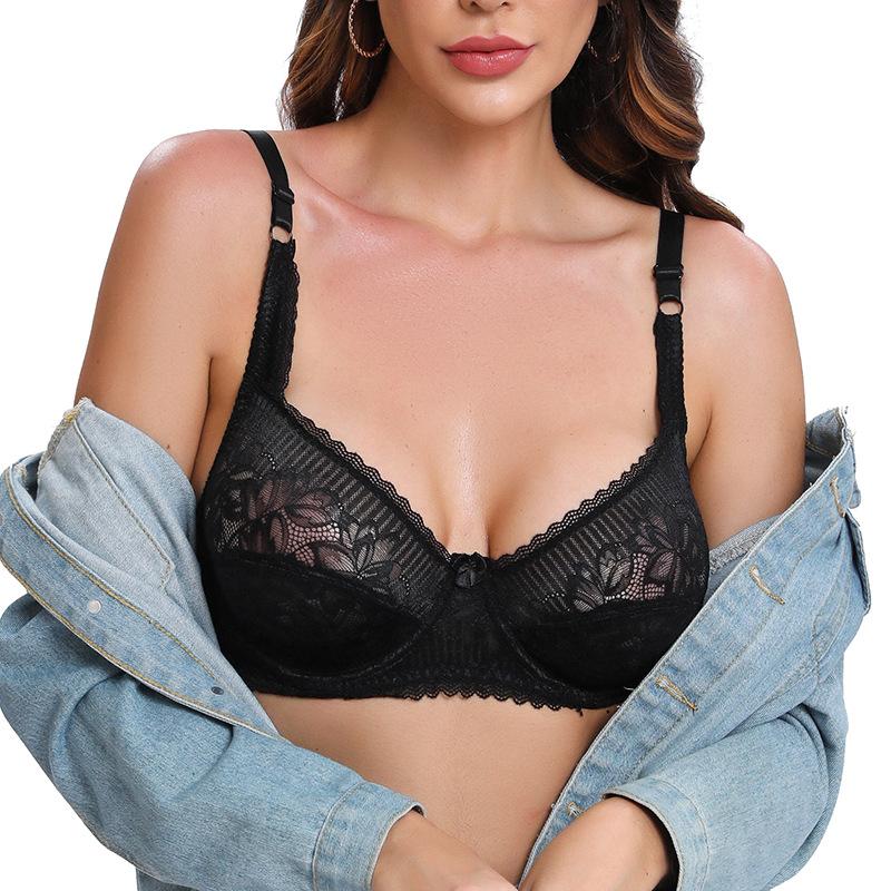 Nueva estación independiente de comercio exterior de encaje transfronterizo con ropa interior de anillo de acero, hermosa espalda de talla grande, Europa y Estados Unidos, sujetador fino y transpirable para damas