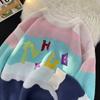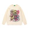 Europeo y Americano Venta al por Mayor Ins Tejido de Punto Tejido de Punto Patrón Jacquard de Flores Cuello Redondo Manga Larga Tejido de Punto Holgado de Calle Estilo Oscuro