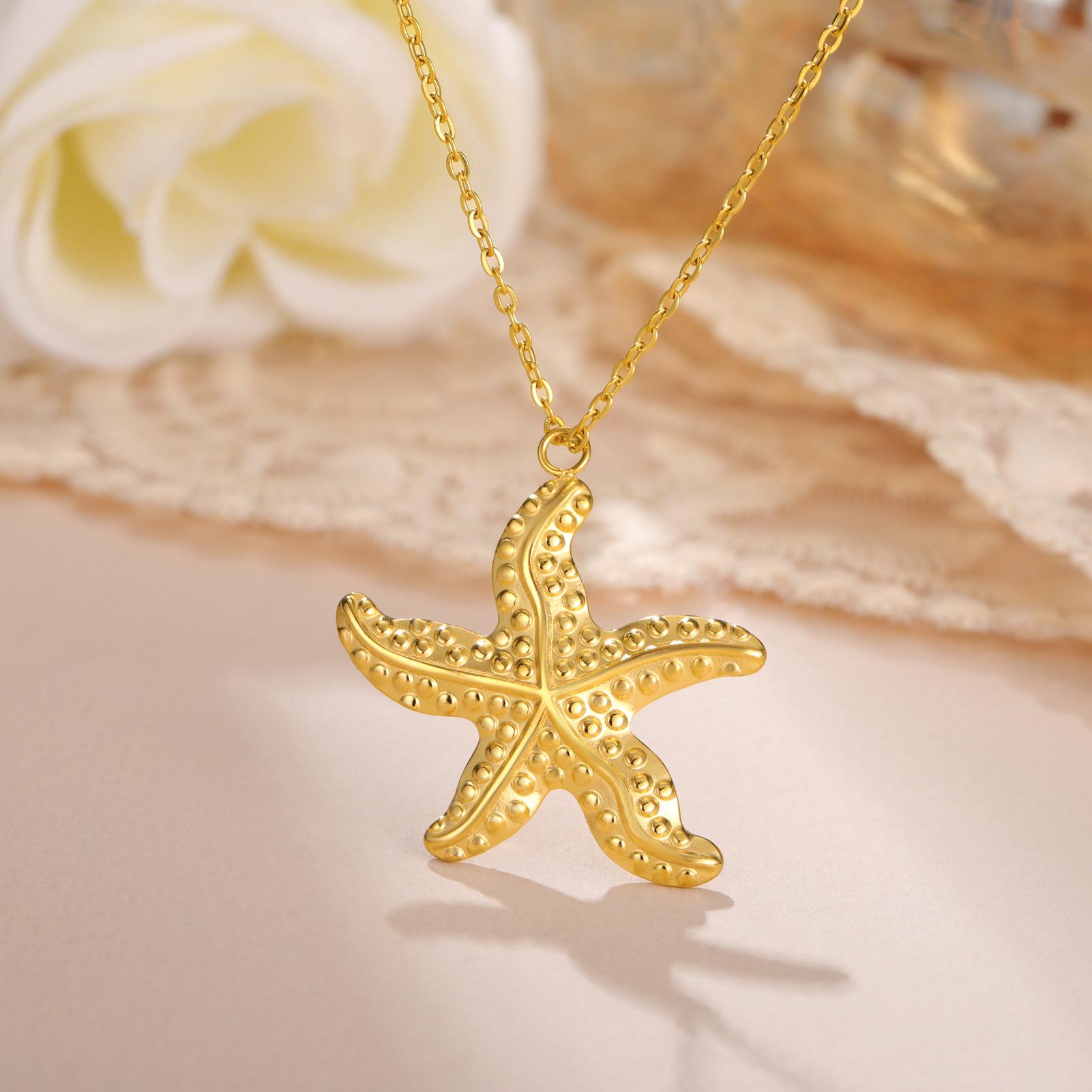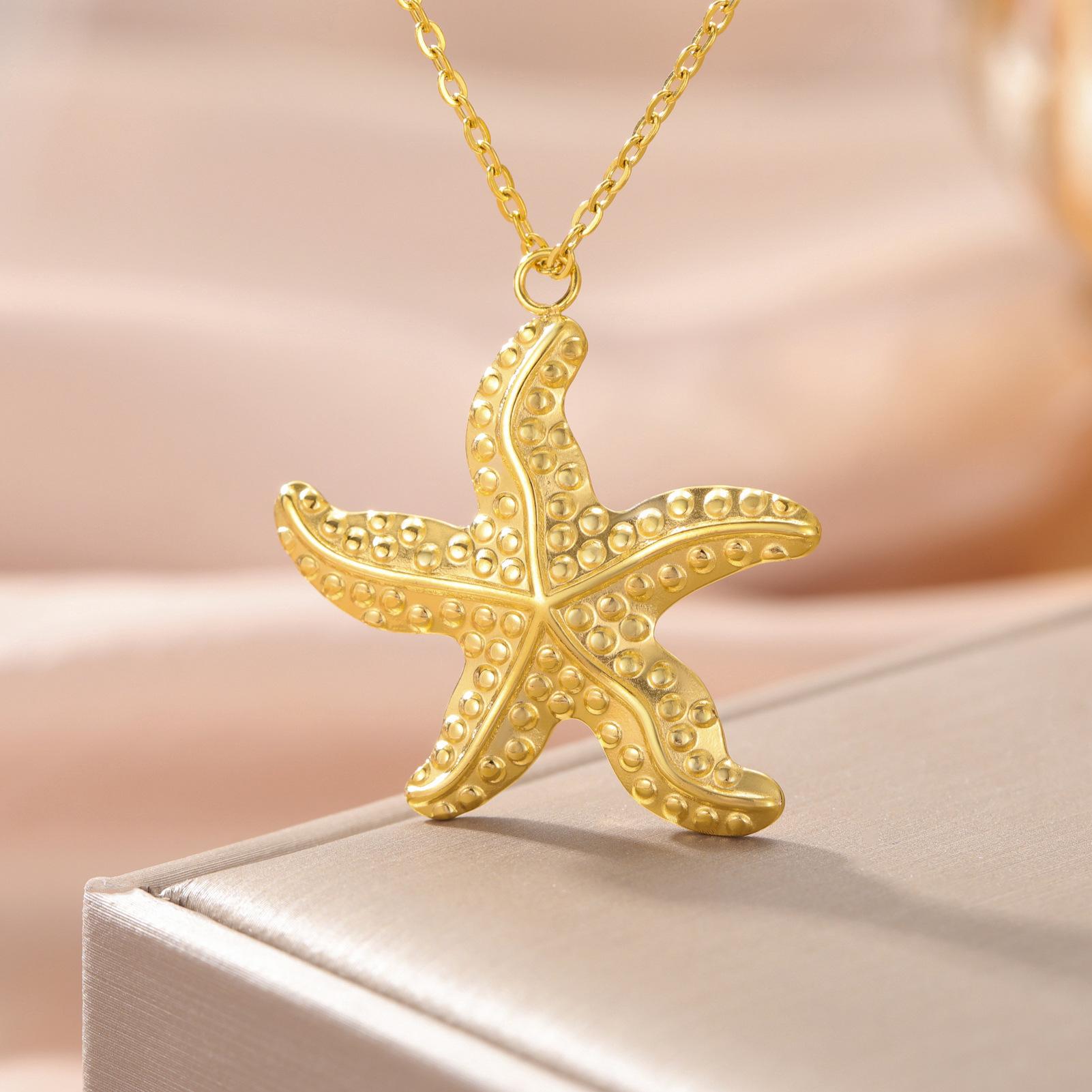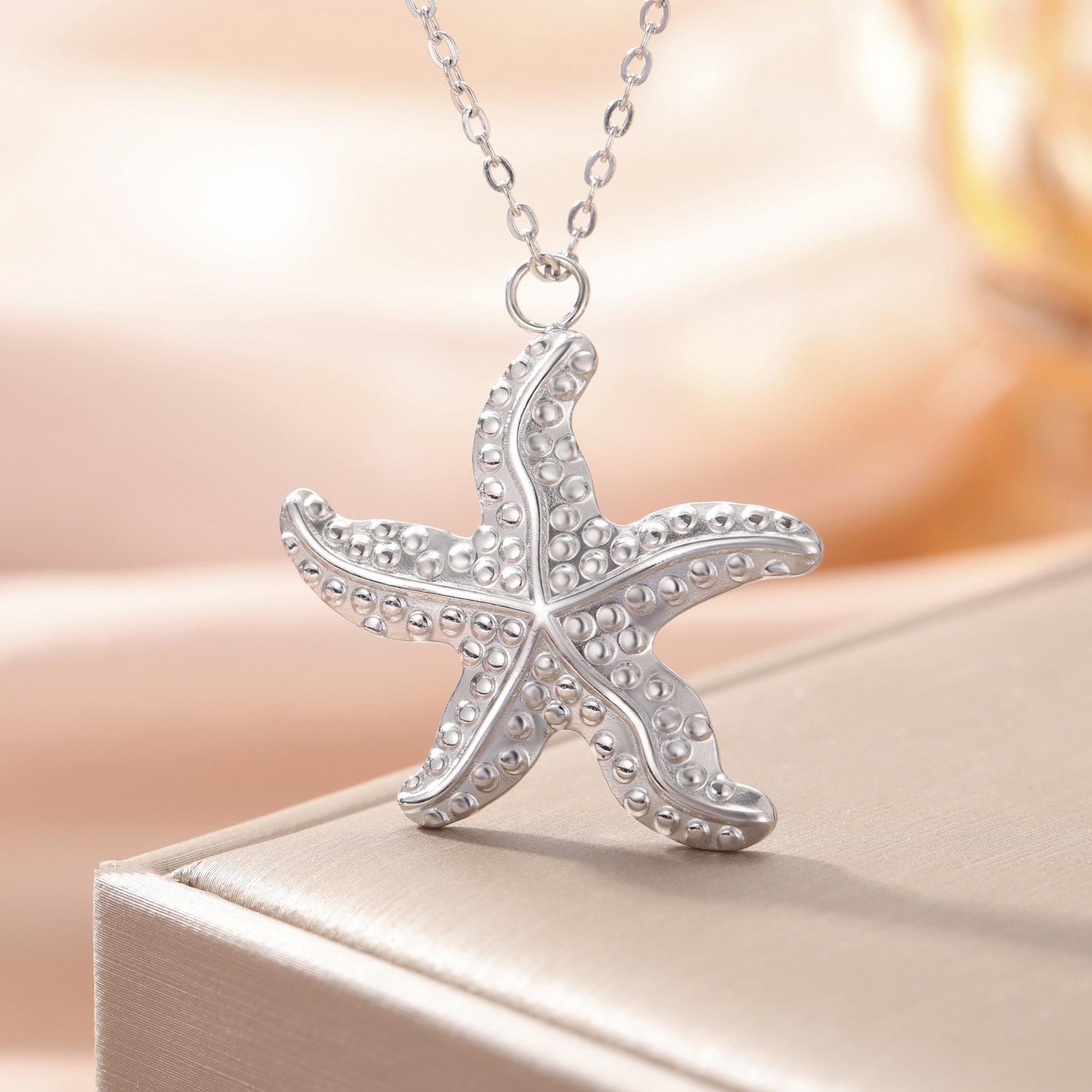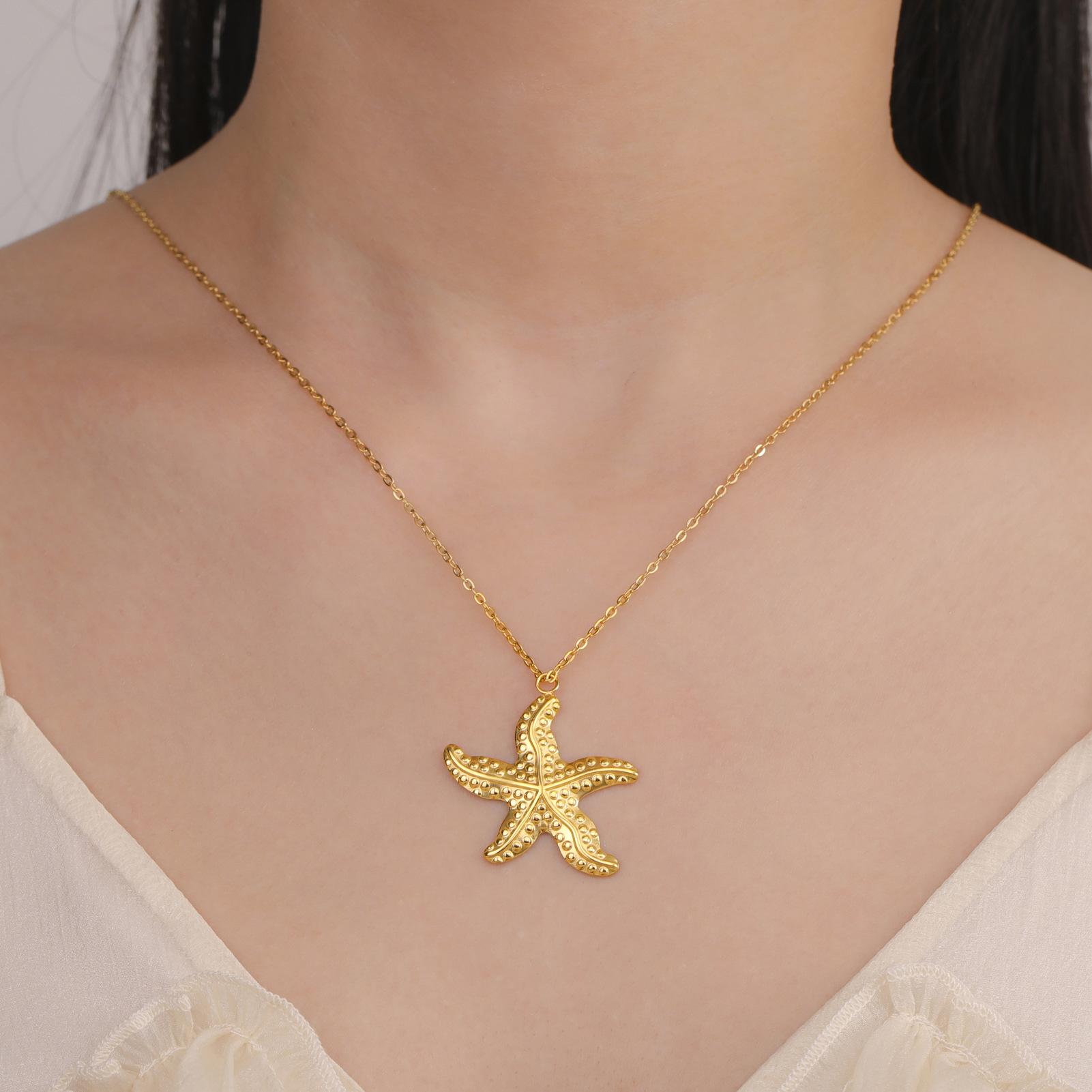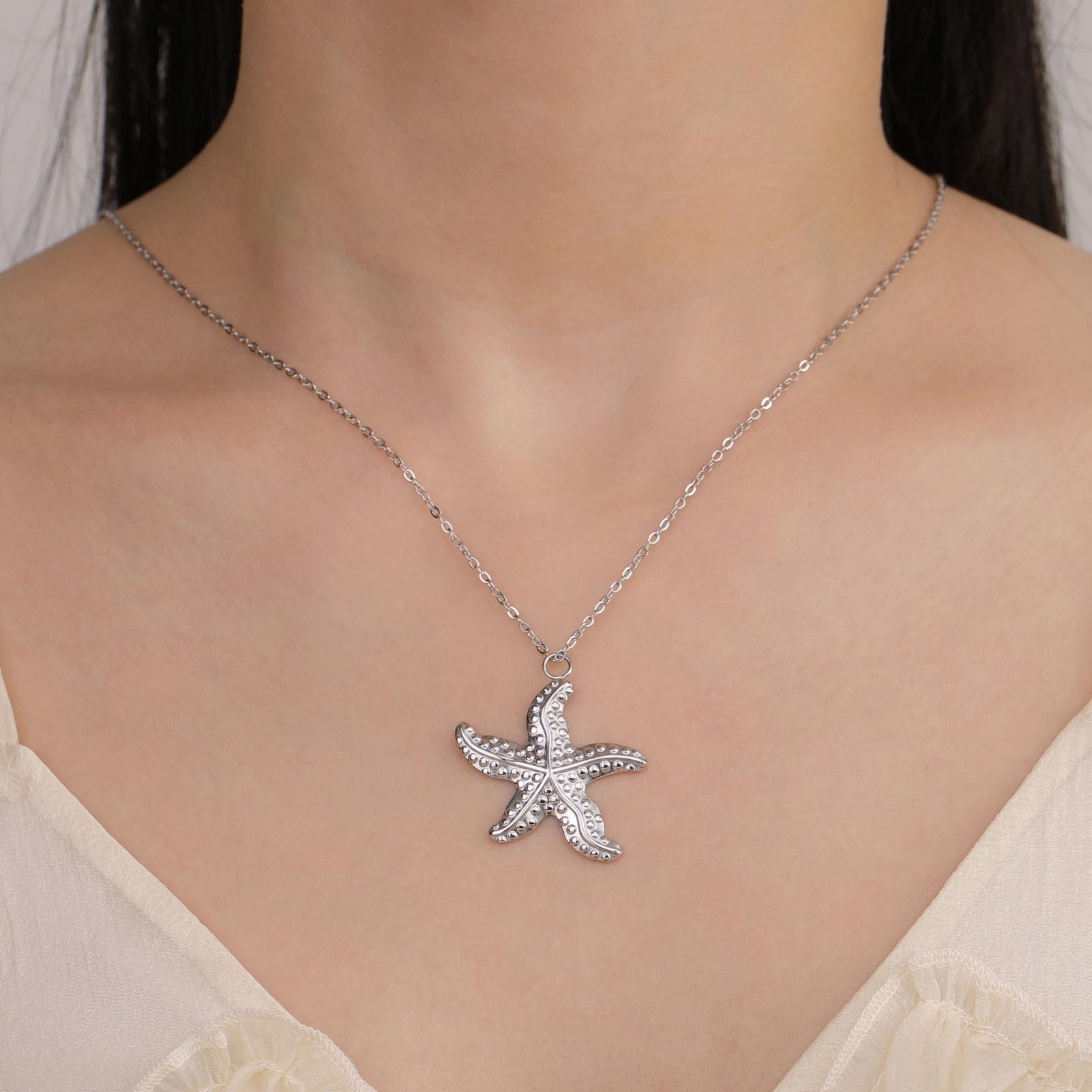 Collar con colgante de estrella de mar de moda europea y americana transfronteriza, estilo vacacional, personalidad simple, diseño de moda que combina con todo, collar de acero inoxidable