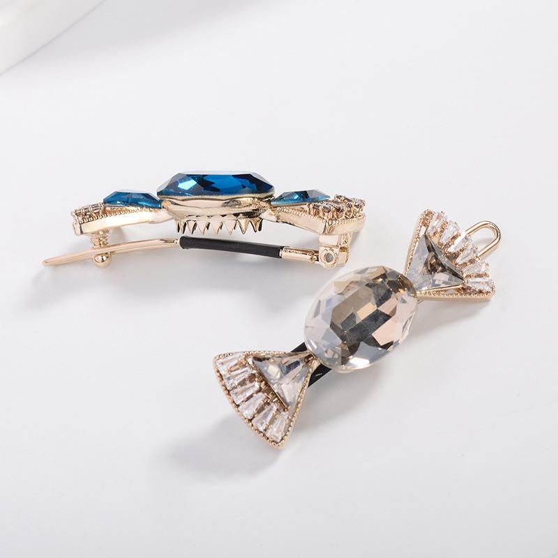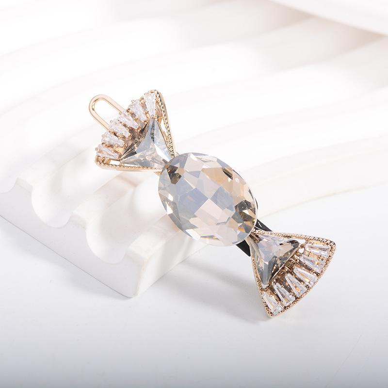 Horquilla de estilo coreano con forma de caramelo, exquisita y sencilla, con lazo de cristal de imitación para mujer, diseño de nicho, accesorios para el cabello