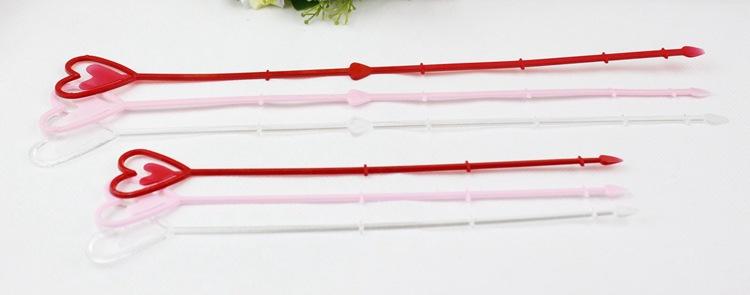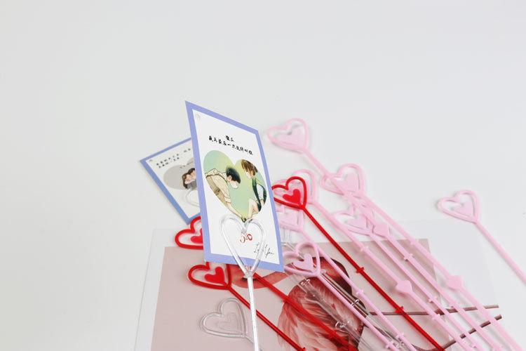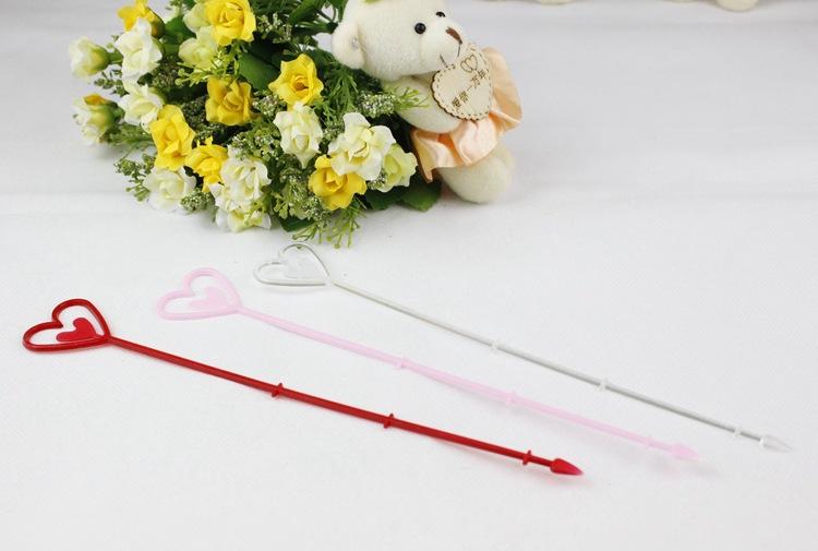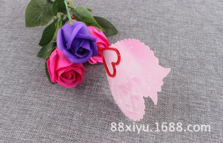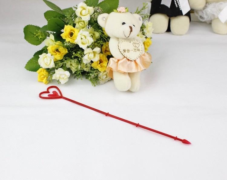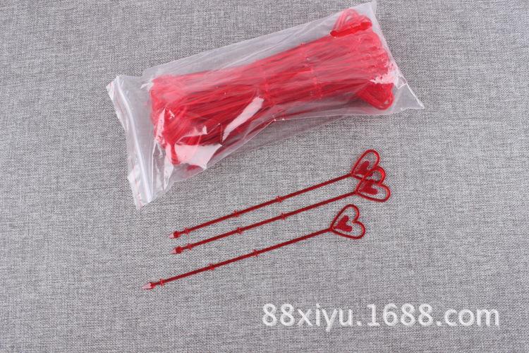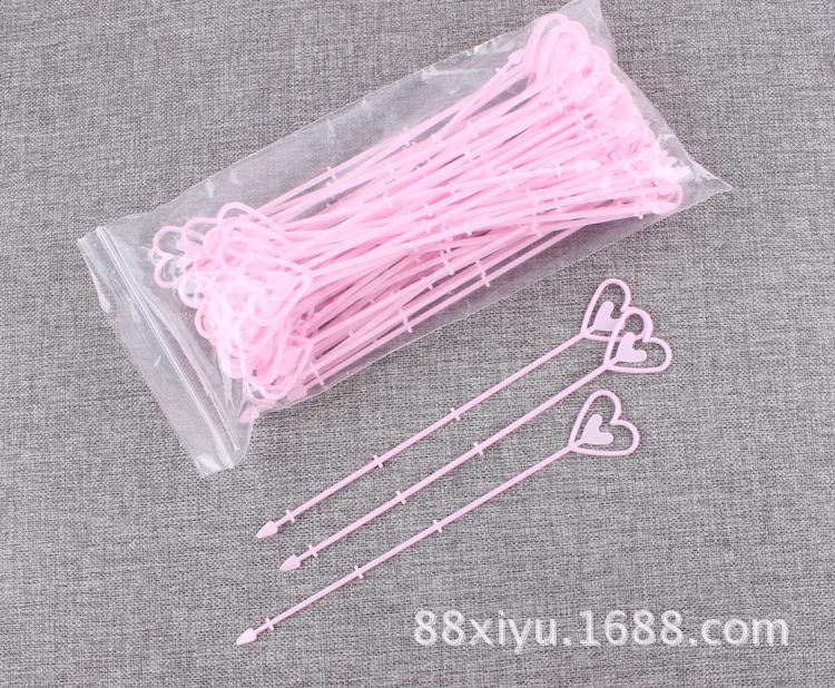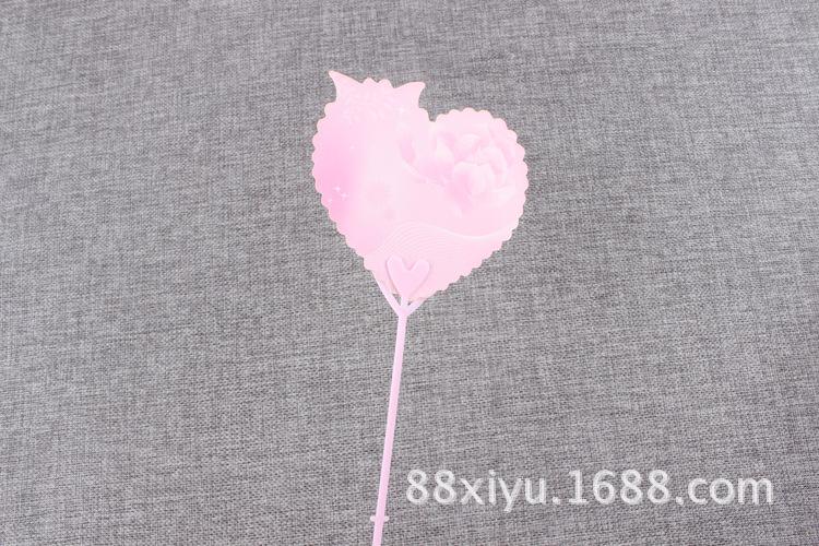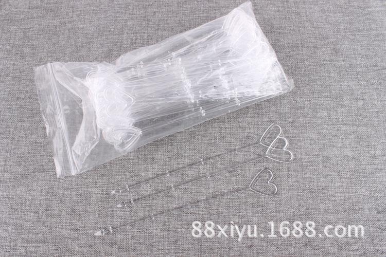 Uso: Un extremo es un corazón, para colocar tarjetas, y el otro extremo es un tapón, que se puede insertar en el ramo.