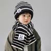 Conjunto de Dos Piezas de Bufanda y Gorro de Rayas para Niños y Niñas, Otoño e Invierno Cortavientos y Cálido Jersey de Lana Tejida Gorro con Protección para las Orejas