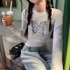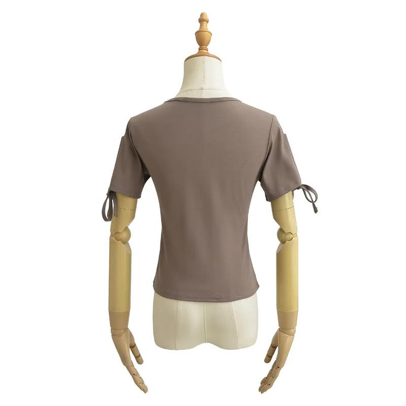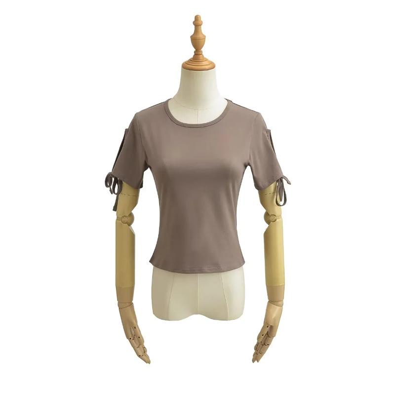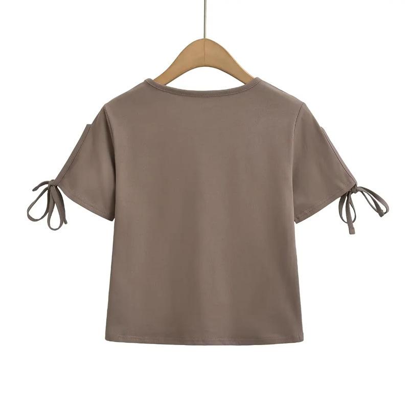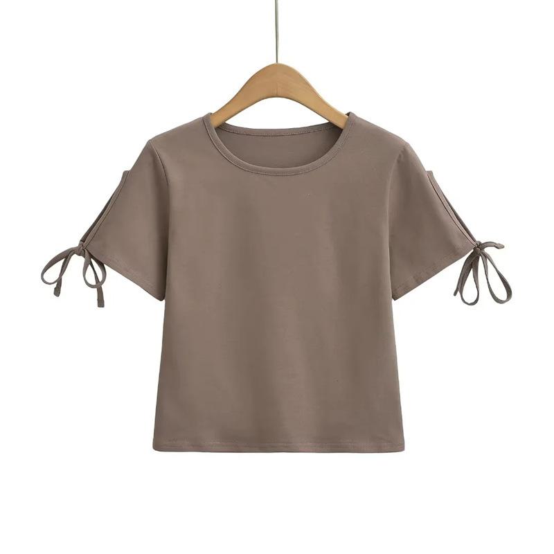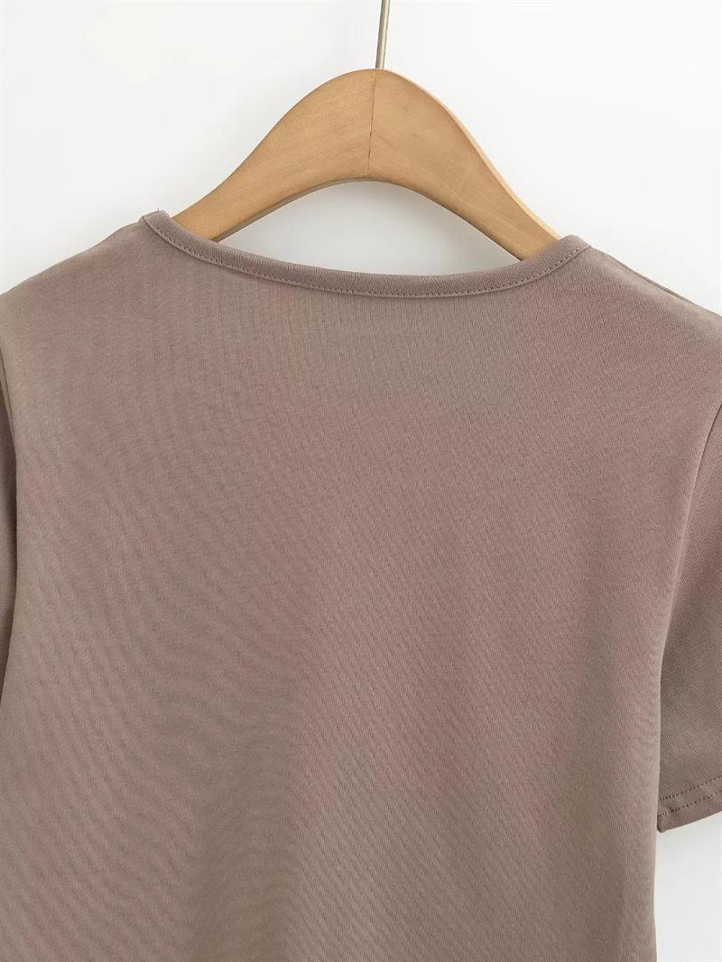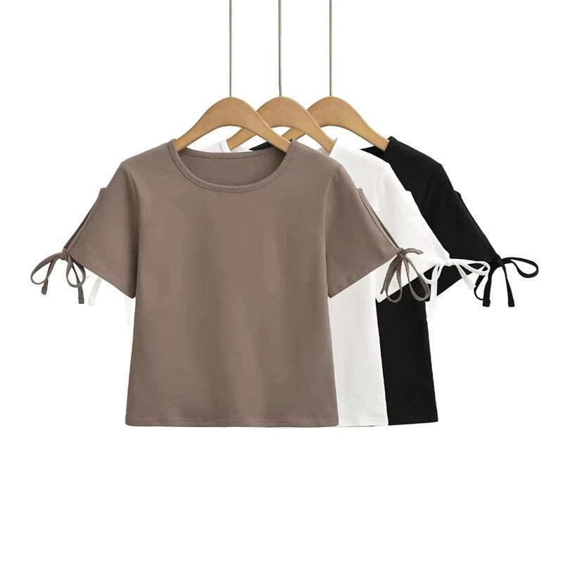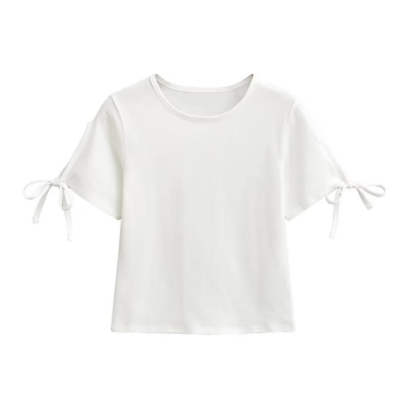 INS2024 Verano Nuevo Diseño de Puños Cuello Redondo Manga Corta Camiseta Verano Nueva Spice Girl Camiseta Corta Entallada