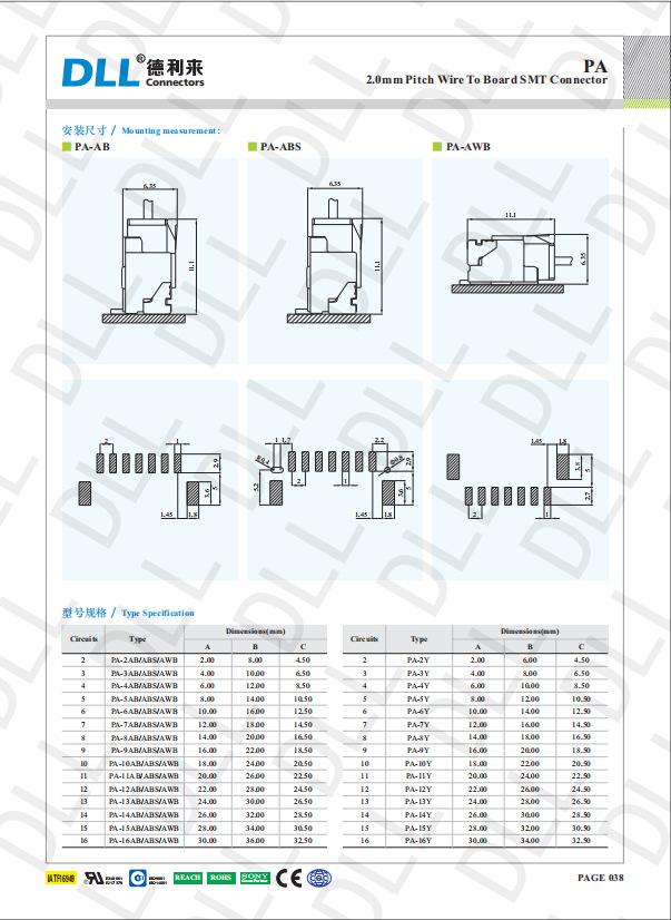 PA-2AB SMD, paso beige P = 2.0mm: 2,0 mm