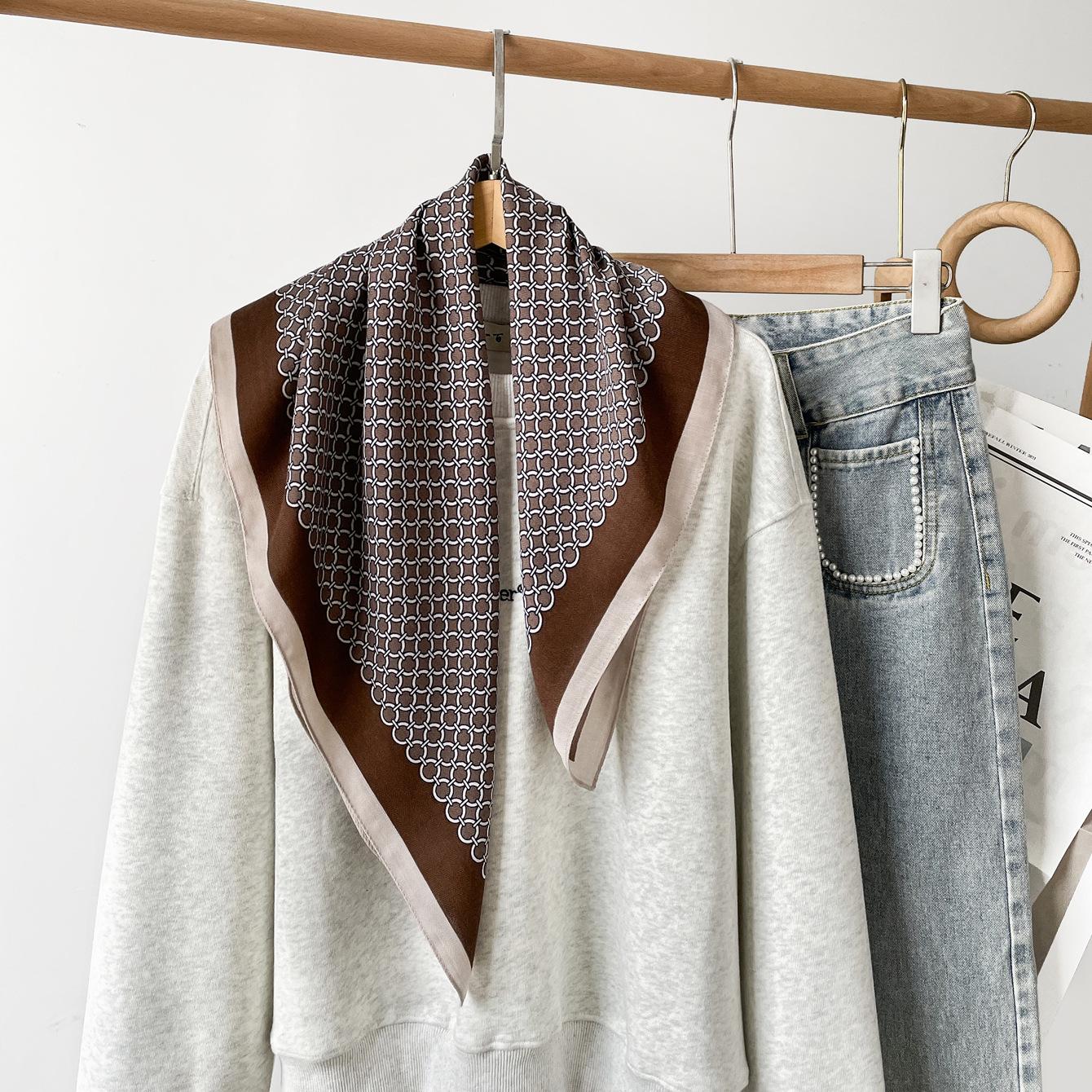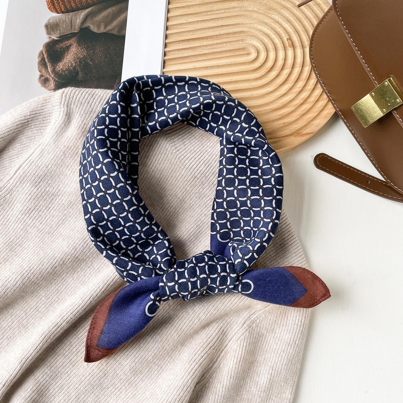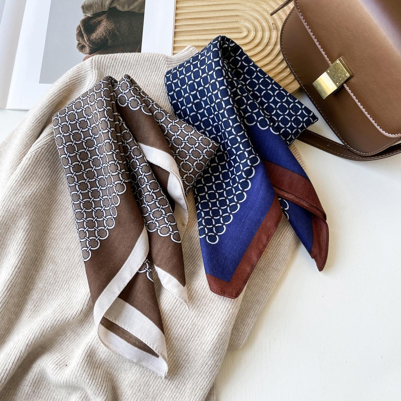 Combinación de Ropa Moda Retro Coreana Bufanda Círculo Geométrico Estampado Pequeña Cuadrada Bufanda de Seda de Alta Calidad Bufanda de Mujer