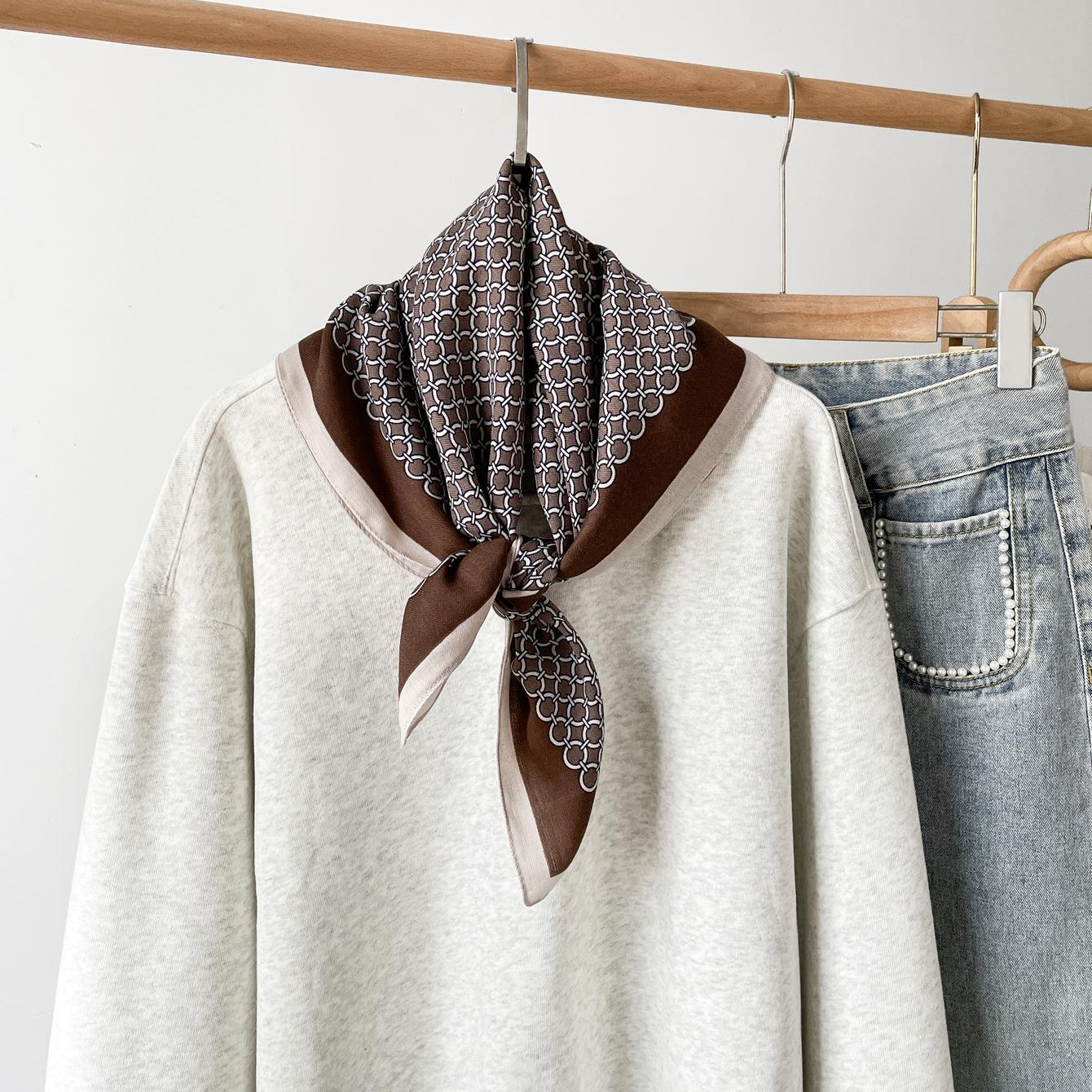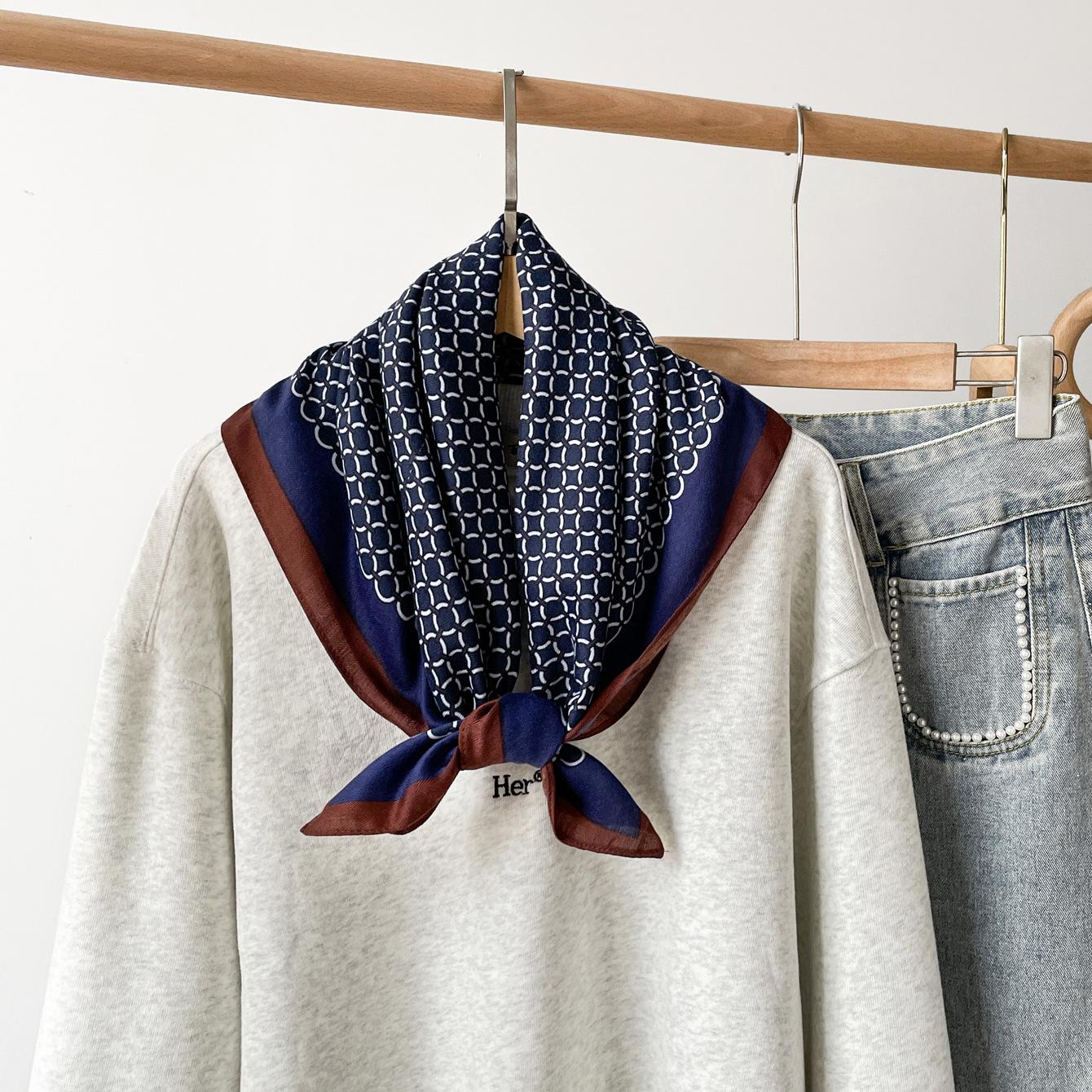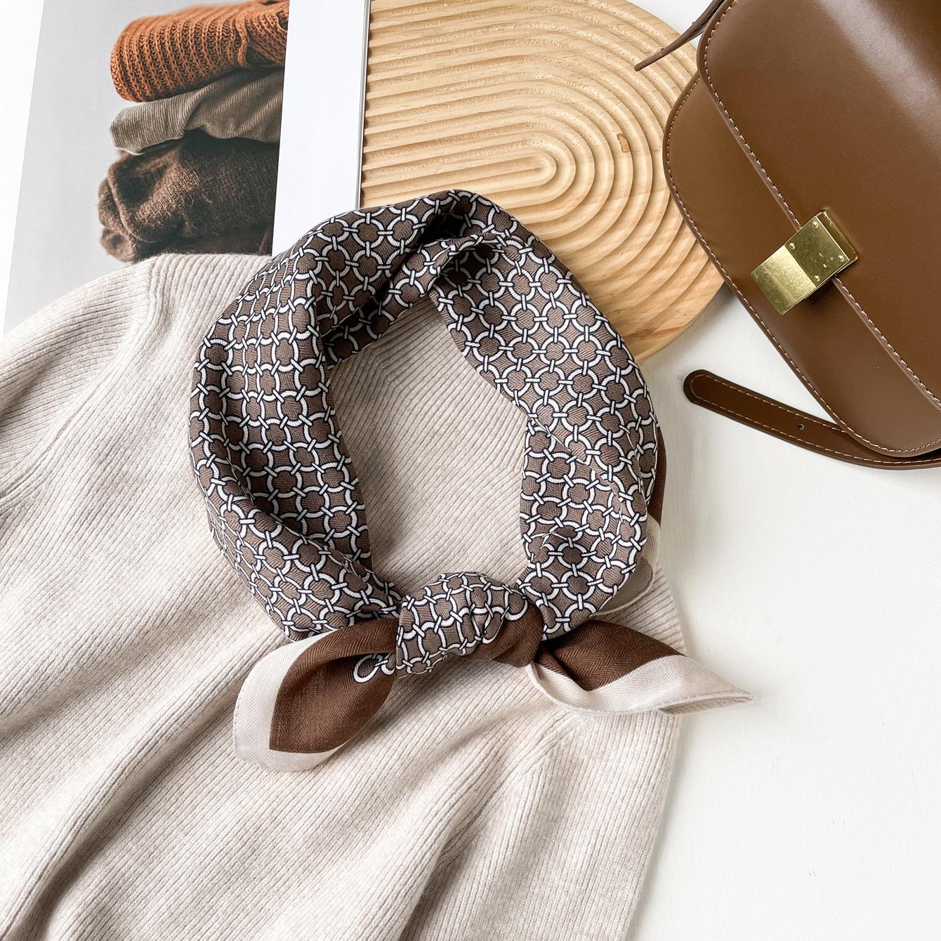 Combinación de Ropa Moda Retro Coreana Bufanda Círculo Geométrico Estampado Pequeña Cuadrada Bufanda de Seda de Alta Calidad Bufanda de Mujer