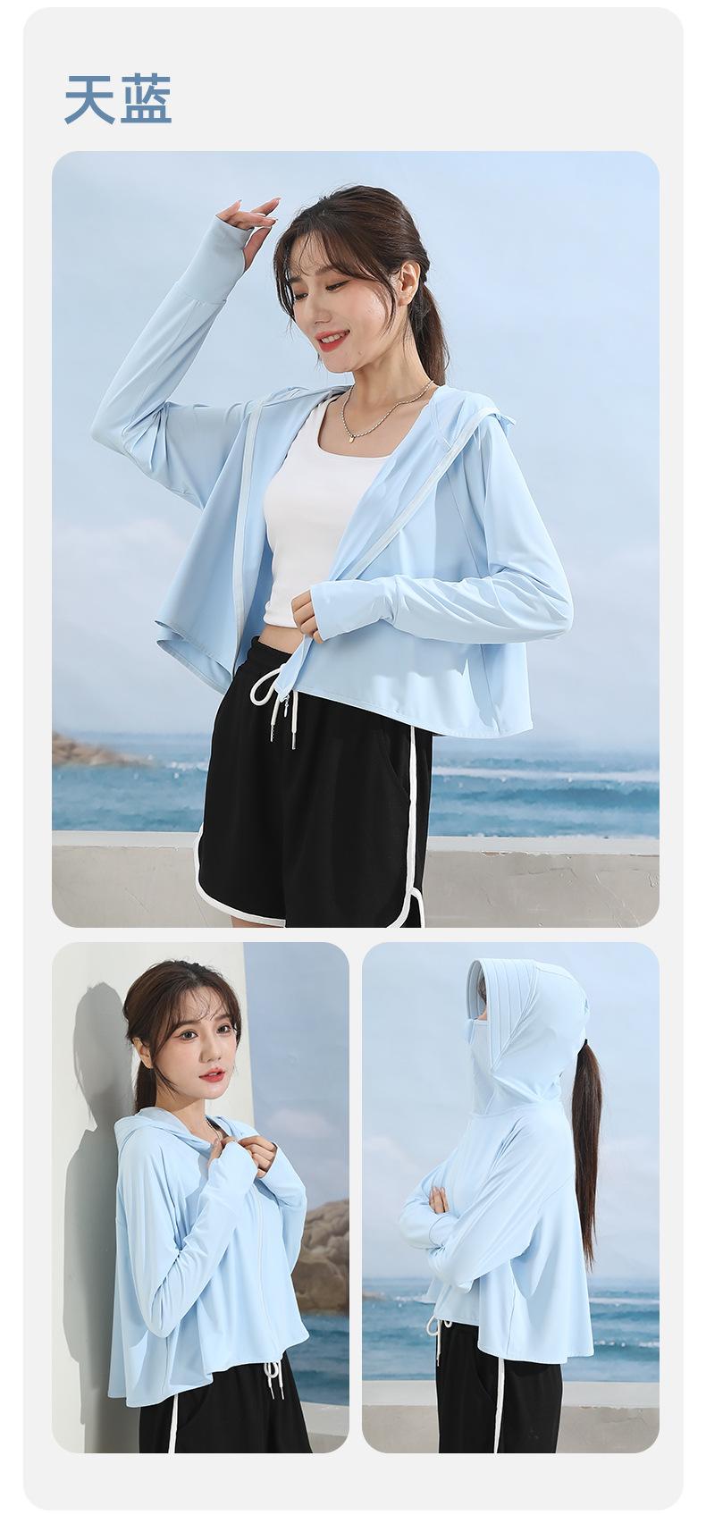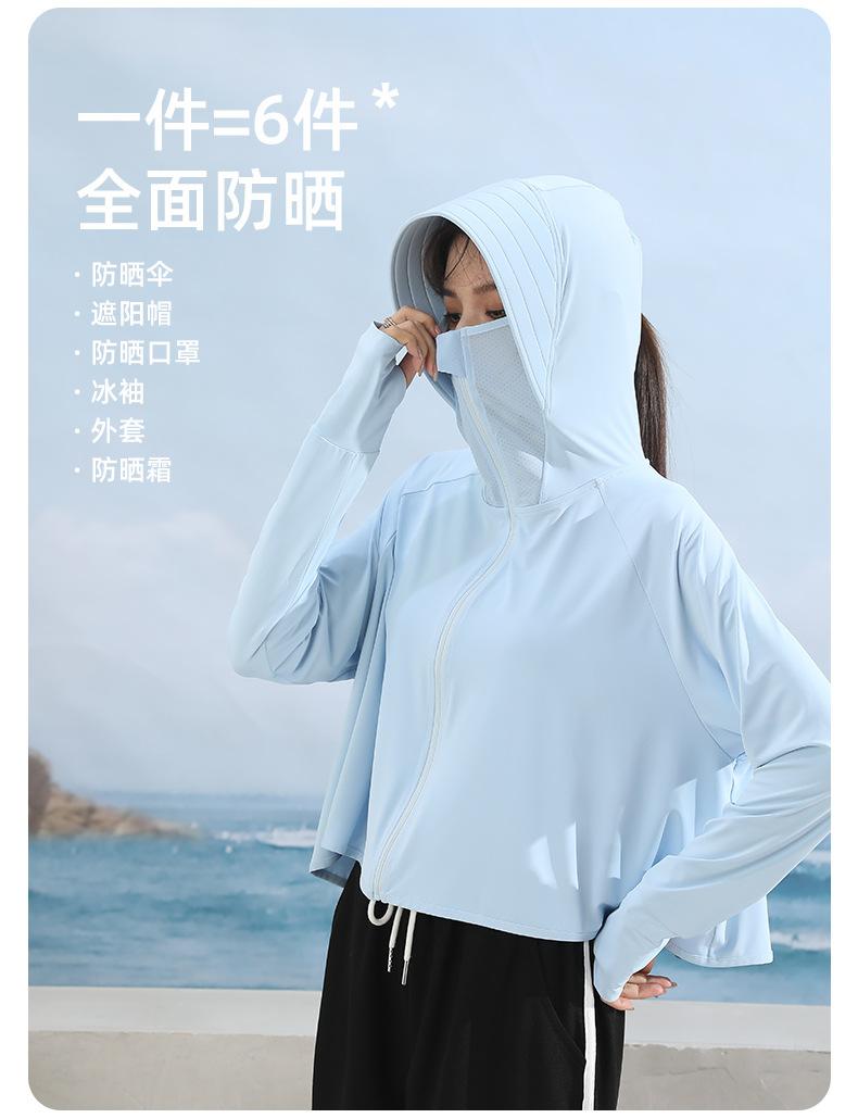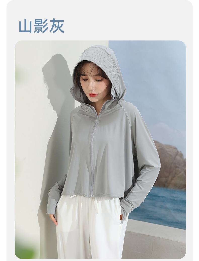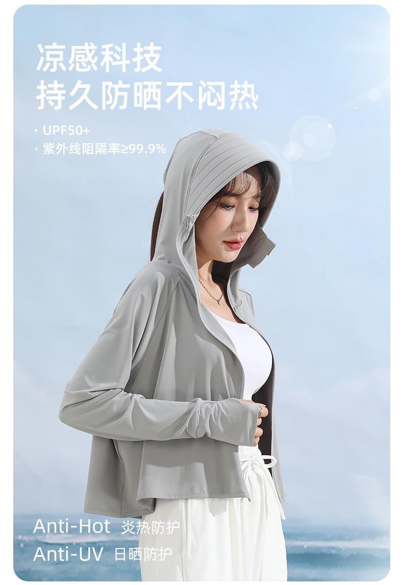 Ropa de protección solar para mujer, abrigo de verano de seda helada UPF50, antiultravioleta, fina, transpirable, para ciclismo al aire libre, ropa de protección solar de manga larga.