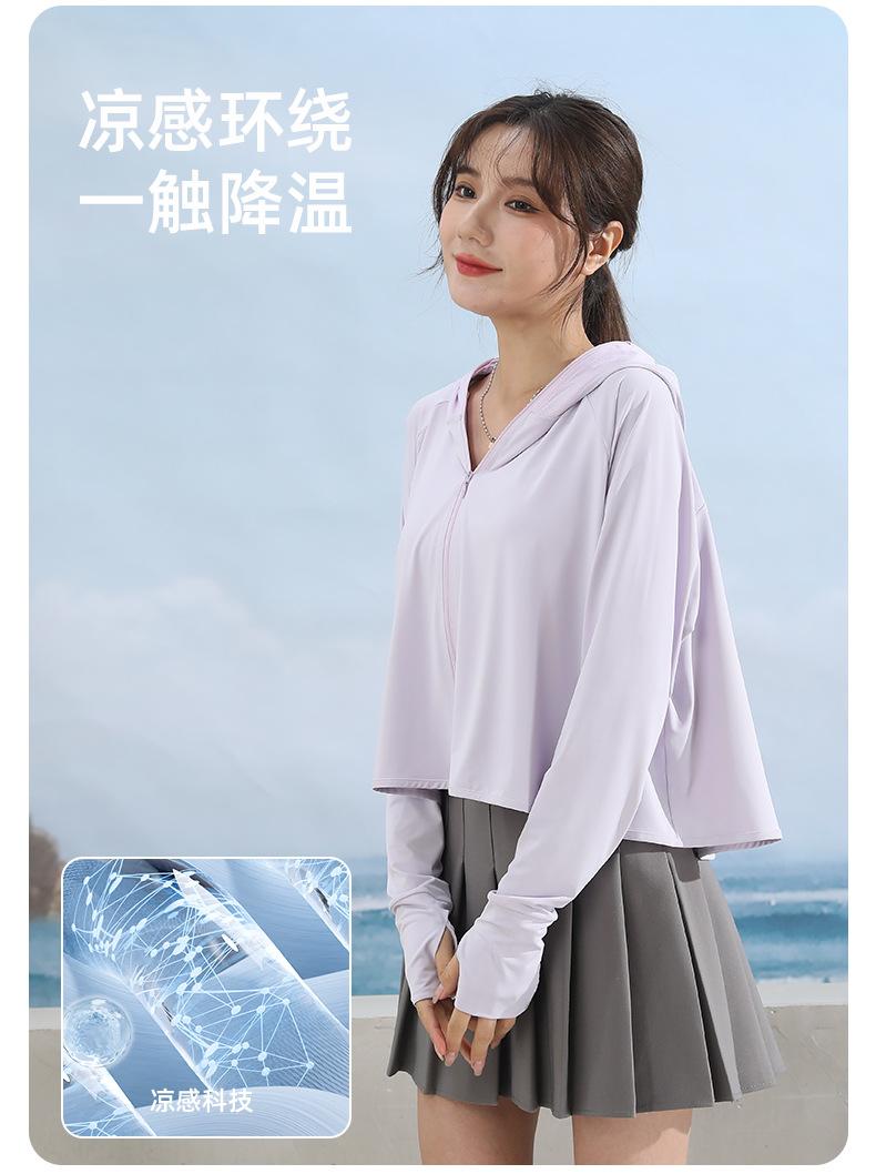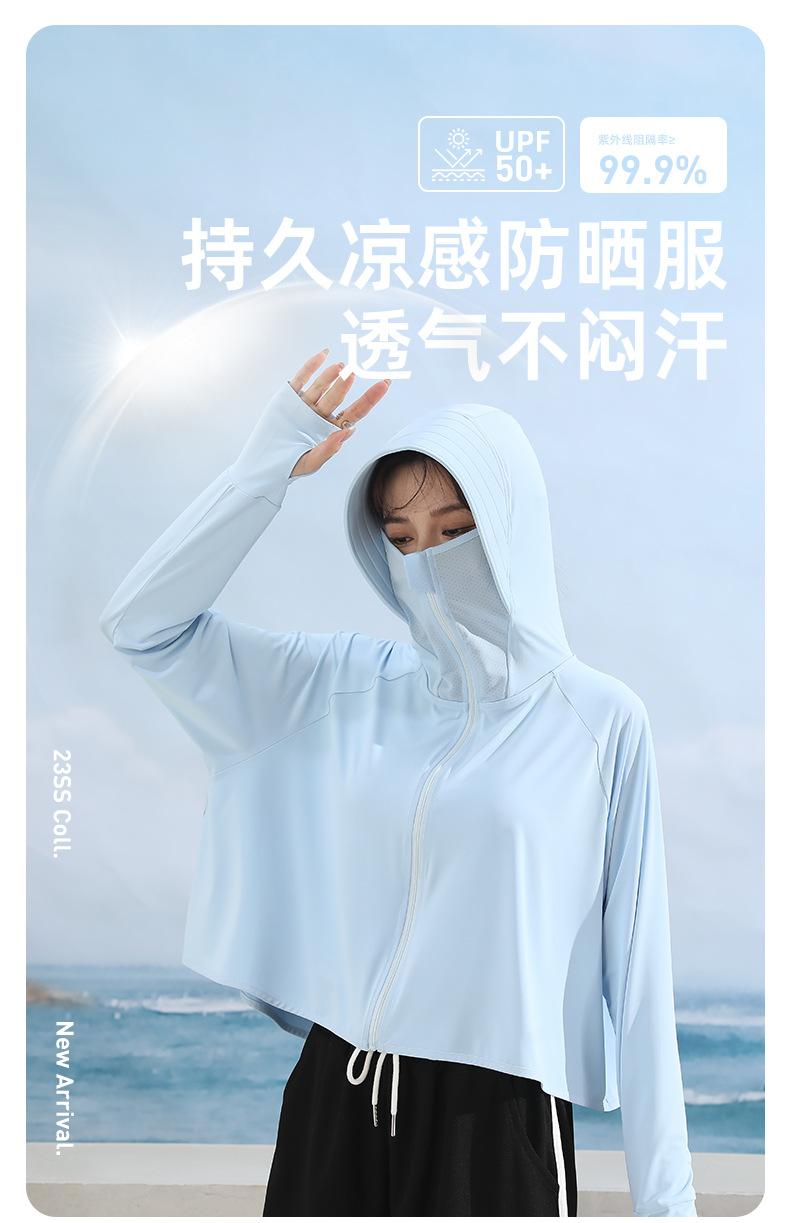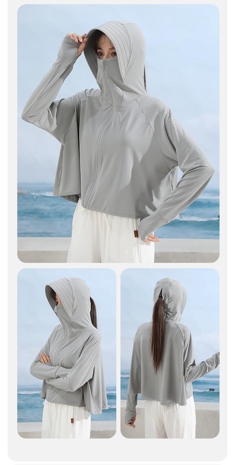 Ropa de protección solar para mujer, abrigo de verano de seda helada UPF50, antiultravioleta, fina, transpirable, para ciclismo al aire libre, ropa de protección solar de manga larga.