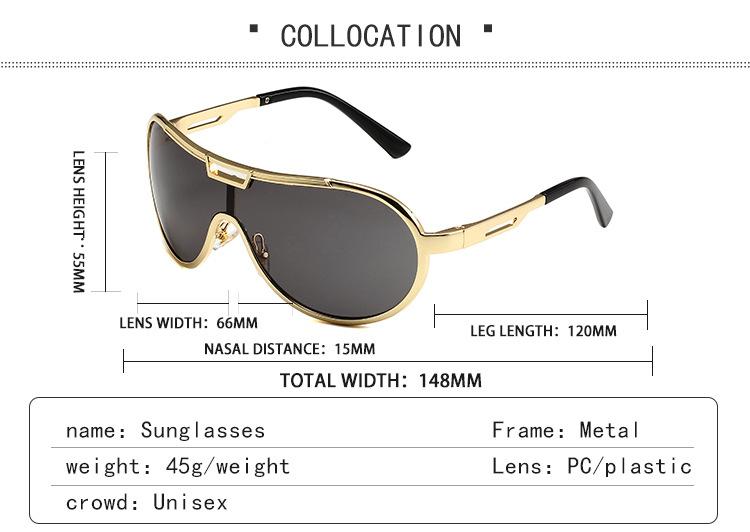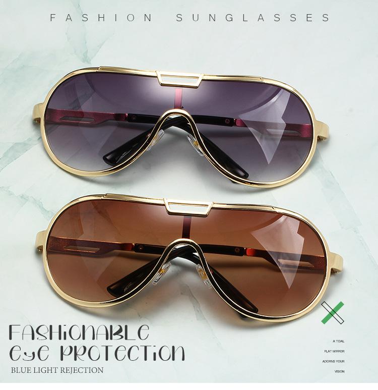 Nuevas gafas de montura grande transfronterizas, gafas de sol de una pieza de moda retro europea y americana, gafas de sol a prueba de viento para exteriores para mujer, venta al por mayor