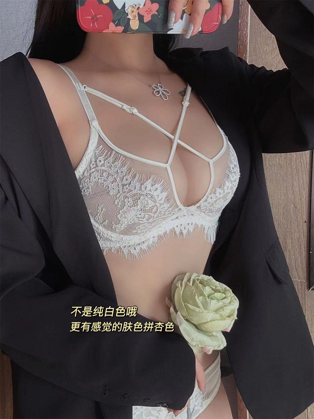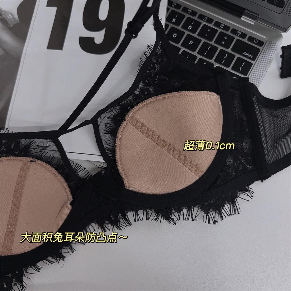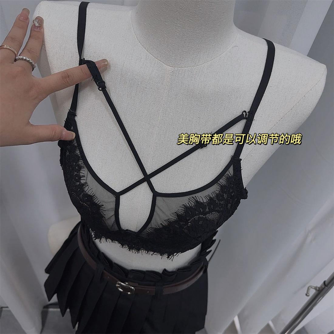 Sujetador de estilo francés sexy con aro de acero fino y cruzado con encaje hueco, push-up, ropa interior Pure Desire, con pecho despejado.