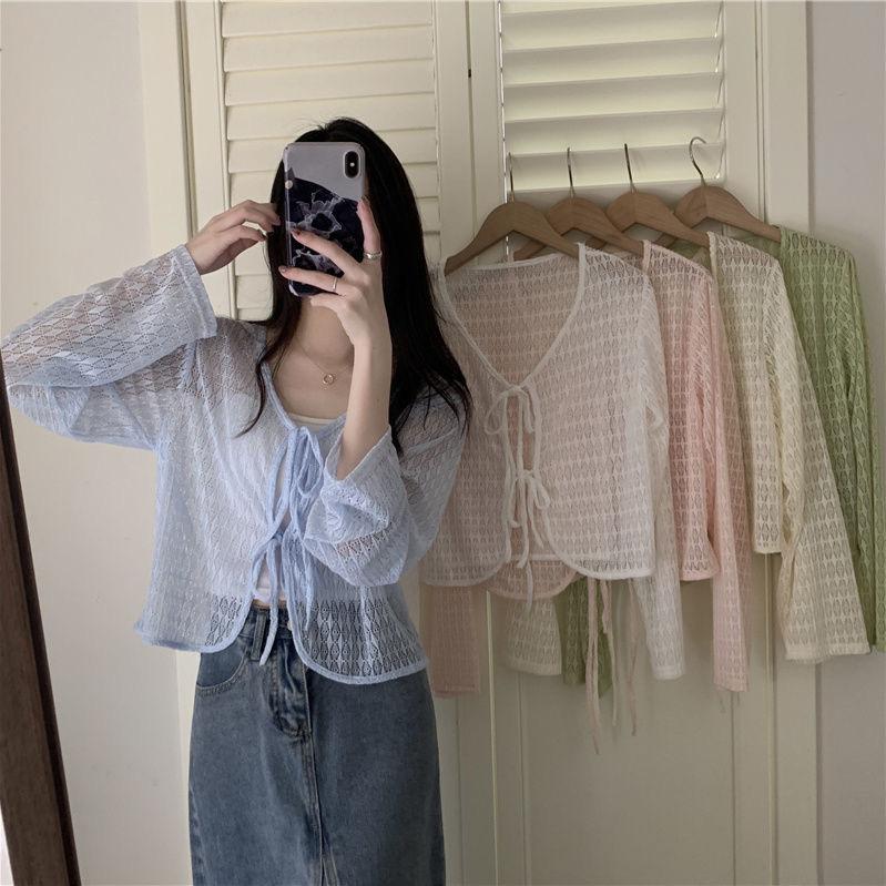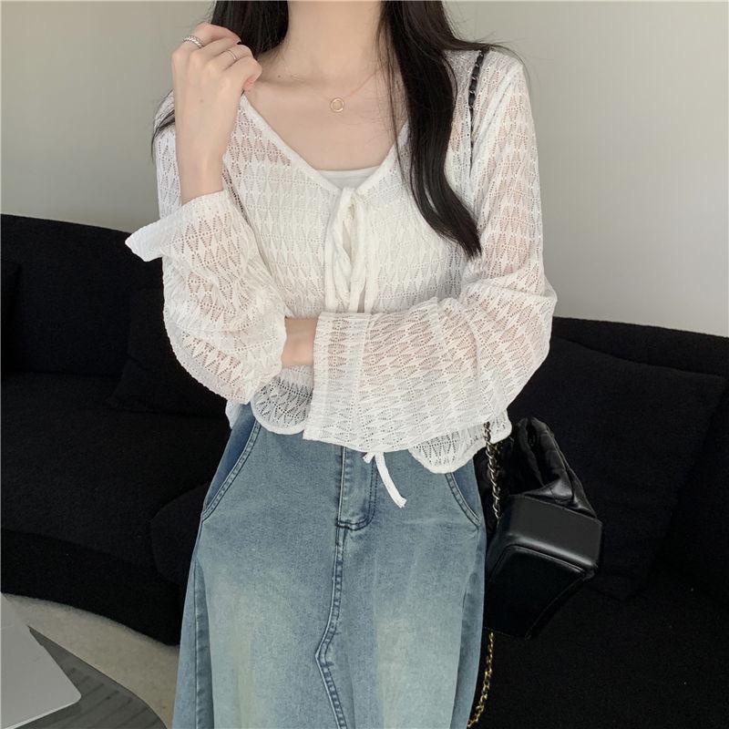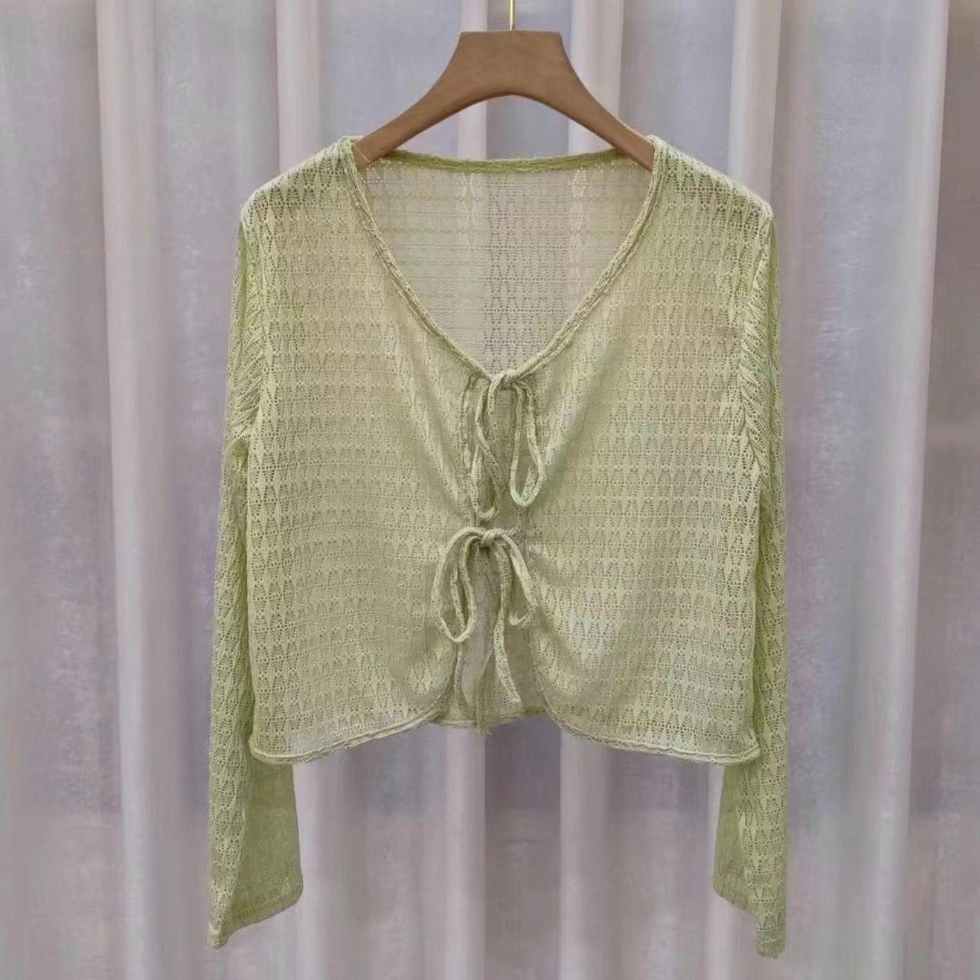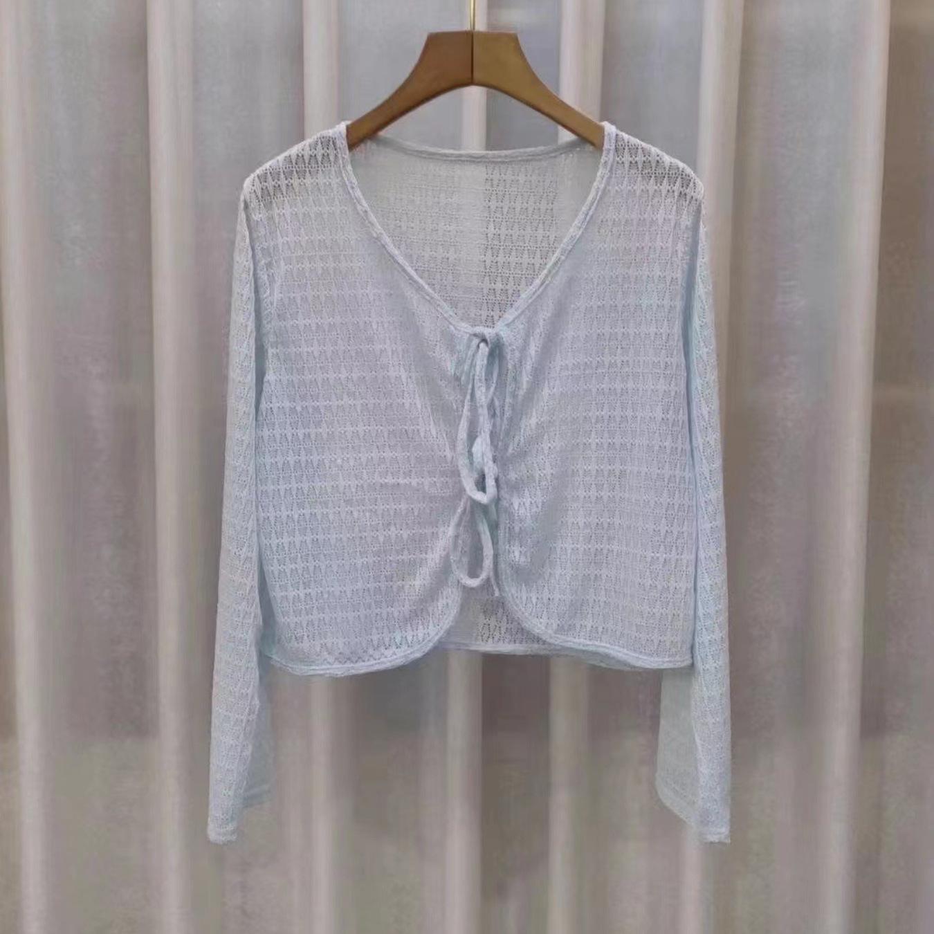 Chaqueta Delgada de Verano para Protección Solar 2026 Nuevo Diseño para Mujer Camisa Nicho Top Corto Suelto con Cordones de Manga Larga
