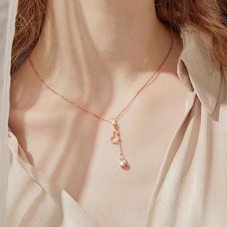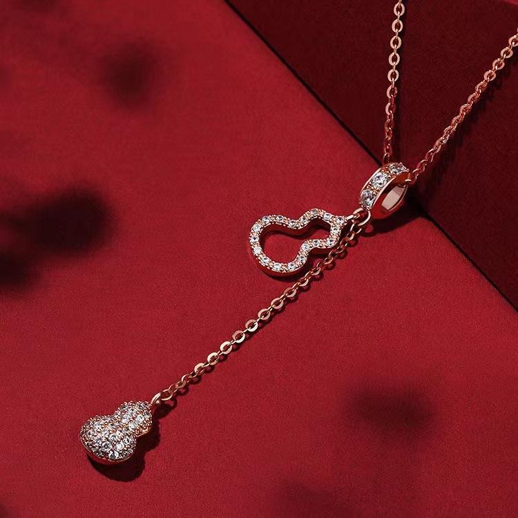 Collar de Calabaza con Borla para Mujer, de Alta Gama, Versátil, Estilo Caliente de Celebridad de Internet, Estilo Lujo Ligero, Joyería de Moda con Diamantes Completos al Mayoreo