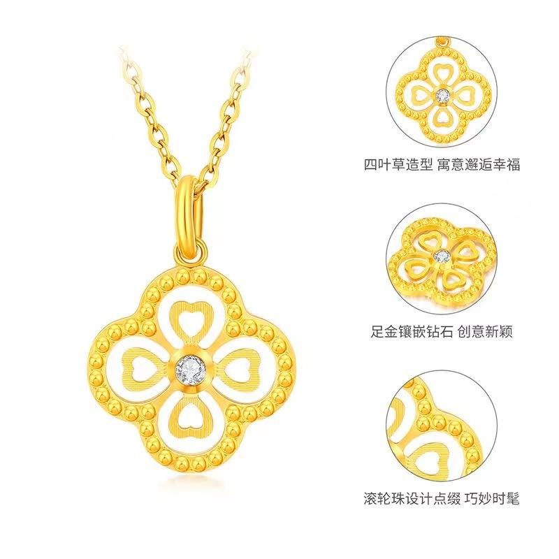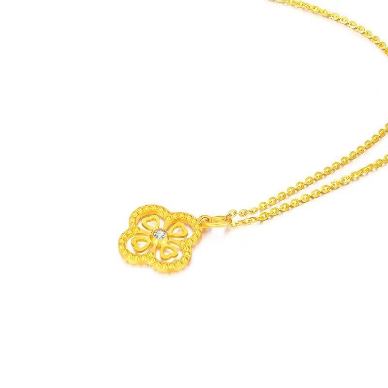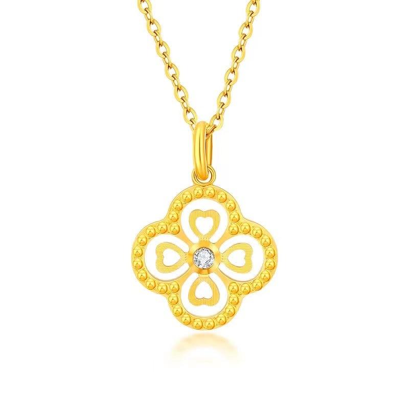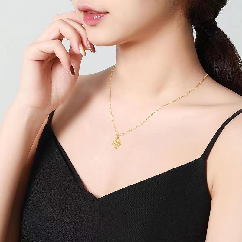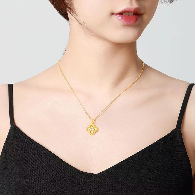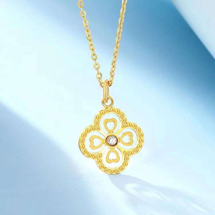 2023 Nuevo colgante de trébol de cuatro hojas hueco, collar de diseño de alto sentido, collar de moda simple de nicho para mujer, al por mayor