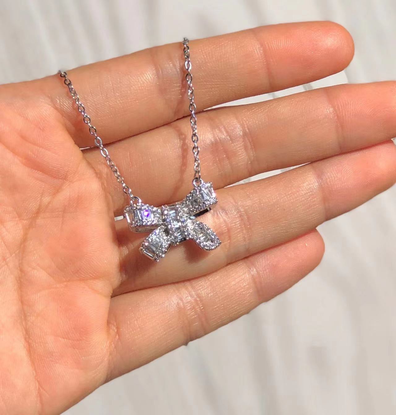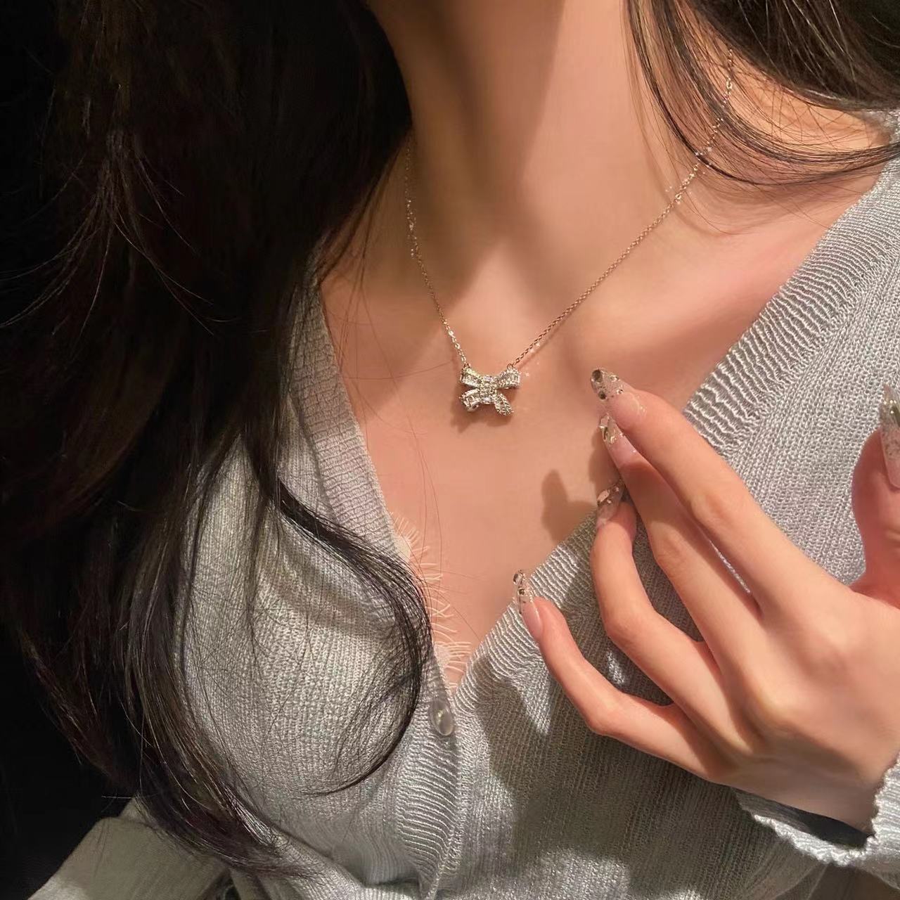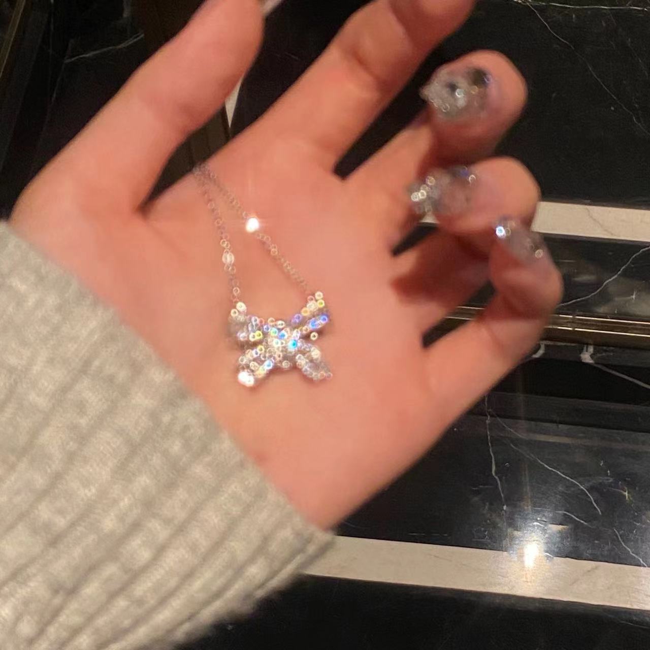 Collar de diamantes con destellos de arco, diseño de nicho brillante, de alta gama, dulce, fresco, plateado, combinable, ligero, de lujo, cadena de clavícula al por mayor