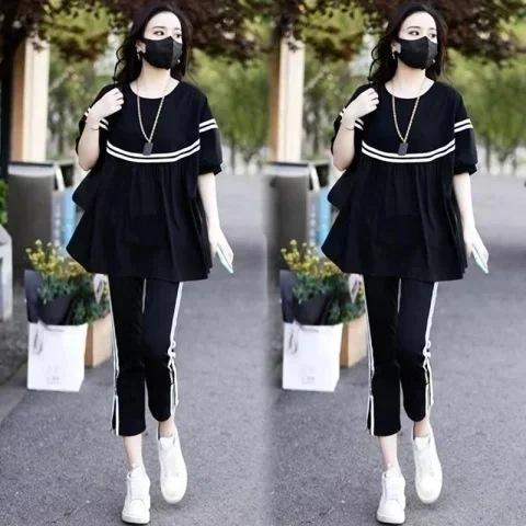 Traje deportivo para mujer, verano 2024, nuevo, talla grande, holgado, para estudiantes, pantalones cortos de manga corta, conjunto de dos piezas, traje de moda para mujer