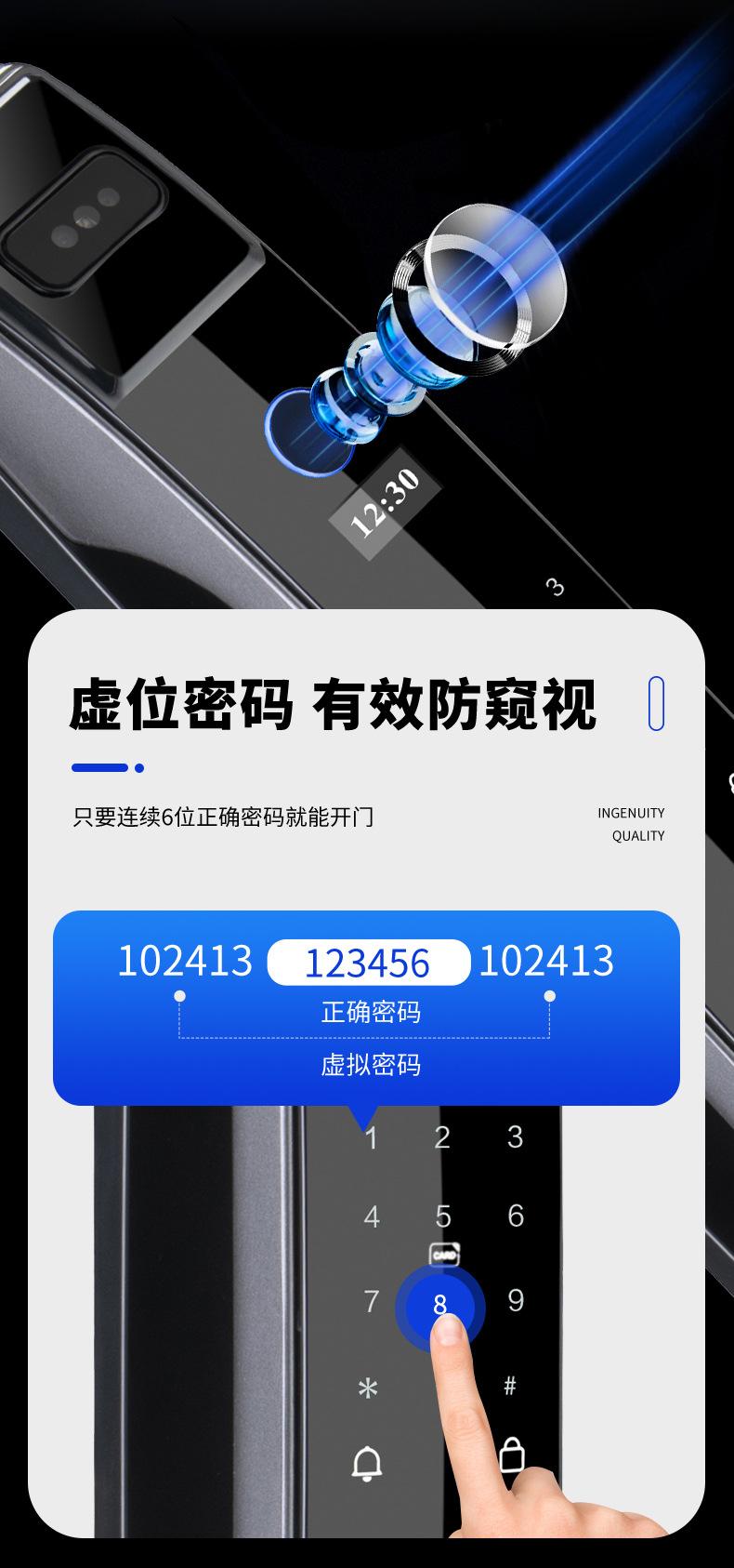 Fingerprint, Password, With key, visible cat's eye, face recognition, Remote Unlock, Other