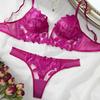 Íntimos de Encaje Bordado Sexy de Corte V Profundo Europeo y Americano Personalizado para Mujeres, Ultrafino para Busto Grande, Set de Brasier Push-Up Pequeño