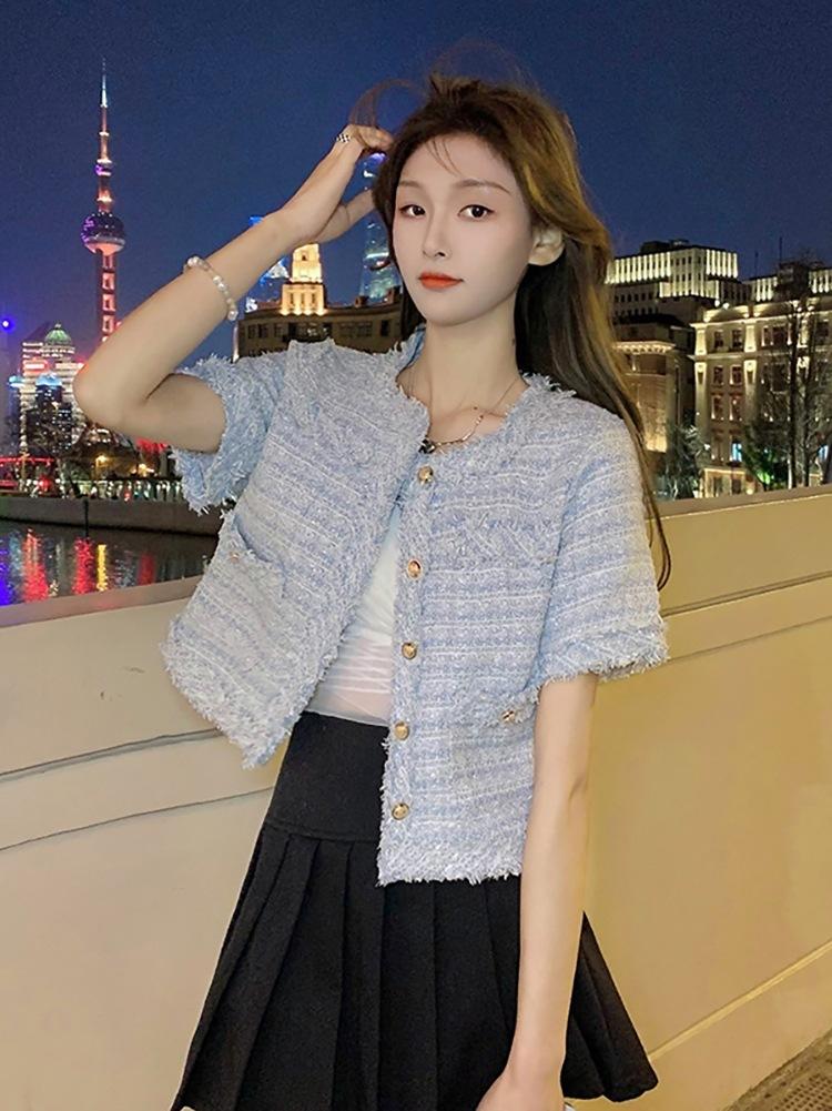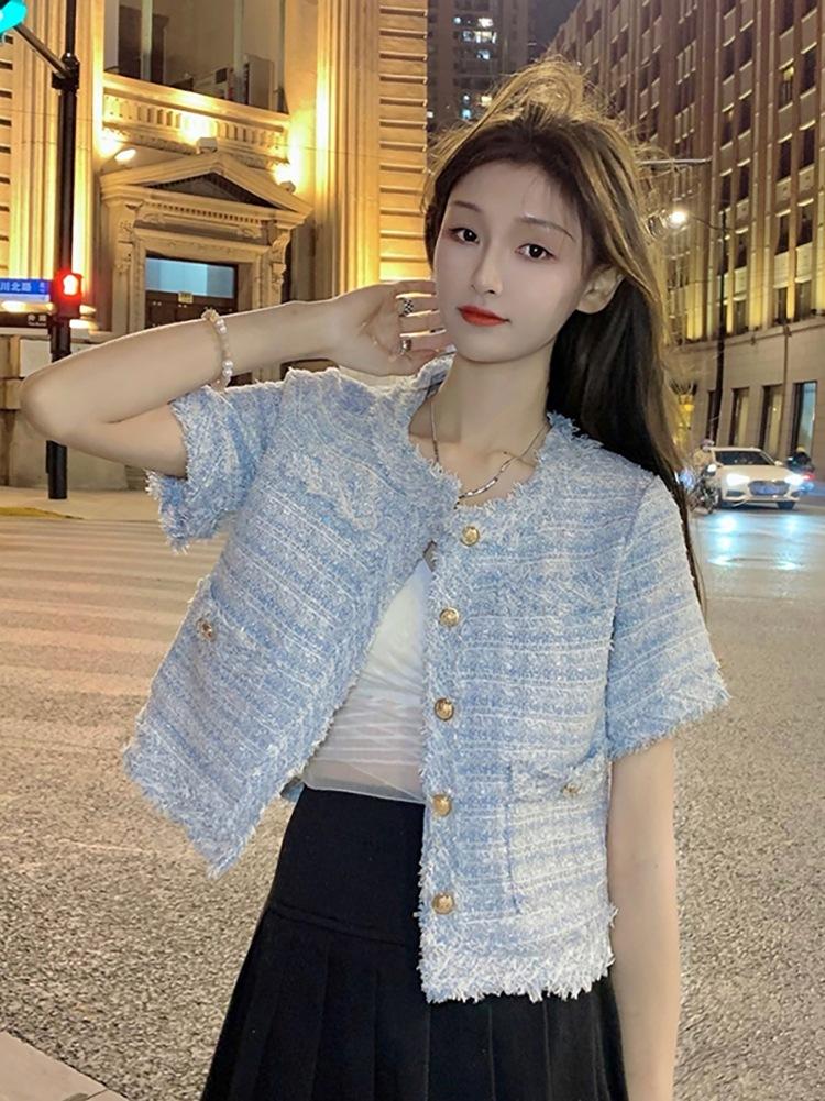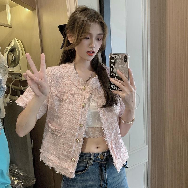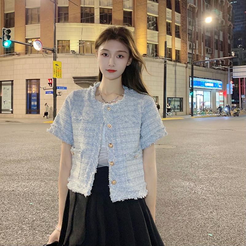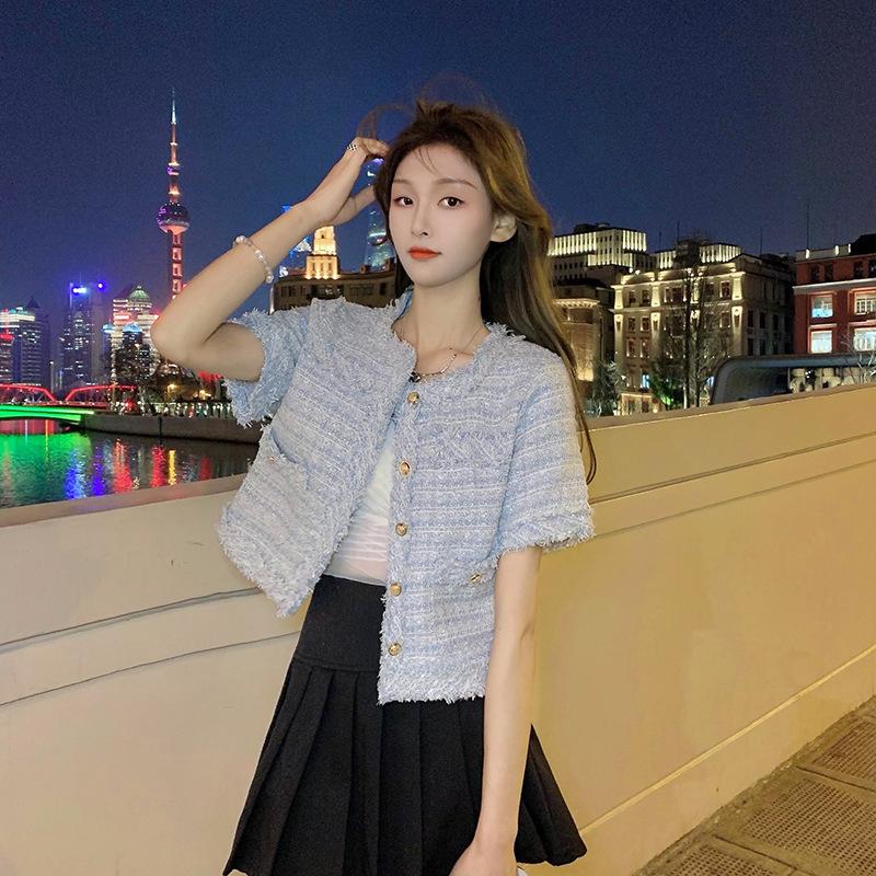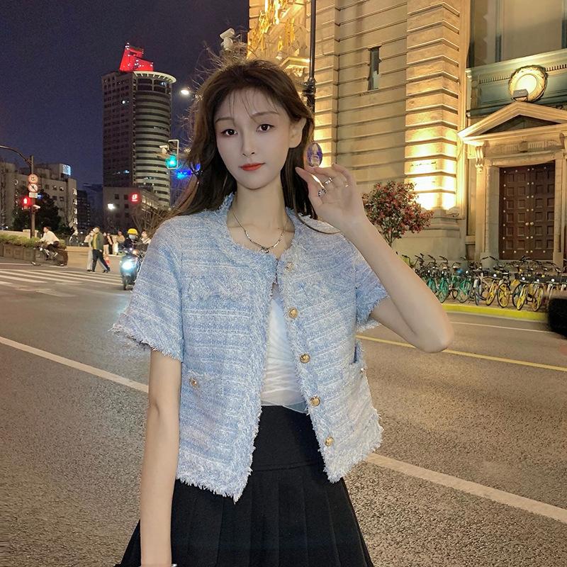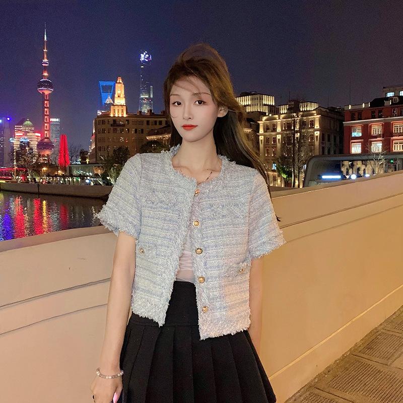 Abrigo corto de estilo coreano de verano, moderno y combinable con todo, estilo occidental, elegante, estilo Chanel, top de manga corta con temperamento para mujer